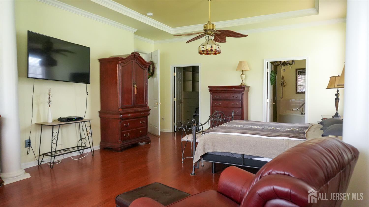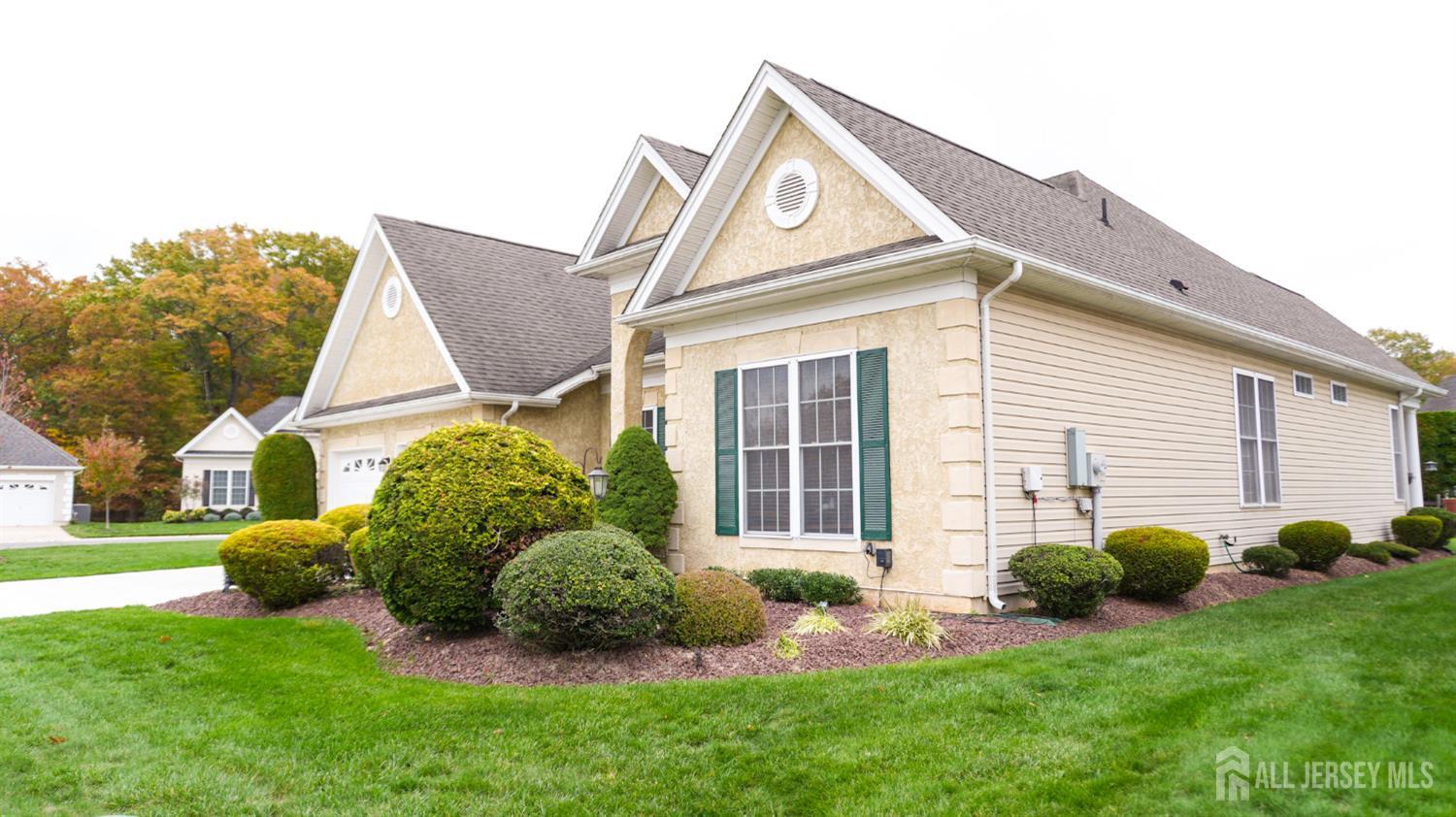 Welcome to 1 Belmont Court, a beautifully maintained Bayhill Model home in the prestigious Riviera at Freehold, a premier 55+ community built by Toll Brothers. This family residence offers approximately 2,288 square feet of living space on an 8,499 square foot lot and blends timeless elegance with modern updates. Freshly repainted with hardwood floors throughout, the home features soaring 10-foot ceilings, elegant chandeliers, and a bright, open layout perfect for entertaining or relaxing. The modern kitchen has been upgraded with new granite countertops, a new dishwasher, and a new microwave oven, while a cozy breakfast nook overlooks the landscaped backyard. Offering 2 bedrooms and 2 full bathrooms, including a serene primary suite with spacious a large dressing closet and spa-like bath, the home also includes a versatile additional room ideal for an office, exercise space, or guest accommodations. Recent updates include a newly paved driveway, a furnace and air conditioning unit replaced just two years ago, and a whole-house generator for peace of mind. Outside, enjoy a private patio and landscaped yard, with an attached garage and low-maintenance exterior giving you more time to enjoy the community's resort-style amenities such as a clubhouse, fitness center, indoor and outdoor pools, tennis courts, serene & picturesque trails, and a vibrant calendar of social events. Conveniently located near shopping, dining, and major highways, This home and community offers both tranquility and social opportunities, offering both serene privacy and a rich social environment within Riviera at Freehold, making 1 Belmont Court the perfect blend of space, style, and community.