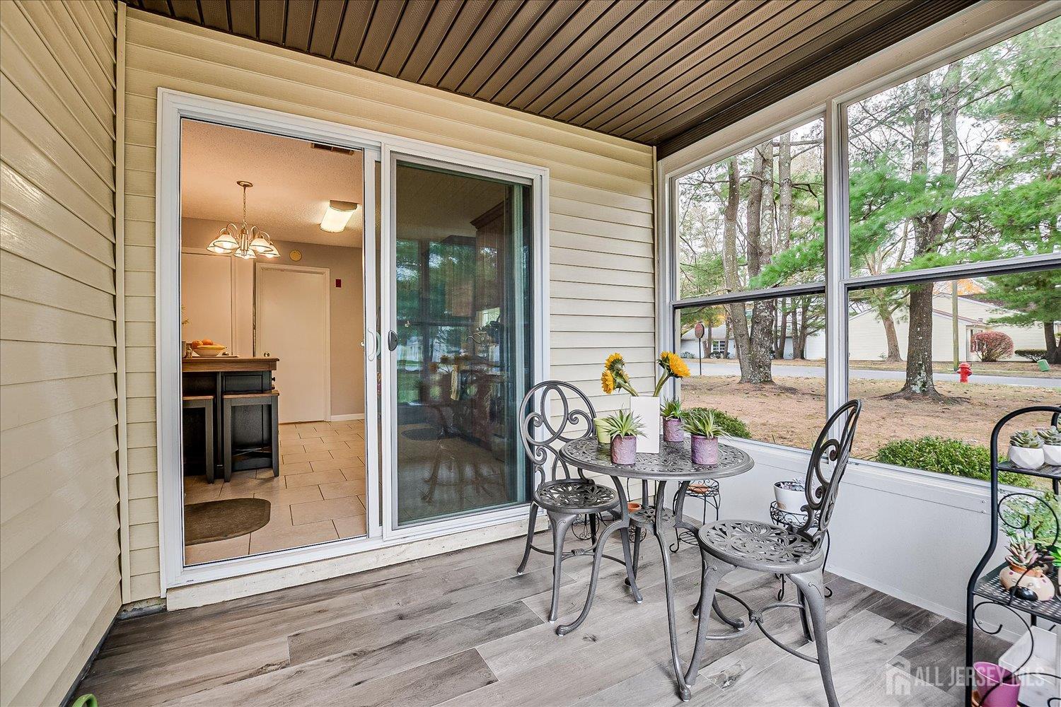 Welcome to the highly sought-after Surrey Downs Community, presenting a beautiful and move-in-ready 2-bedroom, 1-bathroom ranch that epitomizes effortless one level living. The home boasts fantastic curb appeal and includes a convenient attached garage. Inside, the sun-drenched living room impresses with stunning hardwood floors, a vaulted ceiling, and an arched window, creating an open and airy atmosphere for relaxation and entertaining. The updated Eat-in-kitchen features warm wood cabinetry and stainless steel appliances. Retreat to the peaceful primary bedroom or utilize the bright second bedroom as a comfortable guest suite or home office. The full bathroom is clean and stylish with a glass-enclosed shower. Step out to the wonderful enclosed sunroom/patio, featuring modern plank flooring, which serves as a perfect three-season extension of your living space. Best of all, this home provides immediate access to Surrey Downs' exceptional resort-style amenities, including a sparkling outdoor swimming pool, well-maintained tennis courts, and a vibrant community clubhouse, promising a truly fulfilling lifestyle. Don't miss this opportunity!