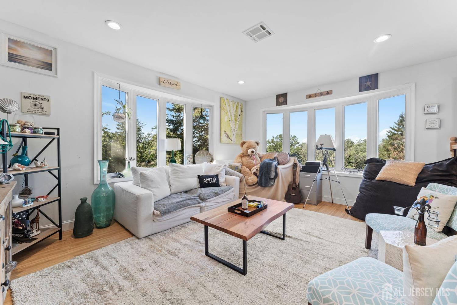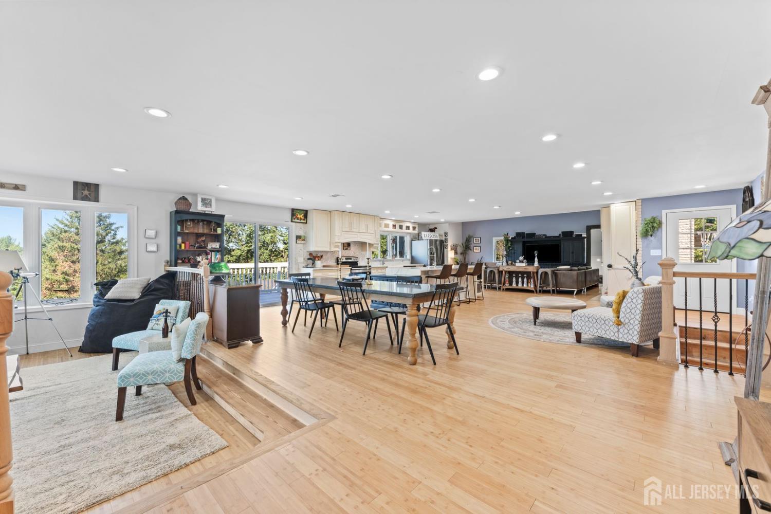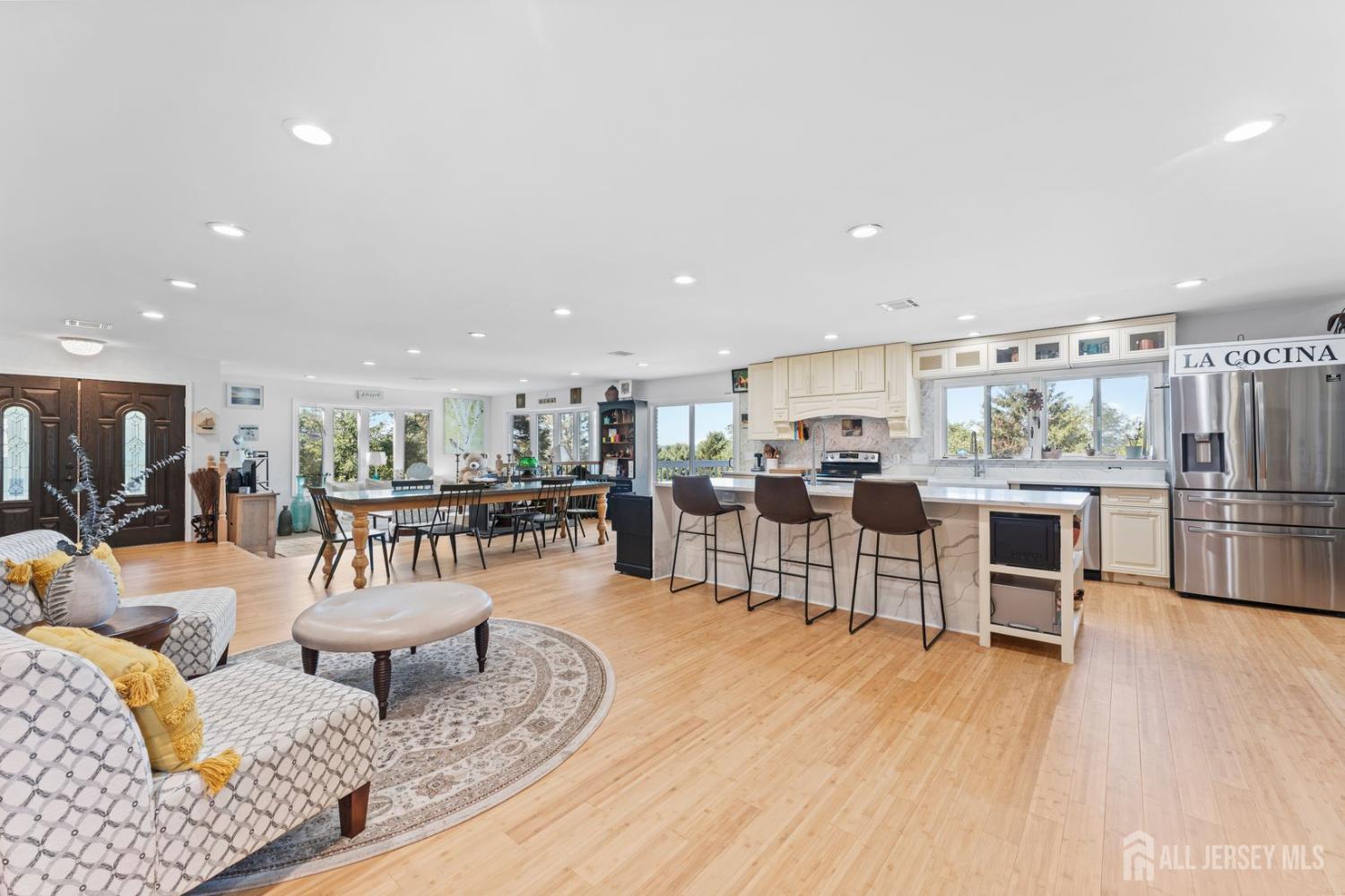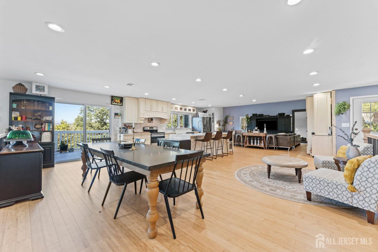 Rarely does a home of this caliber come to market. Tucked away on a private road atop one of the highest points in Clinton Township, 1 Rossi Drive offers an unmatched blend of private country living, modern luxury, and breathtaking year-round views. This recently renovated custom raised ranch spans nearly 4,000 sq. ft. of refined living space on 1.5 lush acres, featuring 4 bedrooms, 3.5 bathrooms, and an open floor plan highlighted by bamboo wood floors and abundant natural light.The main level is designed for both comfort and entertaining, boasting a gourmet kitchen with custom cabinetry, an oversized waterfall quartz island, and seamless flow into a sunken living room and great room. Expansive windows and sliders invite sweeping views, while the deck provides the perfect perch for sunsets. The primary suite offers a spa-like ensuite and walkin closet, joined by three additional bedrooms and a convenient laundry room.The walkout lower level is ideal for entertaining or a possible inlaw suite, with a spacious recreational room, kitchenette/wet bar, fitness area, full bath, storage, and private entrance. Outdoors, a resort-style oasis awaits with an in-ground gunite pool, firepit, and abundant entertaining space. An oversized two-car garage completes the home.Perfectly located minutes from top schools, dining, and shops and under an hour to NYC this rare offering combines luxury, privacy, and convenience in one of Clinton Township's most sought-after settings.