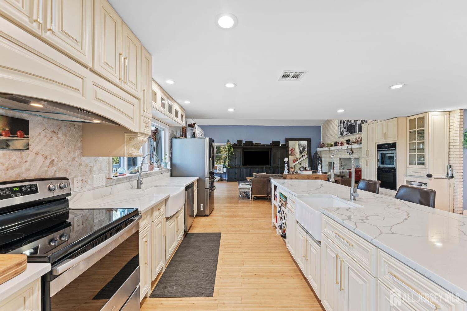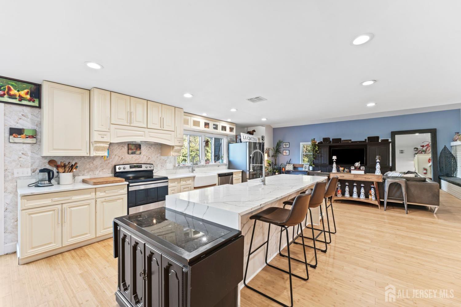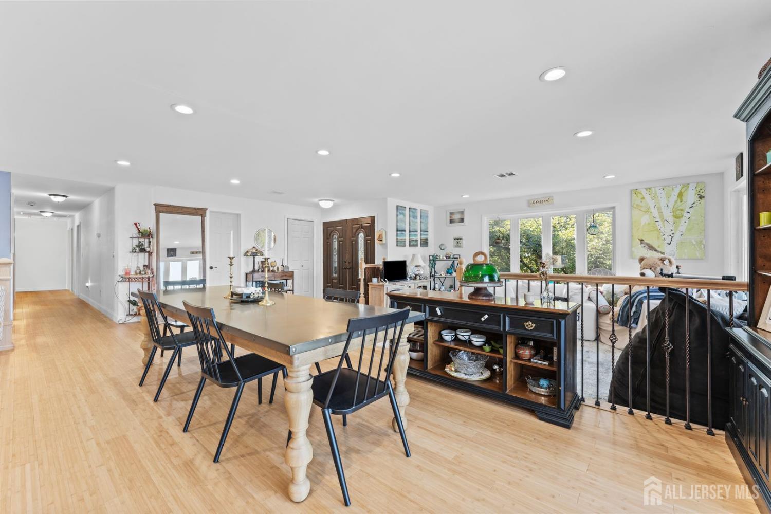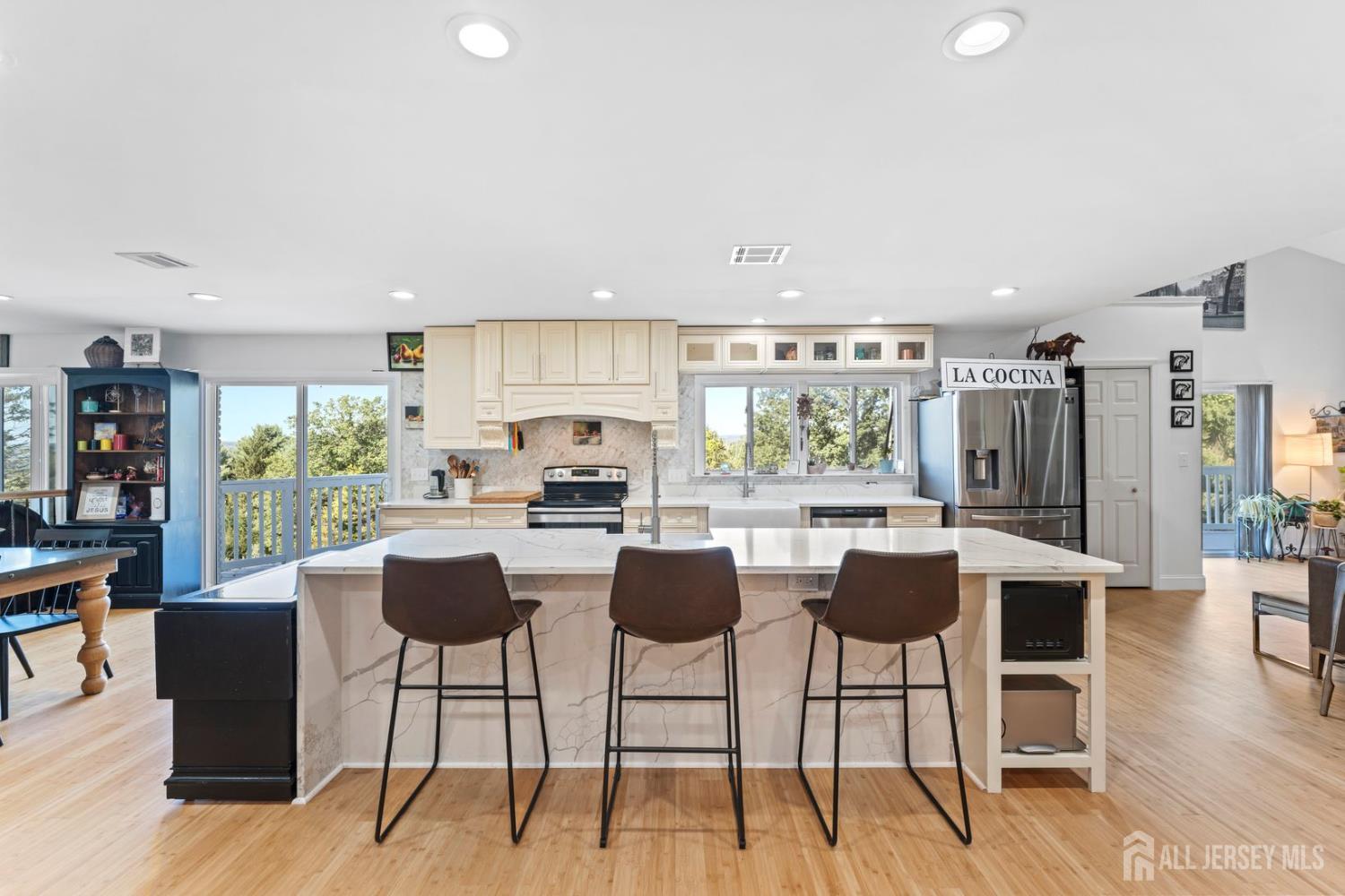 Rarely does a home of this caliber come to market. Tucked away on a private road atop one of the highest points in Clinton Township, 1 Rossi Drive offers an unmatched blend of private country living, modern luxury, and breathtaking year-round views. This recently renovated custom raised ranch spans nearly 4,000 sq. ft. of refined living space on 1.5 lush acres, featuring 4 bedrooms, 3.5 bathrooms, and an open floor plan highlighted by bamboo wood floors and abundant natural light.The main level is designed for both comfort and entertaining, boasting a gourmet kitchen with custom cabinetry, an oversized waterfall quartz island, and seamless flow into a sunken living room and great room. Expansive windows and sliders invite sweeping views, while the deck provides the perfect perch for sunsets. The primary suite offers a spa-like ensuite and walkin closet, joined by three additional bedrooms and a convenient laundry room.The walkout lower level is ideal for entertaining or a possible inlaw suite, with a spacious recreational room, kitchenette/wet bar, fitness area, full bath, storage, and private entrance. Outdoors, a resort-style oasis awaits with an in-ground gunite pool, firepit, and abundant entertaining space. An oversized two-car garage completes the home.Perfectly located minutes from top schools, dining, and shops and under an hour to NYC this rare offering combines luxury, privacy, and convenience in one of Clinton Township's most sought-after settings.