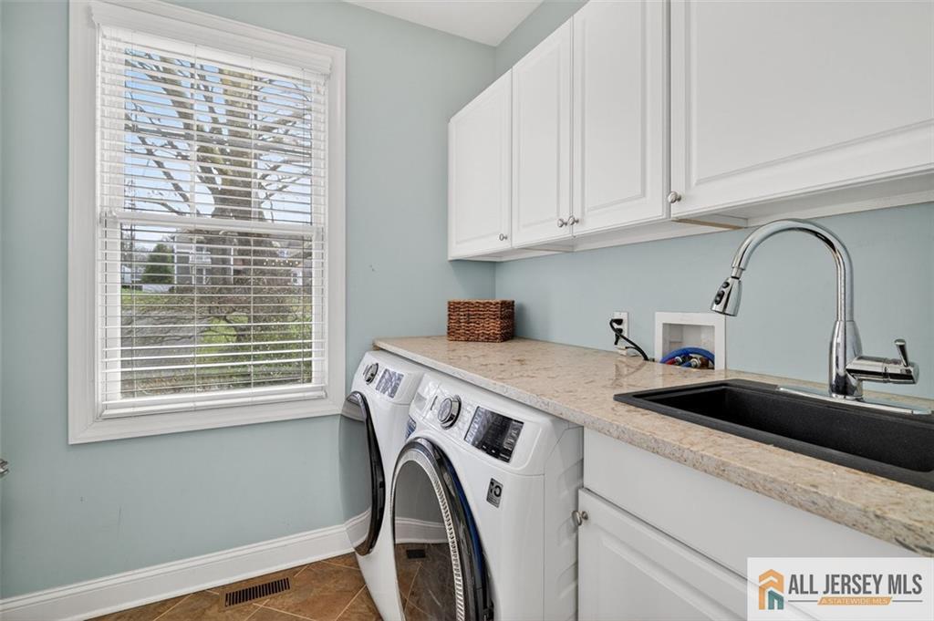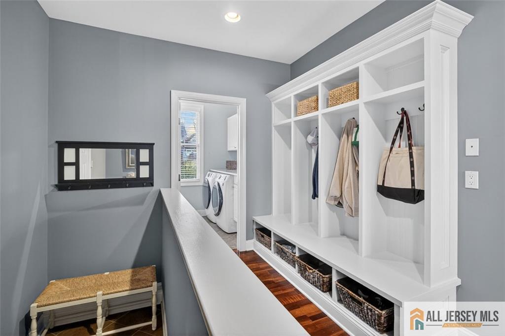 Set along the shores of Brainard Lake in the heart of downtown Cranbury, this spectacular home offers a rare combination of serene waterfront living and refined, modern design. Built from the foundation up in 2014, the home feels both timeless and fresh, with a luxurious, updated aesthetic throughout. Beautiful hardwood flooring creates a seamless flow across the main living spaces, while vaulted ceilings in the foyer and family room enhance the sense of light, volume, and architectural drama. The welcoming foyer opens to a cozy living room, ideal for entertaining, quiet reading, or a music room. On the opposite side, a spacious formal dining room opens to a charming patio and flows effortlessly through a butler's pantrycomplete with a wine cooler and abundant cabinetryinto the kitchen, where peaceful lake views take center stage. The kitchen is both stylish and functional, featuring granite countertops, stainless steel appliances, a smart refrigerator, a venting hood, and a separate eating area perfect for casual meals or morning coffee. The kitchen opens to a large family room with a fireplace, offering yet another stunning view of the lake and creating an inviting space for everyday living and gatherings. Just off the family room is a fifth bedroom and adjacent den, providing exceptional flexibility for a home office, playroom, guest suite, or relaxed hangout space. A thoughtfully designed laundry room with storage cubbies and a second pantry is conveniently located off the kitchen, while a powder room completes the first floor. The second level features a fabulous primary suite, highlighted by a sitting area, a generously sized bedroom, and a spa-like ensuite bath with dual vanities, a walk-in shower, soaking tub, and walk-in closet. A private balcony off the primary bedroom invites you to enjoy lake views with your morning coffee or unwind in the evening with a glass of wine. Also on this level is a .princess suite with two closets, along with two additional bedrooms that share a Jack-and-Jill bath, each offering walk-in closets. The finished basement provides abundant space for recreation, hobbies, or additional living areas, along with excellent storage. An addition behind the two-car garage offers even more storage and direct access to the backyardideal for storing canoes, kayaks, and lawn equipment to fully enjoy lakeside living. Students attend the highly regarded Cranbury School (K-8) and then Princeton High School, and the home's downtown location allows for easy access to shops, dining, and community events. With its exceptional setting, thoughtful layout, and elegant finishes, this home presents a rare opportunity to enjoy luxury lakefront living in one of New Jersey's most charming towns.