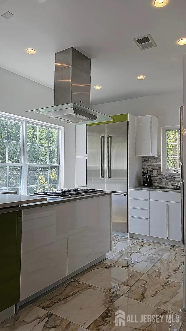 Kitchen Features: Granite/Corian Countertops, Kitchen Exhaust Fan, Kitchen Island