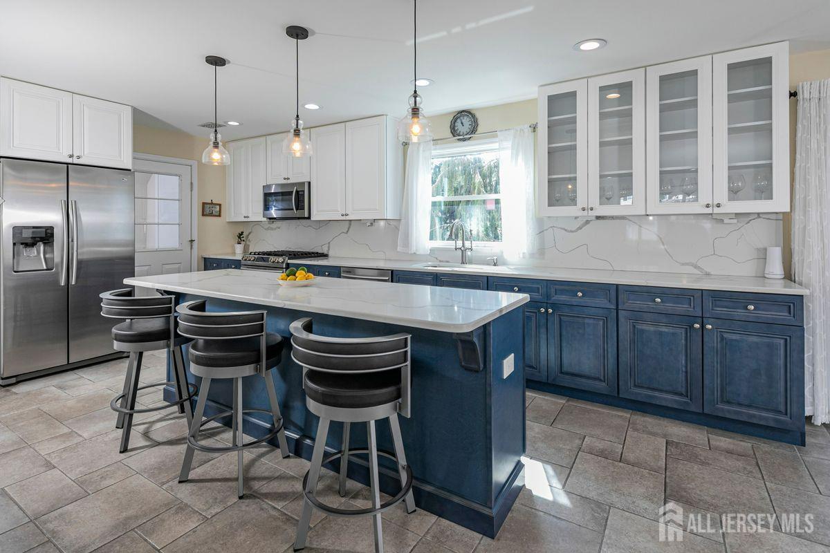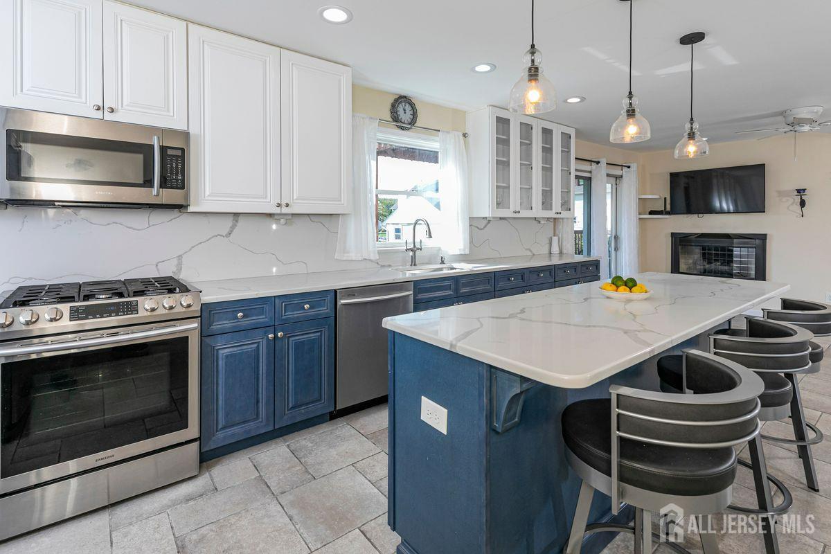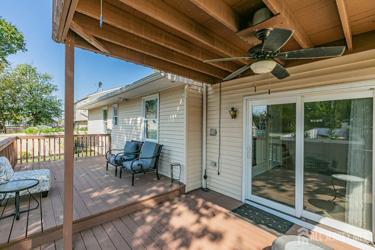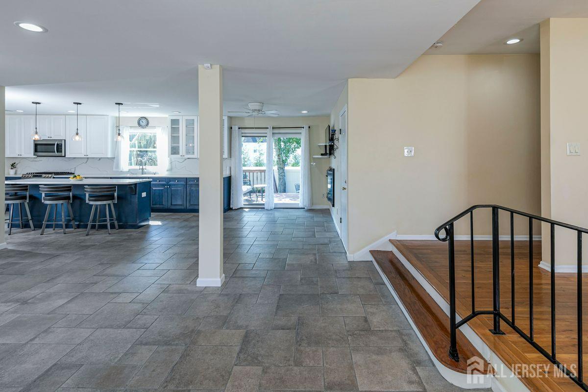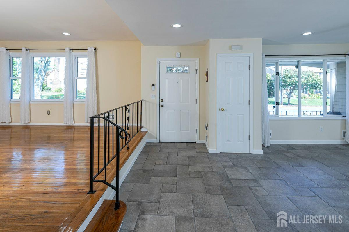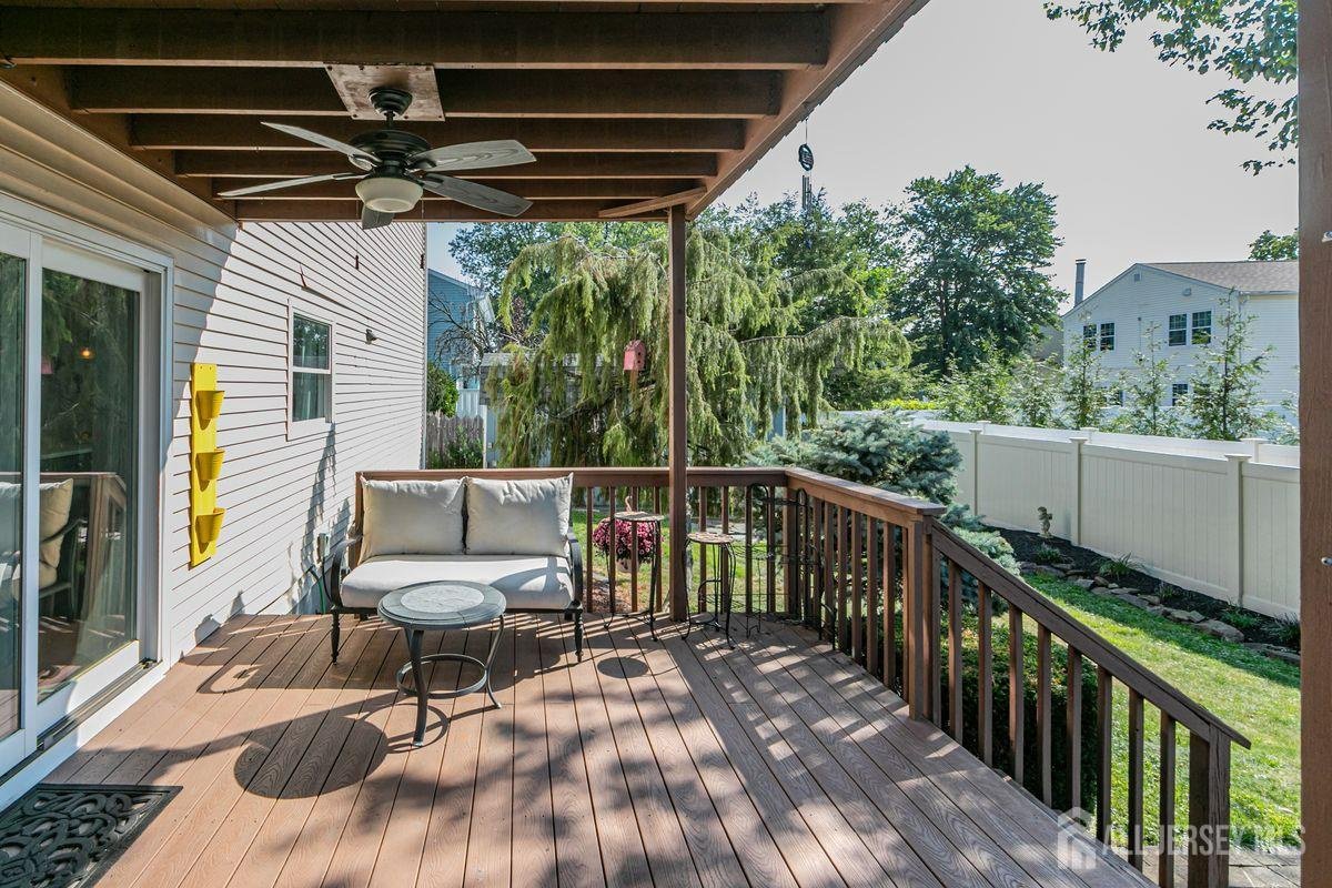 On a tastefully landscaped lot, this north-facing, sun-filled home offers two distinct living areas for flexible living arrangements and/or extended stays. The main level welcomes with three spacious bedrooms, a fully renovated kitchen, and a dining nook warmed by a fireplace. The primary suite features a private bath, while a second full bath serves the remaining bedrooms. A finished lower level adds even more room to relax. Upstairs, a separate two-bedroom layout includes a bright living room, updated kitchen, dining area with a fireplace, an accessible bathroom, and an elevated deck overlooking the sunny backyard. Both levels share access to a mudroom entry from the two-car garage and a convenient laundry area. Enjoy outdoor living with a generous yard, patio, and storage shed all bathed in afternoon sunlight thanks to the home's ideal orientation. Located just minutes from I-287 and four miles to Edison Station with NJ Transit and Amtrak service, this property offers convenience and versatility in one inviting package.