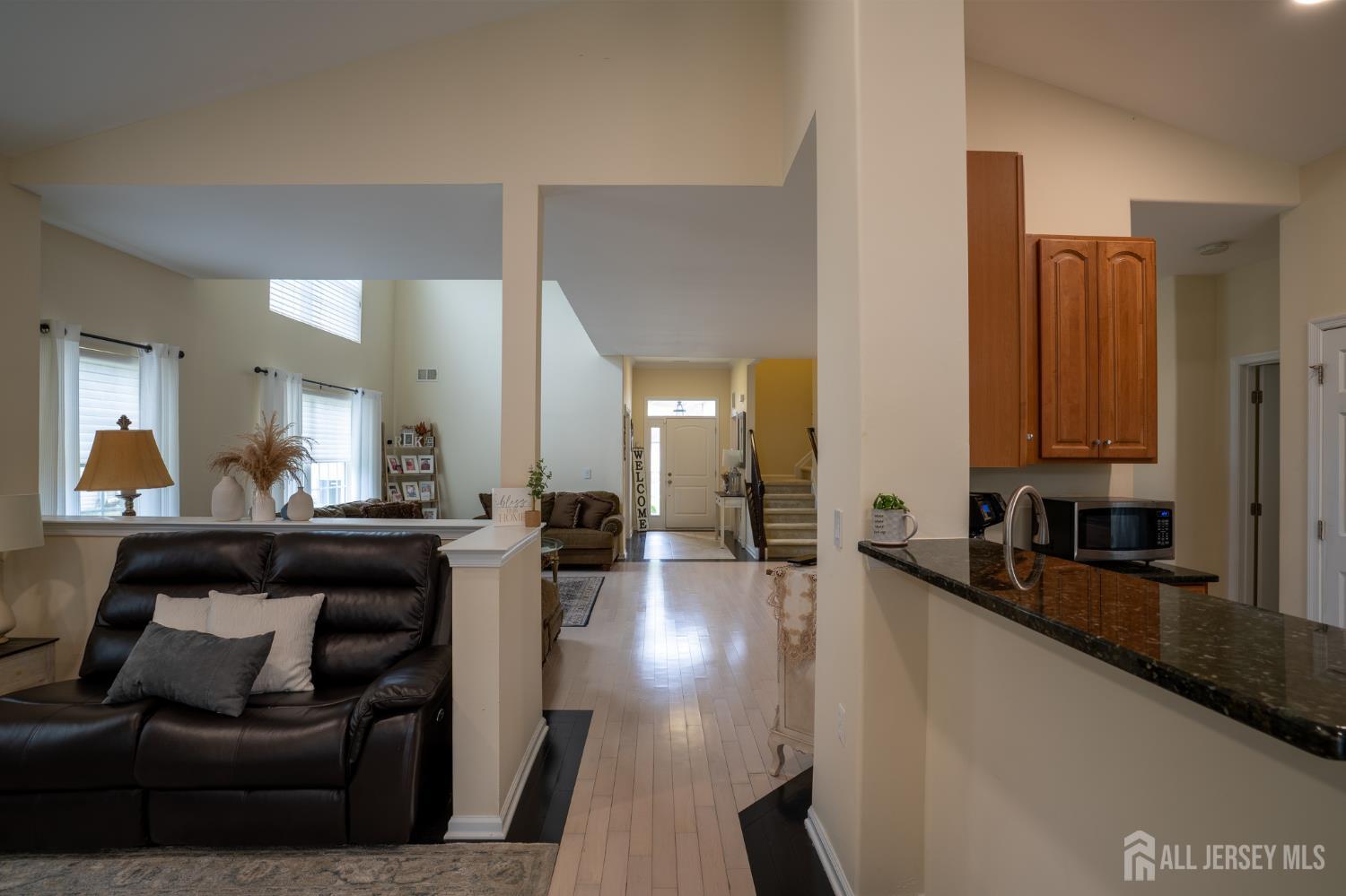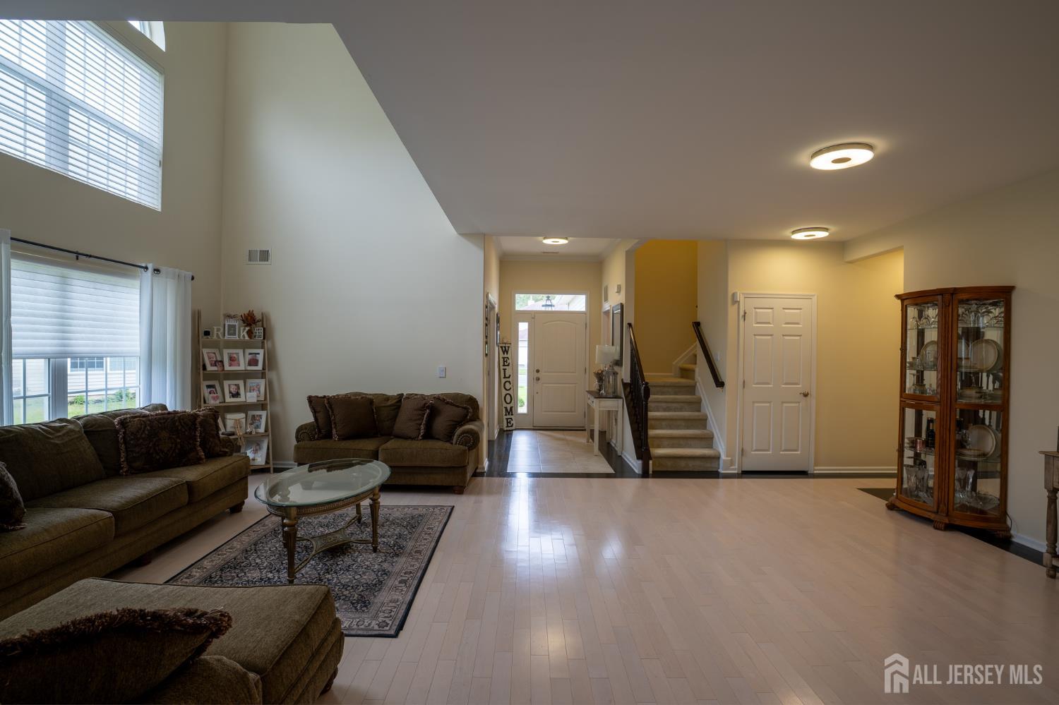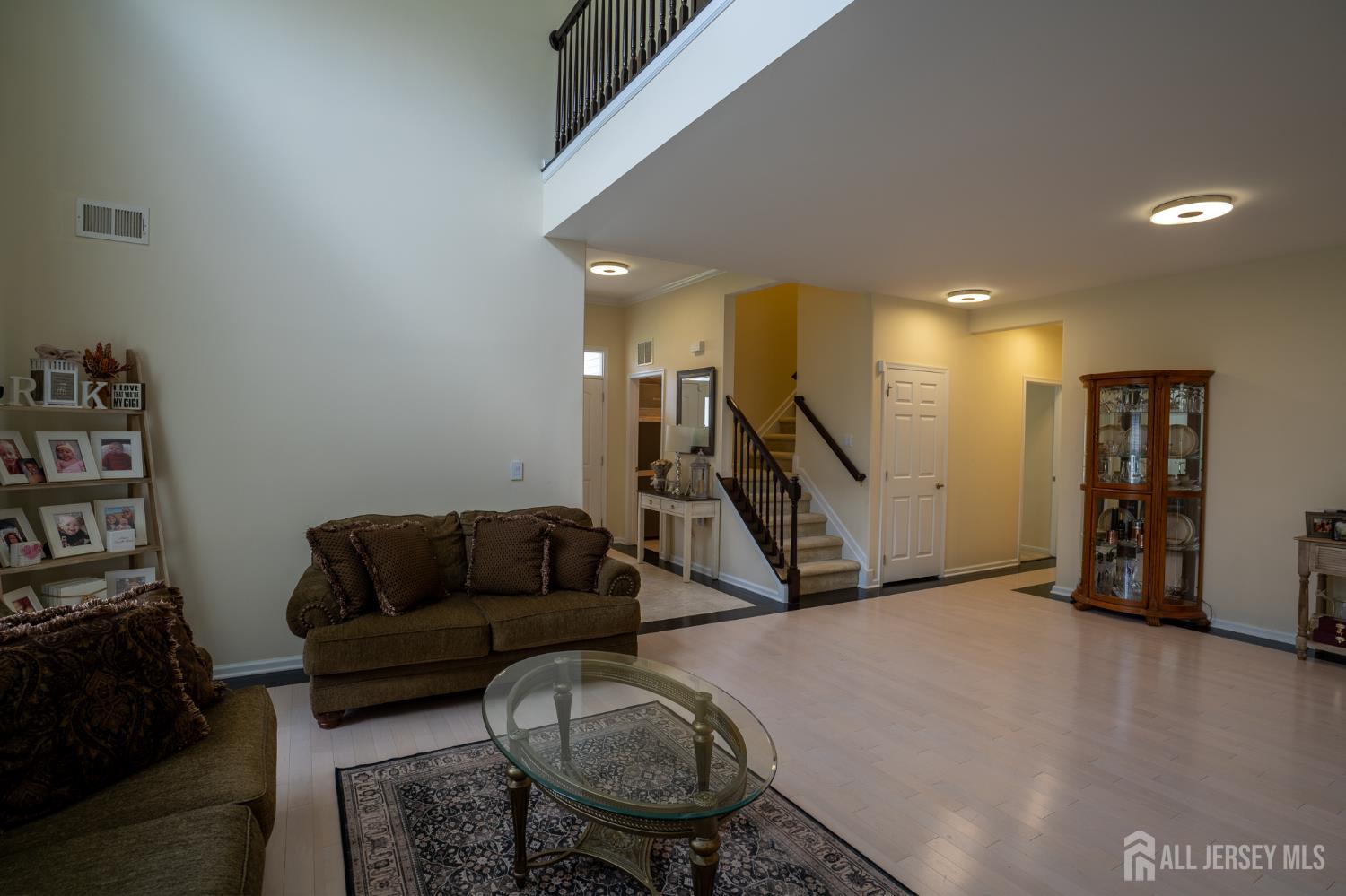 Moving into Renaissance at Monroe, a warm, friendly community is the best way to begin a new chapter in your life. This home is a 3-bedroom, 3 full bathroom Wellington model on one of the loveliest streets in the community. This home offers a loft, 2 car att. garage, 2 zoned heating and air conditioning and ample closet space. The entry foyer with crown moldings brings you to the double door entry into the home office/den. As you continue into this home one can visualize choosing which area will be a living room and dining room. The kitchen and family room share a cathedral ceiling with recessed lighting. The gourmet kitchen offers a double oven, gas cook top, upgraded cabinets, granite counters, a pantry and a large stainless-steel sink. Step through the sliding patio doors to the lovely, newly installed paver patio backing to trees. The main level houses a master bedroom suite with a ceiling fan light fixture, a wic and its own bathroom. The master bath has a window over a soaking tub surrounded by upgraded ceramic tile, double vanity/sinks, a linen closet and stall shower. Bedroom 2 is spacious, bathroom 2 has one vanity/sink and a standard tub. The staircase has 2 landings taking you to the second level where there is a spacious 3rd bedroom, a full bathroom with a standard tub and one vanity/sink. The loft overlooks part of the main level. Flooring consists of hardwood, carpeting and ceramic tile. All curtains and shades are included. Main level HVAC replaced 2024. The upper unit HVAC replace 2021, stall shower doors and vanity replaced 2024 and double oven replaced 2022. This community offers so many wonderful activities, entertainment, clubs and great friendships. The clubhouse is available to all residents and includes a luncheonette, ballroom, fitness center, indoor/outdoor pools, game and meeting rooms a library and so much more. Welcome home to Renaissance at Monroe!