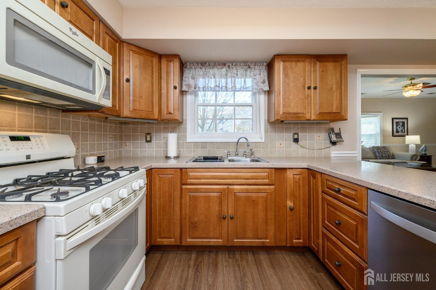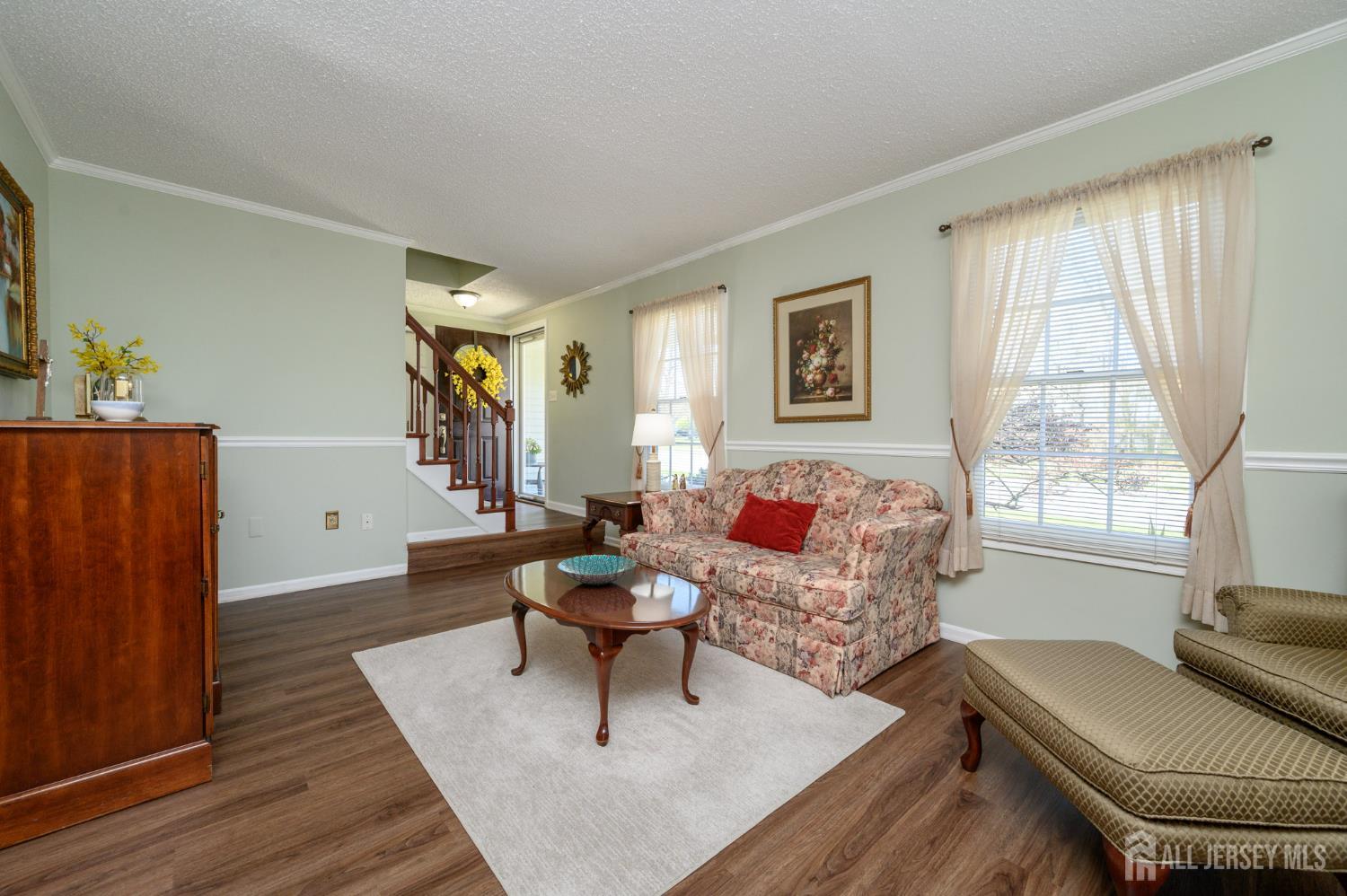 Home Sweet Home! Lovely 3 Bed 2.5 Bath Colonial with Master Suite and 1 Car Garage in highly desirable Howell is sure to impress! Beautifully maintained inside and out with curb appeal and plenty of upgrades all through, move-in-ready and waiting for you. A freshly painted exterior (Oct 2024), welcomes you in to find a spacious and sophisticated interior with generous room sizes, luxury vinyl plank floors that shine, elegant decorative molding, premium Andersen tilt-wash windows, and plenty of natural light all through. Sizable living room and separate formal dining room make for seamless entertaining. Eat-in-kitchen offers a large pantry, ample cabinet storage, and dinette space. Large, light and bright 22x13 family room with ceiling fan is perfect for relaxing after a long day. Large, dedicated laundry/mudroom, versatile home office with ceiling fan, and multi-use storage room adds to the package. A charming 1/2 bath rounds out the main level of this gem. Upstairs, find the main full bath along with all 3 generous bedrooms with plush carpets, double closets, and ceiling fans for added comfort, inc the spacious Master Suite. MBR boasts its own ensuite bath with stall shower. Second floor pull-down attic stairs offers plenty of extra storage. Plush, park-like backyard with patio (set included!) and 10x8 shed makes summer barbecues a breeze, completely fenced-in for your privacy and comfort. 1 car garage with cabinet storage, automatic door opener and paved double wide driveway offers ample guest parking. Addtl features inc a newer outside meter box & circuit breaker box (June 2021), all baths updated in 2013, and a newer hot water heater, only 3 years old, along with a Verizon FIOS equipped neighborhood. Don't wait! Come and see TODAY!! *Showings begin Thursday, 4/16*