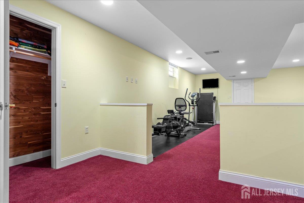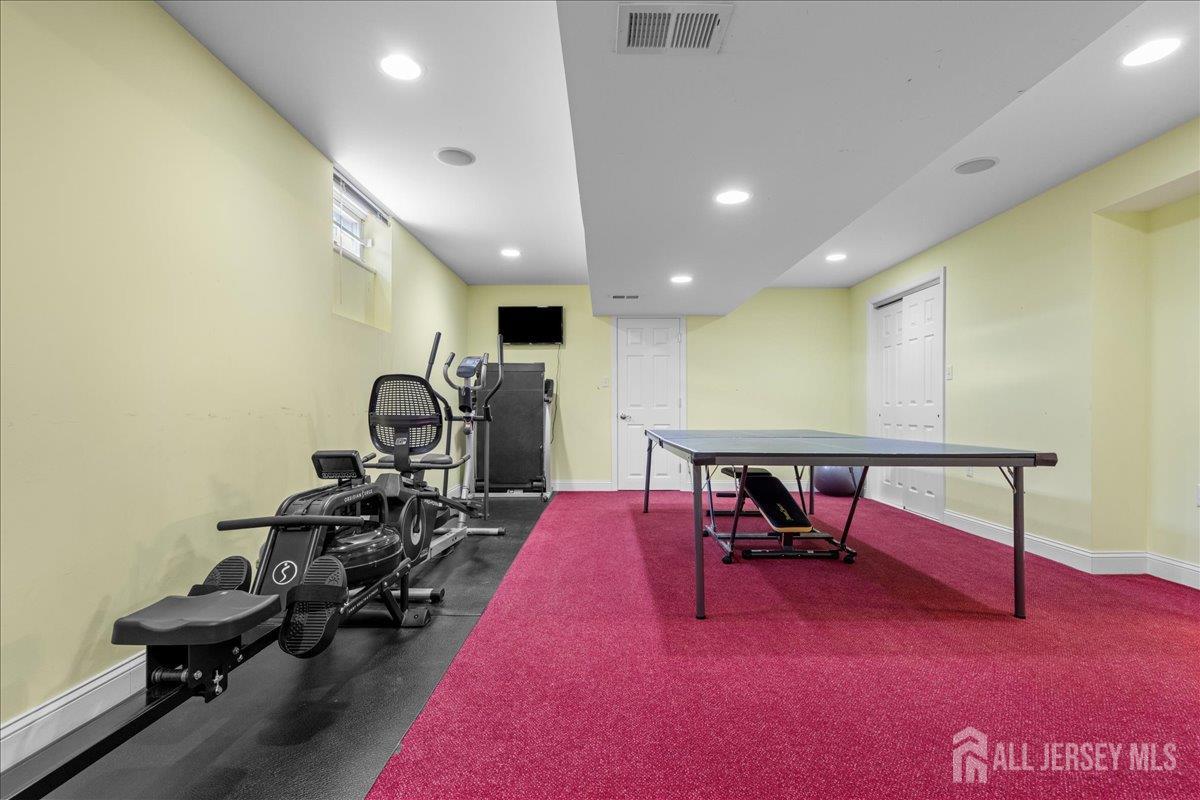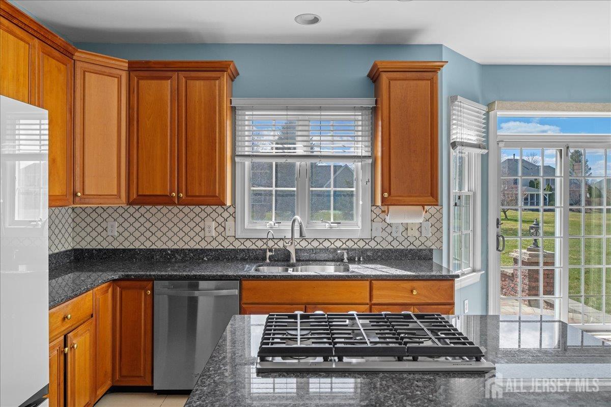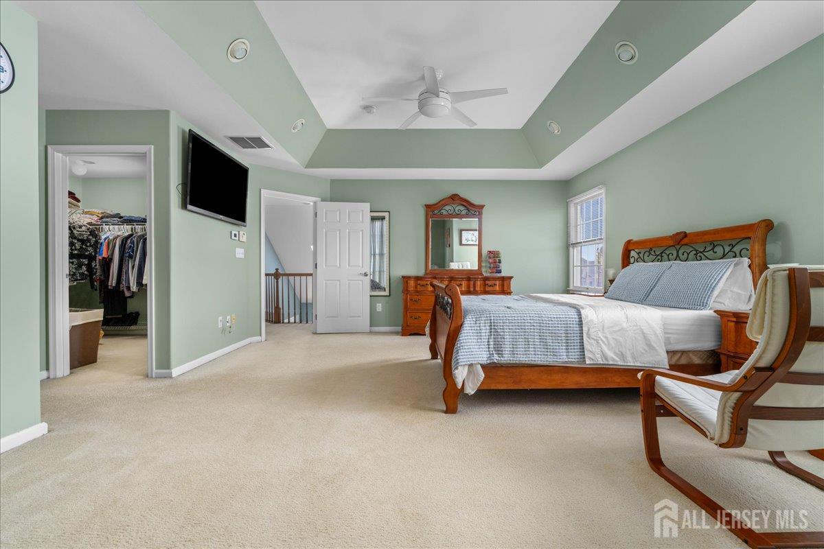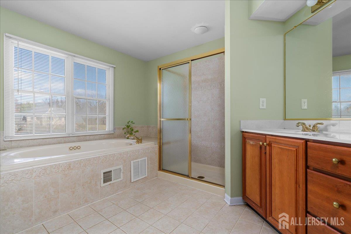Tucked away at the end of a quiet cul-de-sac in The Crossing at Grover's Mill, 11 Briardale Court is a stunning blend of elegance and modern comfort. This coveted northeast-facing residence sits on a generous one-acre lot in a neighborhood embraced by open land and farmland, yet just minutes from top-rated West Windsor-Plainsboro High School North and Community Middle School. A charming paver walkway leads to the gracious entrance, where a dramatic two-story foyer welcomes you with an air of sophistication, setting the tone for the exceptional craftsmanship found throughout. The formal living room flows seamlessly into the adjoining dining room, creating an ideal stage for stylish entertaining and memorable gatherings. The heart of the home is the open-concept kitchen and family room, designed for effortless everyday living. Blue granite countertops, a contemporary tile backsplash, stainless steel appliances, and recessed lighting define the kitchen, while a center island with a built-in cooktop and a built-in wine rack elevate both form and function. The sunlit breakfast area features sliding glass doors opening to a stunning red brick patio with ambient lighting perfect for al fresco dining. The adjacent family room, graced with rich Brazilian hardwood floors, captivates with soaring vaulted ceilings, skylights, and a cozy gas fireplace, while a convenient back staircase adds to the home's thoughtful design. A first-floor office, powder room, and mud/laundry and storage complete the main level. Upstairs, the primary suite is a true sanctuary. An upgraded tray ceiling crowns the spacious retreat, which features a private sitting area and a spa-inspired en suite bath with a Jacuzzi soaking tub, separate shower, dual vanity, and a privacy door for added seclusion. Three additional spacious bedrooms share a beautifully appointed hall bath with dual sinks. The finished basement is an entertainer's dream offering a large recreation room, a fully equipped home theater, a dedicated exercise area with an adjacent full bath and steam shower, a functional wet bar, and a cedar closet. A TV console adds the finishing touch to this spectacular lower level. Additional highlights include a side-entrance two-car garage, a driveway with ample parking, Tesla solar panels for energy efficiency, and recessed lighting throughout. Only a few minutes drive from Princeton Junction commuter train. The brick-facing exterior lends timeless curb appeal, while the expansive one-acre lot provides the privacy and space today's buyers desire. Experience luxury, comfort, and tranquility in one of Plainsboro's most sought-after communities 11 Briardale Court is ready to welcome you home.