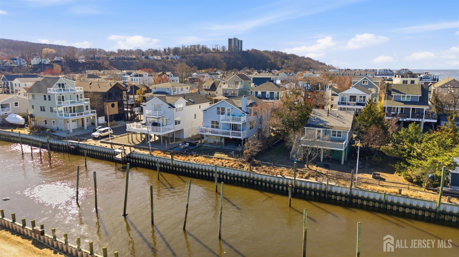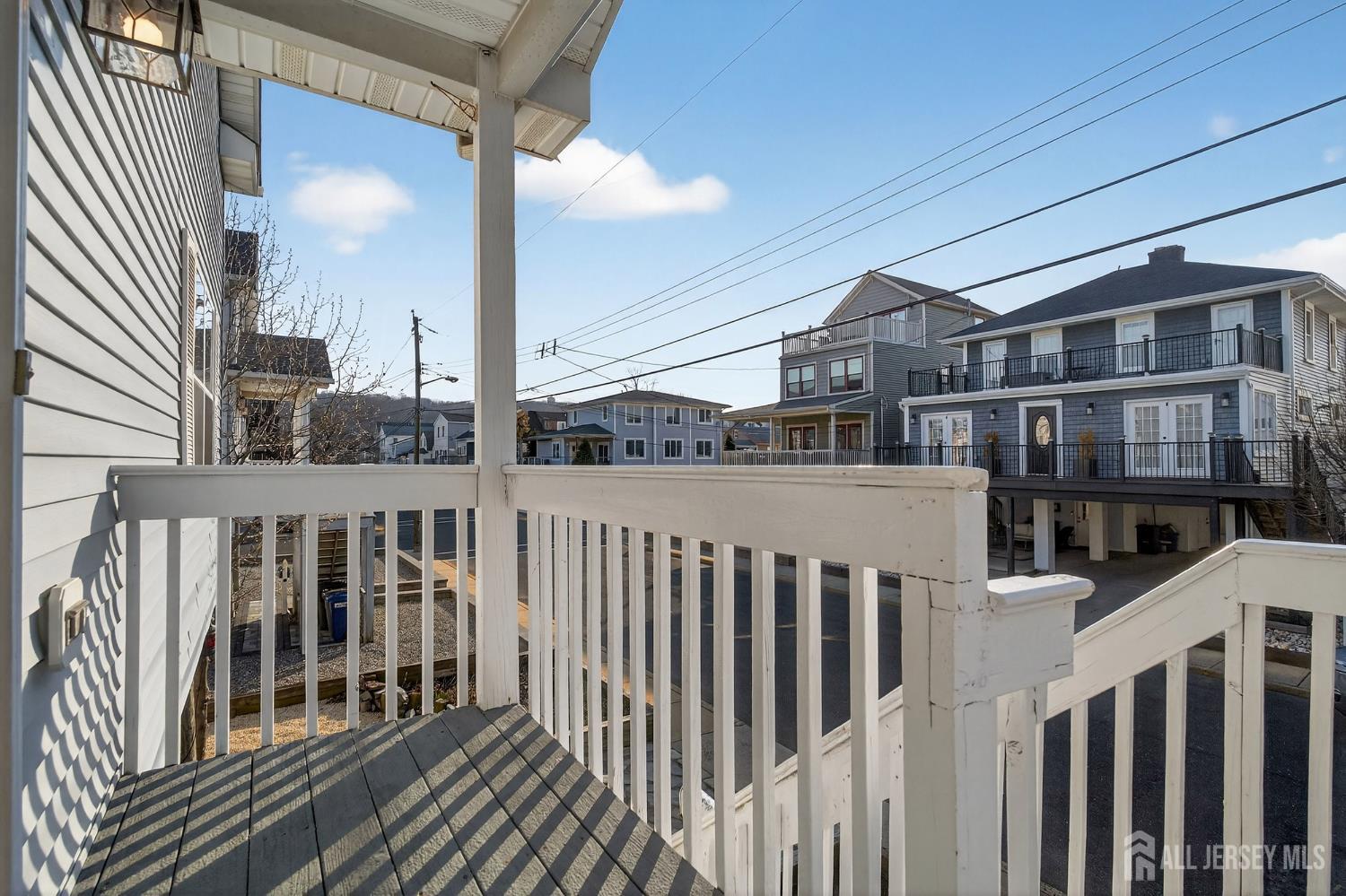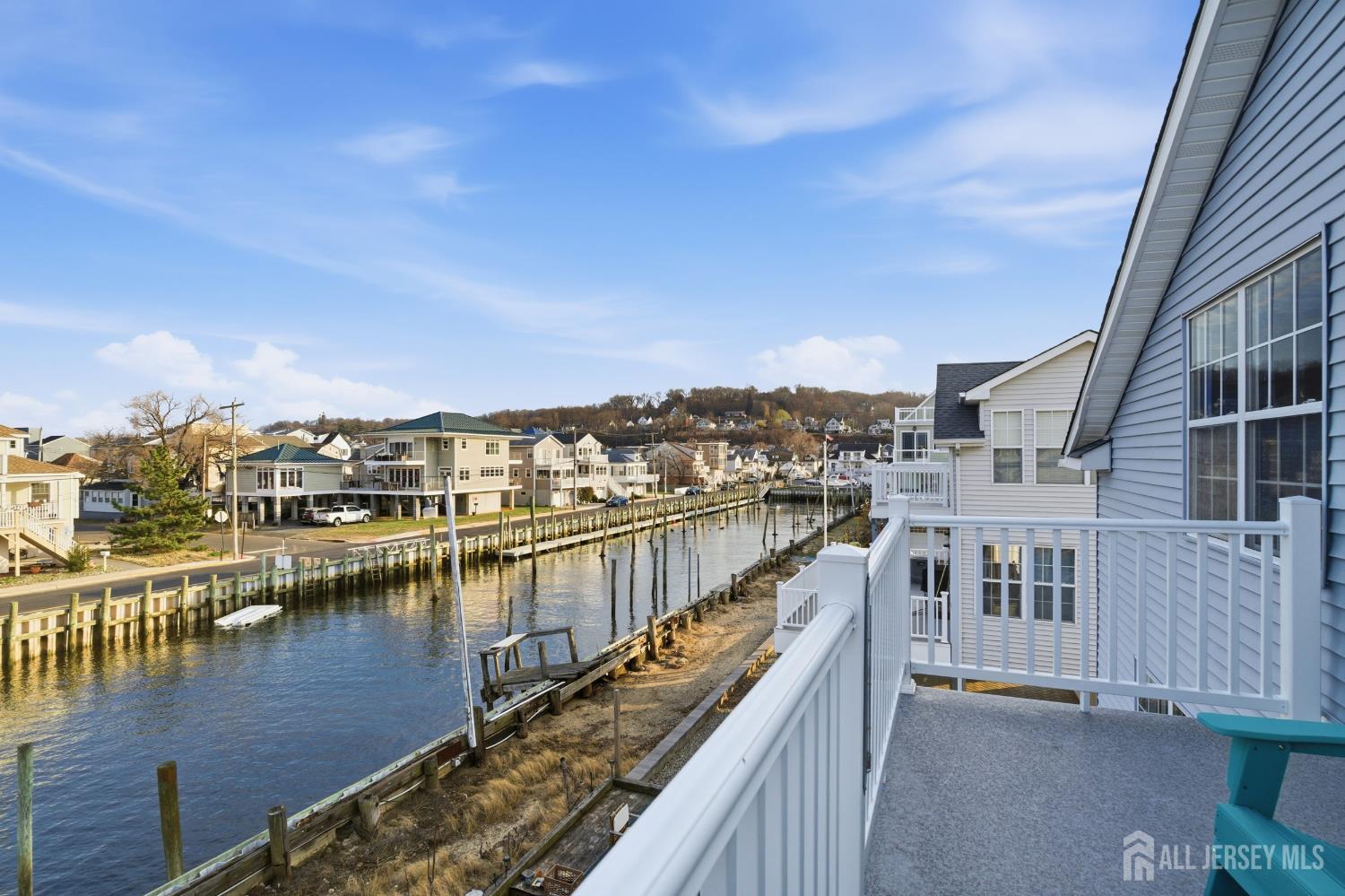 Experience coastal living at its best in this beautifully raised shore home, ideally located just the fourth house from the beach and close to parks, ferry service, the train, walkable downtown, and everything that makes this seaside lifestyle so special. Whether you're searching for the perfect summer getaway, weekend retreat, second home, or year-round residence, this property offers the ideal blend of comfort, flexibility, and unforgettable views. Inside, the home features a bright, open layout designed for easy living and entertaining. The second level welcomes you with a dramatic two-story foyer, hardwood floors, and a spacious great room with a wood-burning stone fireplace, built-ins, and sliding doors to a long covered deck overlooking the water. The kitchen is filled with natural light and offers abundant oak cabinetry, stainless steel appliances, a breakfast bar island, pantry storage, built-in seating, and a dining area perfectly positioned to enjoy the views. Upstairs, the expansive primary suite is a true retreat, featuring vaulted ceilings, a bay window, private balcony access, water views, a large walk-in closet, and a spacious en-suite bath with jetted tub, separate shower, and linen storage. Additional bedrooms, loft space, and a massive walk-in attic provide room for guests, work-from-home needs, and exceptional storage. The outdoor setting is just as inviting, with multiple decks and patios, a built-in fire pit, stone landscaping, storage shed, and scenic views of the nearby inlet and Shrewsbury River. Beneath the raised home, an enclosed concrete space with electricity offers incredible versatility for storage, a gym, workshop, garage space, hobby area, or future finished-use potential. With dual-zone HVAC, added insulation, abundant storage, and a location that puts the beach, ferry, parks, and downtown all within easy reach, this is a rare opportunity to own a home that truly captures the best of shore living.