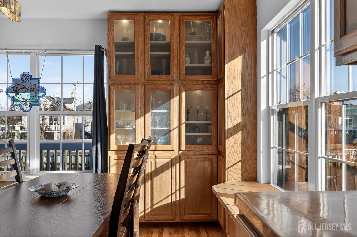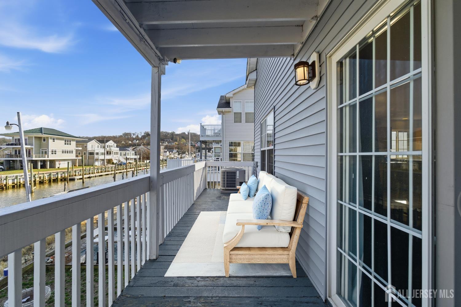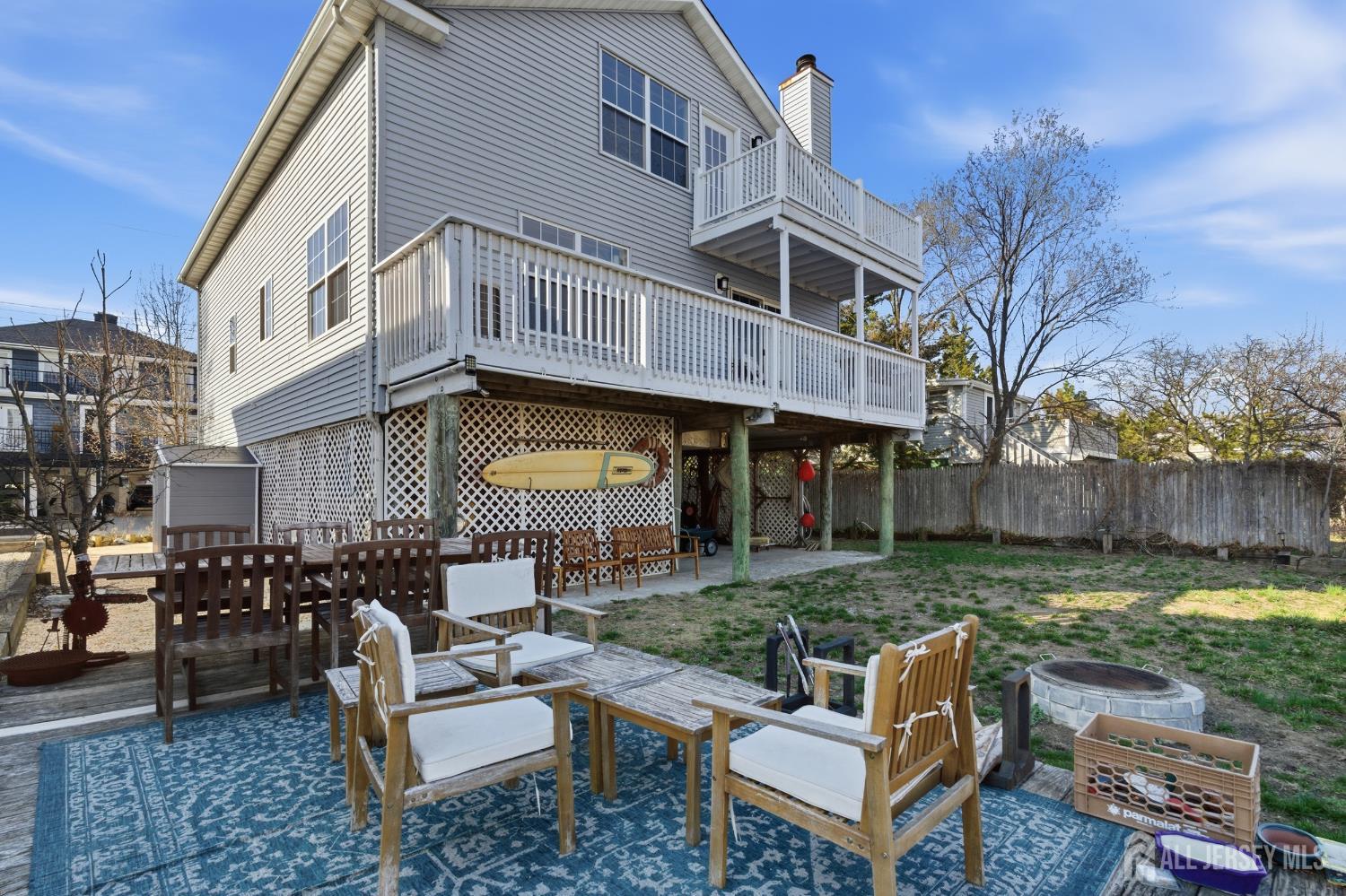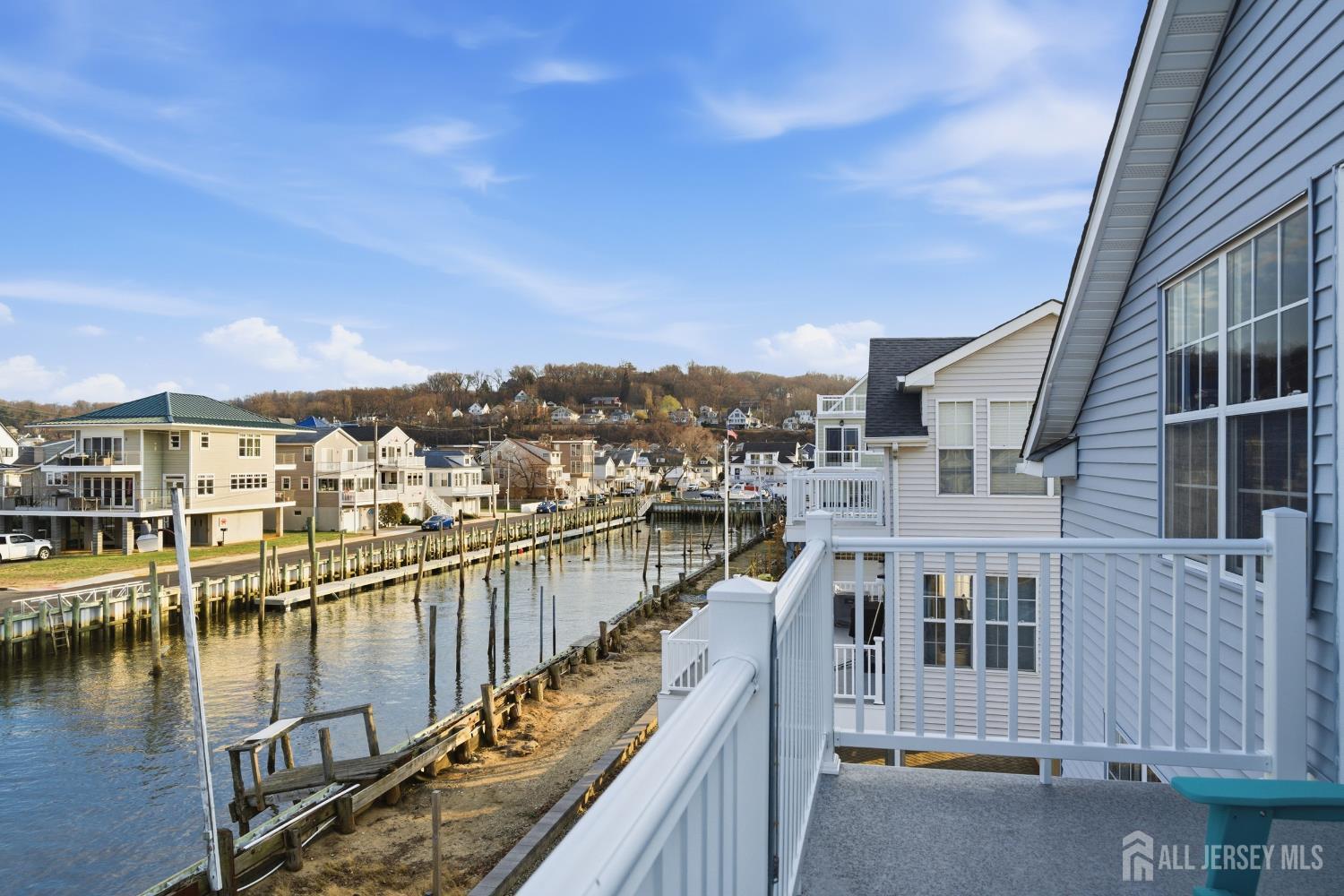 Experience coastal living at its best in this beautifully raised shore home, ideally located just the fourth house from the beach and close to parks, ferry service, the train, walkable downtown, and everything that makes this seaside lifestyle so special. Whether you're searching for the perfect summer getaway, weekend retreat, second home, or year-round residence, this property offers the ideal blend of comfort, flexibility, and unforgettable views. Inside, the home features a bright, open layout designed for easy living and entertaining. The second level welcomes you with a dramatic two-story foyer, hardwood floors, and a spacious great room with a wood-burning stone fireplace, built-ins, and sliding doors to a long covered deck overlooking the water. The kitchen is filled with natural light and offers abundant oak cabinetry, stainless steel appliances, a breakfast bar island, pantry storage, built-in seating, and a dining area perfectly positioned to enjoy the views. Upstairs, the expansive primary suite is a true retreat, featuring vaulted ceilings, a bay window, private balcony access, water views, a large walk-in closet, and a spacious en-suite bath with jetted tub, separate shower, and linen storage. Additional bedrooms, loft space, and a massive walk-in attic provide room for guests, work-from-home needs, and exceptional storage. The outdoor setting is just as inviting, with multiple decks and patios, a built-in fire pit, stone landscaping, storage shed, and scenic views of the nearby inlet and Shrewsbury River. Beneath the raised home, an enclosed concrete space with electricity offers incredible versatility for storage, a gym, workshop, garage space, hobby area, or future finished-use potential. With dual-zone HVAC, added insulation, abundant storage, and a location that puts the beach, ferry, parks, and downtown all within easy reach, this is a rare opportunity to own a home that truly captures the best of shore living.