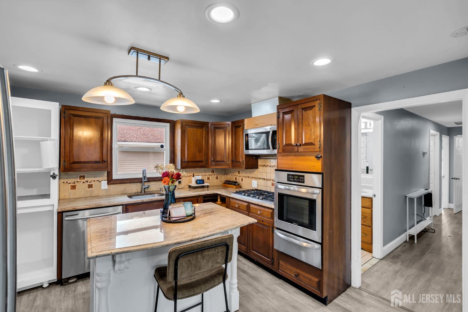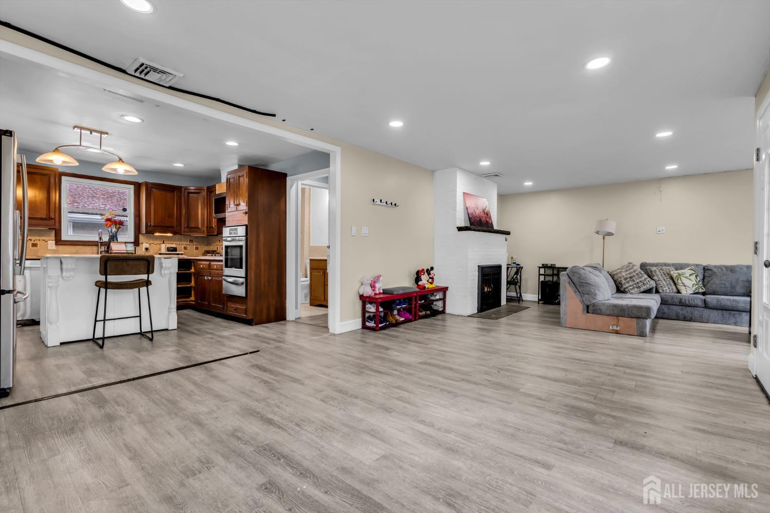 Welcome to this beautifully updated and spacious home in the heart of Sayreville, offering flexible living, modern updates, and an ideal layout for today's lifestyle. From the moment you arrive, you'll appreciate the charming curb appeal and inviting front entry that set the tone for what's inside. Step into a stunning open-concept living space featuring updated flooring, recessed lighting, and a bright, airy layout anchored by a classic fireplace. The expansive living and dining areas seamlessly connect to the kitchen, creating the perfect setting for both everyday living and effortless entertaining. The kitchen is thoughtfully designed with warm wood cabinetry, granite countertops, stainless steel appliances, and a center island. The home offers multiple generously sized bedrooms, including a primary suite with its own full bathroom and walkin closet. Additional bedrooms provide flexibility for guests, home office space, or extended living needs, while updated bathrooms throughout add a modern touch. A partially finished lower level expands the home's versatility, featuring additional living space perfect for a recreation room, gym, media area, or guest accommodations, along with a full bathroom and laundry area. Step outside to a spacious backyard offering plenty of room for outdoor entertaining, play, or relaxation. Ideally located near shopping, dining, parks, and major commuting routes, this home offers the perfect balance of comfort, space, and convenience.