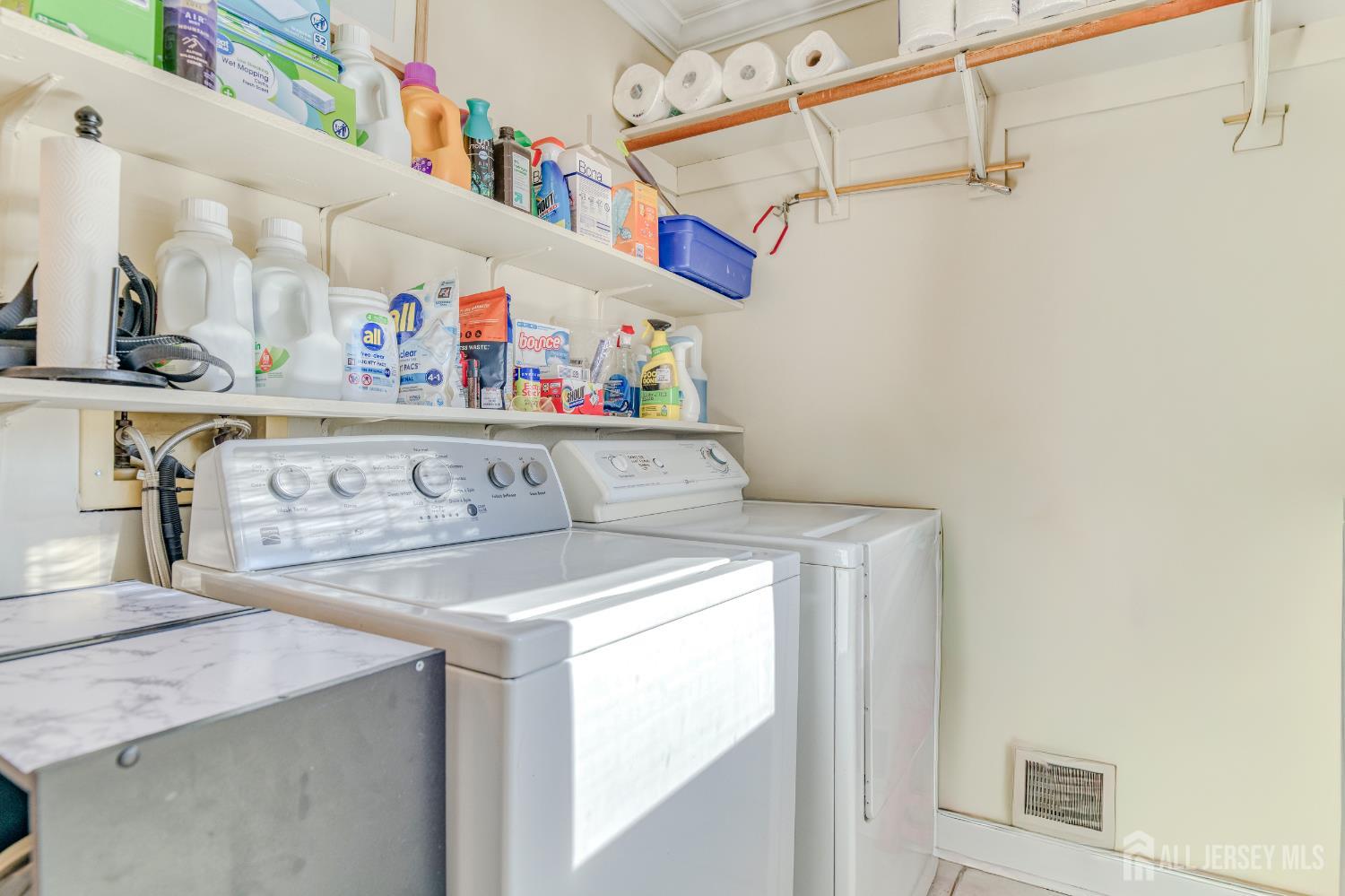 This lovely colonial style home is nestled in a private cul de sac in one of North Brunswick's most desired neighborhoods! Paver walkways lead to the stately front porch, with four impressive columns to greet you! You enter the home into the inviting foyer, with its parquet floors that run into the spacious dining room. With its large double windows and elegant crown molding, it's a great place to celebrate special occasions! The sun-drenched living room features lots of windows, crown molding, and is great for get-togethers! The large eat-in kitchen boasts plenty of cabinets and counter space, stainless steel appliances, and sunny sliders that lead to the picturesque backyard! Next to the kitchen is the family room, a fantastic place to kick back at the end of the day! The first floor also features a great office, a super half bath, and a laundry room that leads to the big two-car garage! Upstairs, you'll find four large bedrooms, with a spacious main bedroom suite with a big walk-in closet and large private bath! This home also boasts a full basement with a workshop and tons of possibilities, a fenced backyard with a big paver patio, and an ample driveway leading to the two-car side entry garage! This home is tucked away from all the hustle and the bustle, but is still close to shopping, entertainment, and more! Don't miss out! Showings start 2/7!