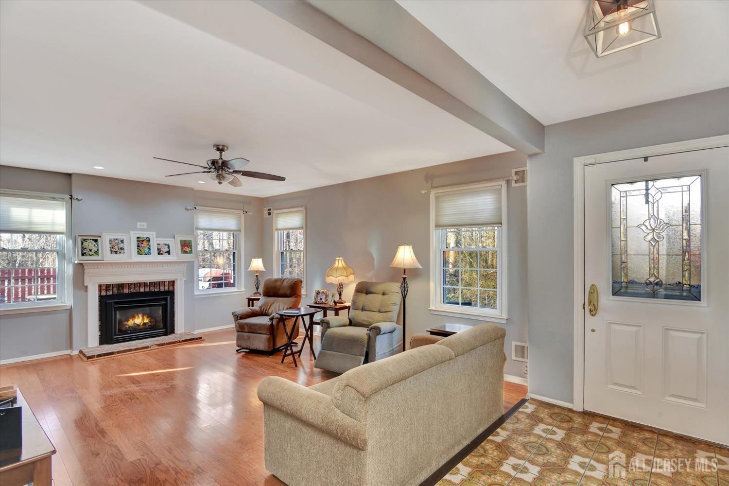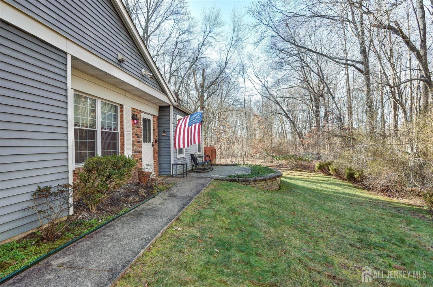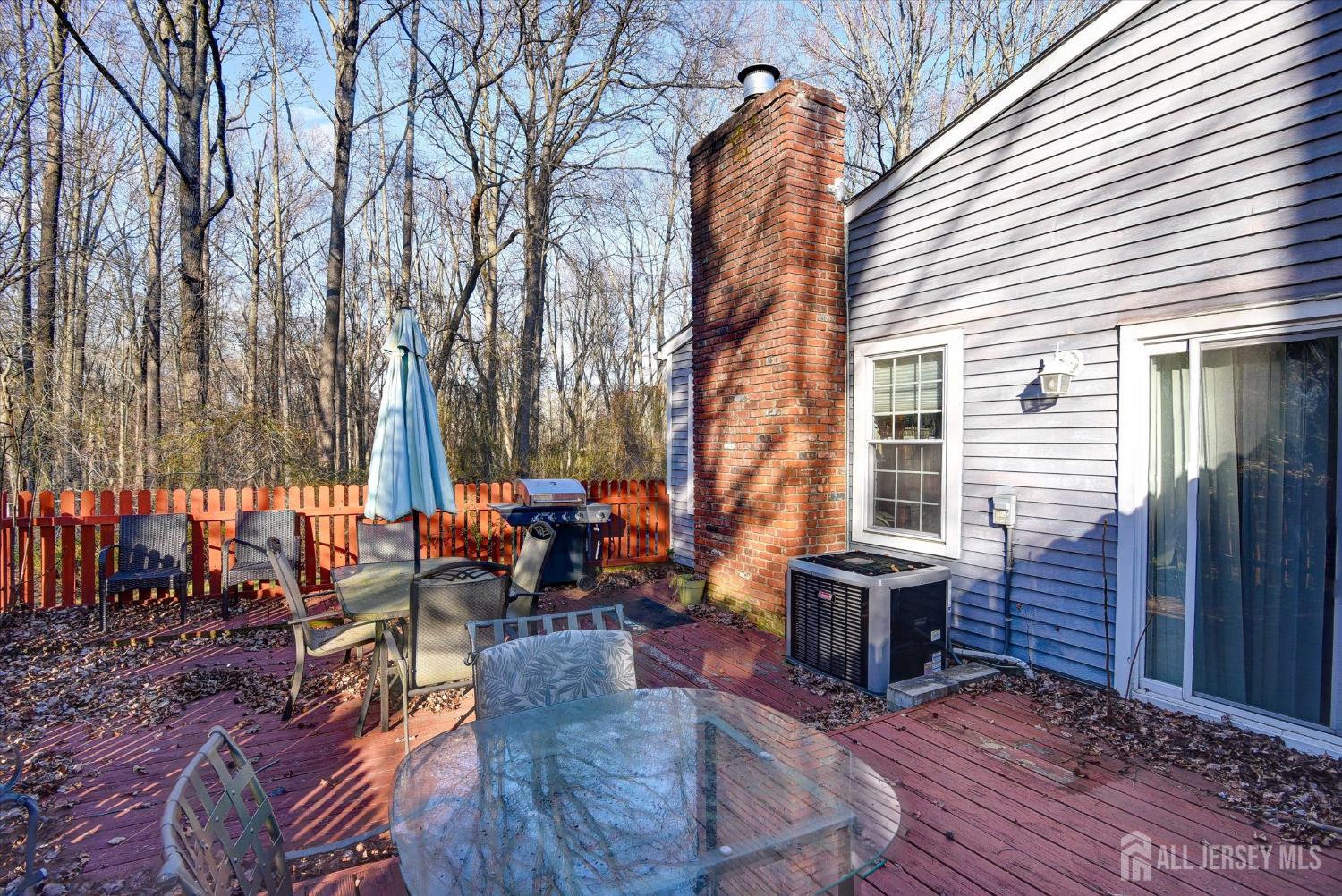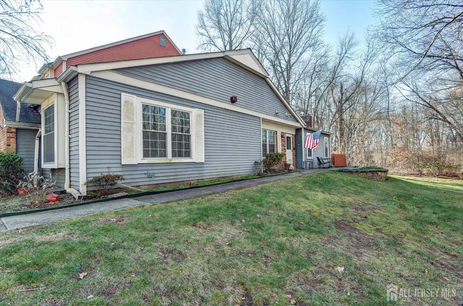 Nestled in the desirable Old Bridge Mews community, this beautifully maintained 2-bedroom, 2-bath end-unit ranch offers the perfect blend of comfort, privacy, and convenience. Step into the inviting sunken living room featuring elegant hardwood floors and a cozy gas fireplaceideal for relaxing or entertaining. The formal dining room opens through sliding doors to a private, oversized deck bordered by mature woods, creating a true outdoor retreat. The updated eat-in kitchen boasts granite countertops, abundant cabinetry, and a beverage refrigerator, providing both function and style. The spacious primary suite includes a walk-in closet and an upgraded ensuite bath with a walk-in shower, while the second full bath has also been tastefully renovated. Additional features include a conveniently located laundry room and an attached one-car garage. Perfectly situated for commuters, this home offers easy access to New York City buses and the Matawan/Aberdeen train station. Experience low-maintenance living in a peaceful community and enjoy the best of suburban comfort with urban accessibility.
