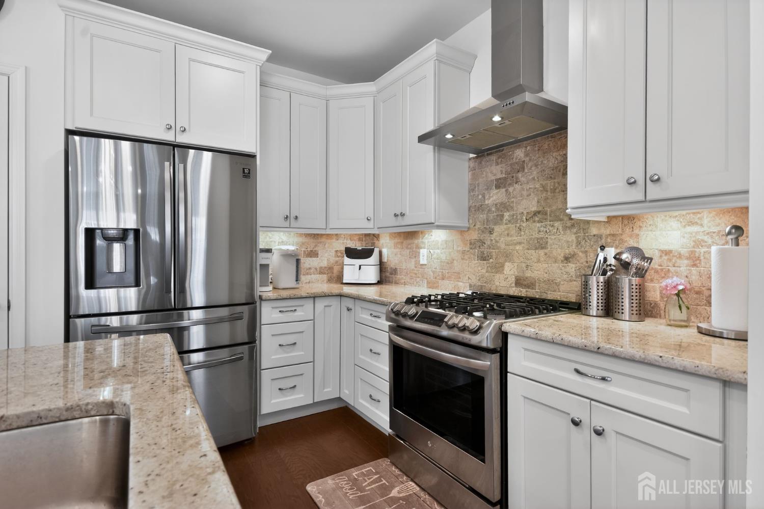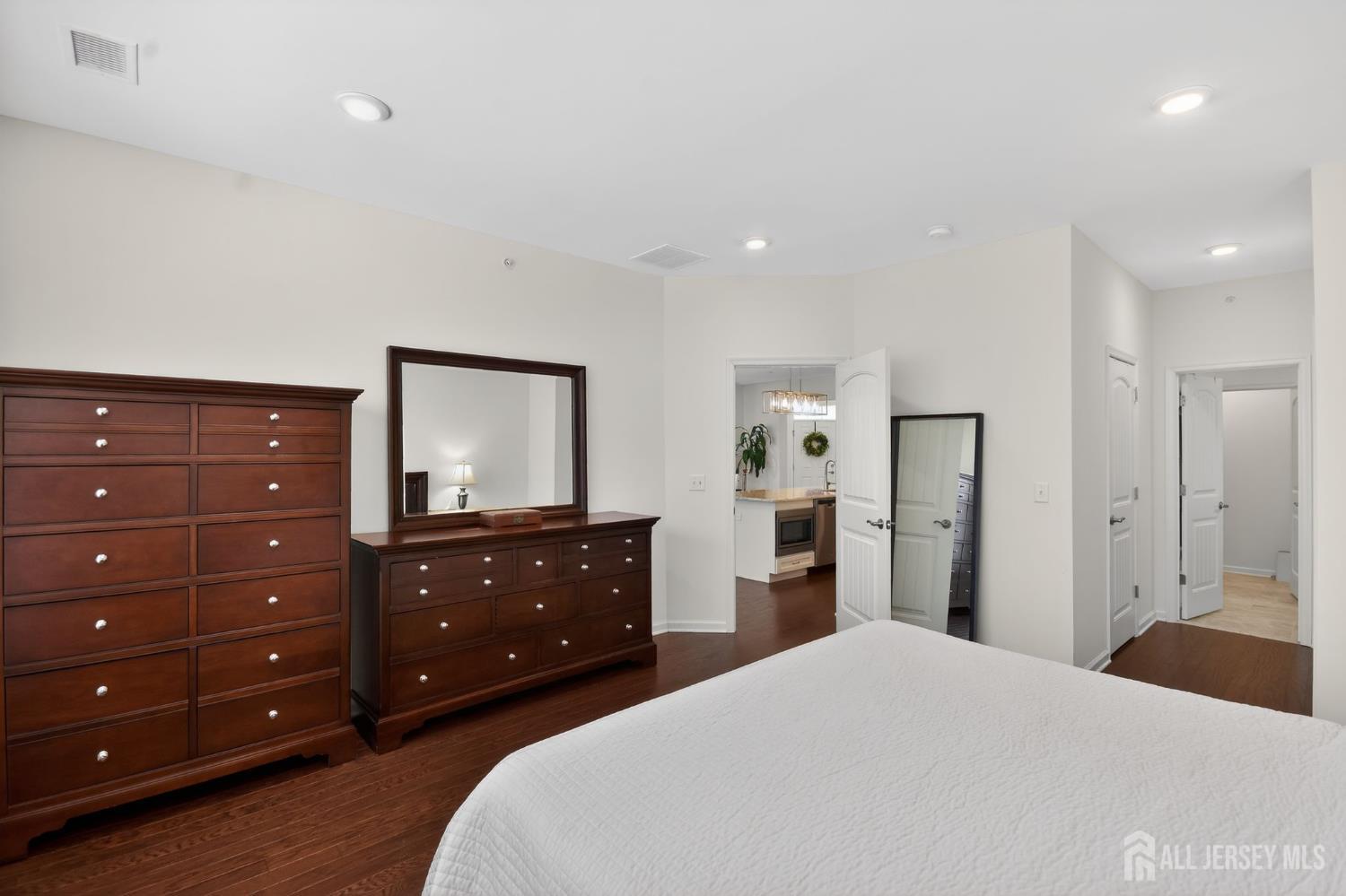 What a gem! This sunny 55+ home is the total package, combining modern design, selective cosmetic touches, community amenities & convenient location! The end-unit Dover is a special & desirable layout in Regents Wharf, featuring a large loft & 2-car garage! Enter the foyer, and view the open living, dining rooms, eat-in kitchen w/breakfast bar, granite counters, 42 cabinets w/lighting underneath, tile backsplash, vented exhaust, extra wide sink. First-level primary bedroom w/large closets & full bath w/double sinks, upgraded ceramic tile work. Upstairs, the loft adds versatility as additional living space, work area, you name it! 2nd bedroom, PLUS STUDY/DEN, & very spacious storage room! Wood flooring & recessed lighting throughout! 2-car garage equipped w/EV Charging. Laundry rm w/utility sink. Enjoy pleasant days on the patio. Clubhouse w/full range of amenities: fitness room, billiards, outdoor inground pool, catering kitchen, multipurpose rm. Snow, trash removal included. Nearby NYC bus, Rt.9, GSP.