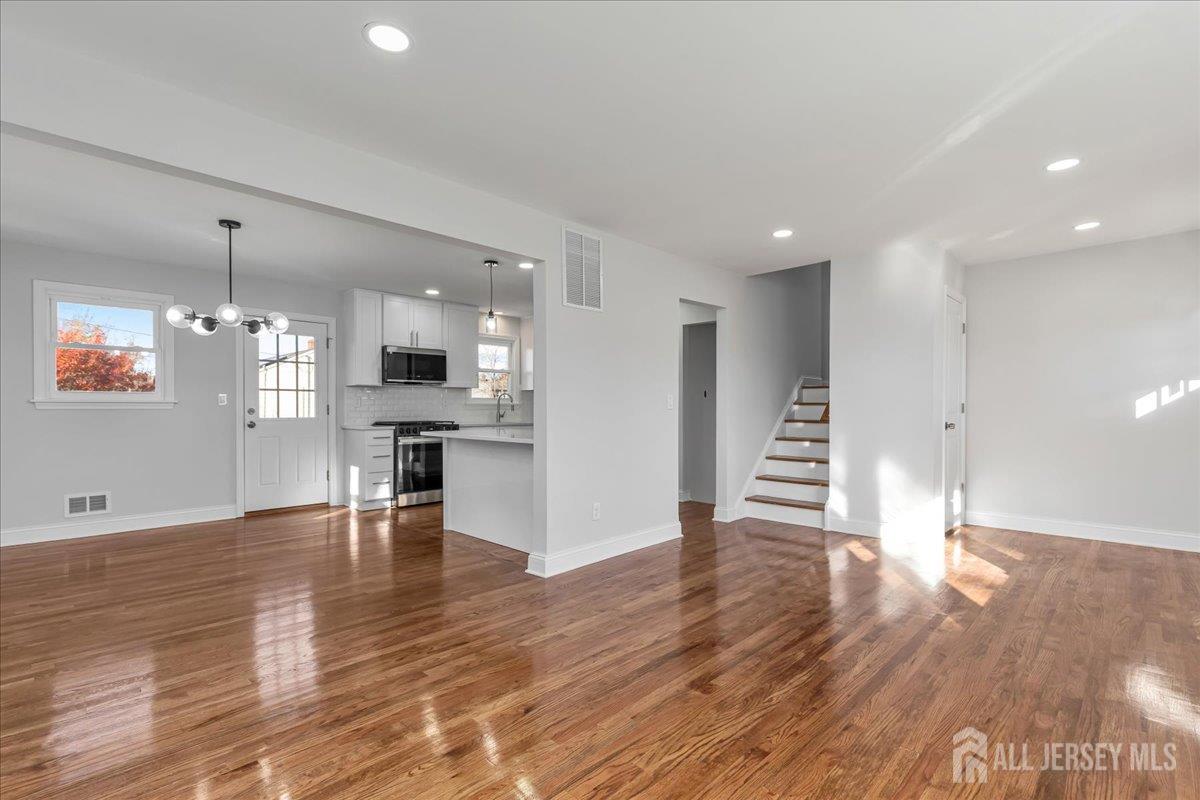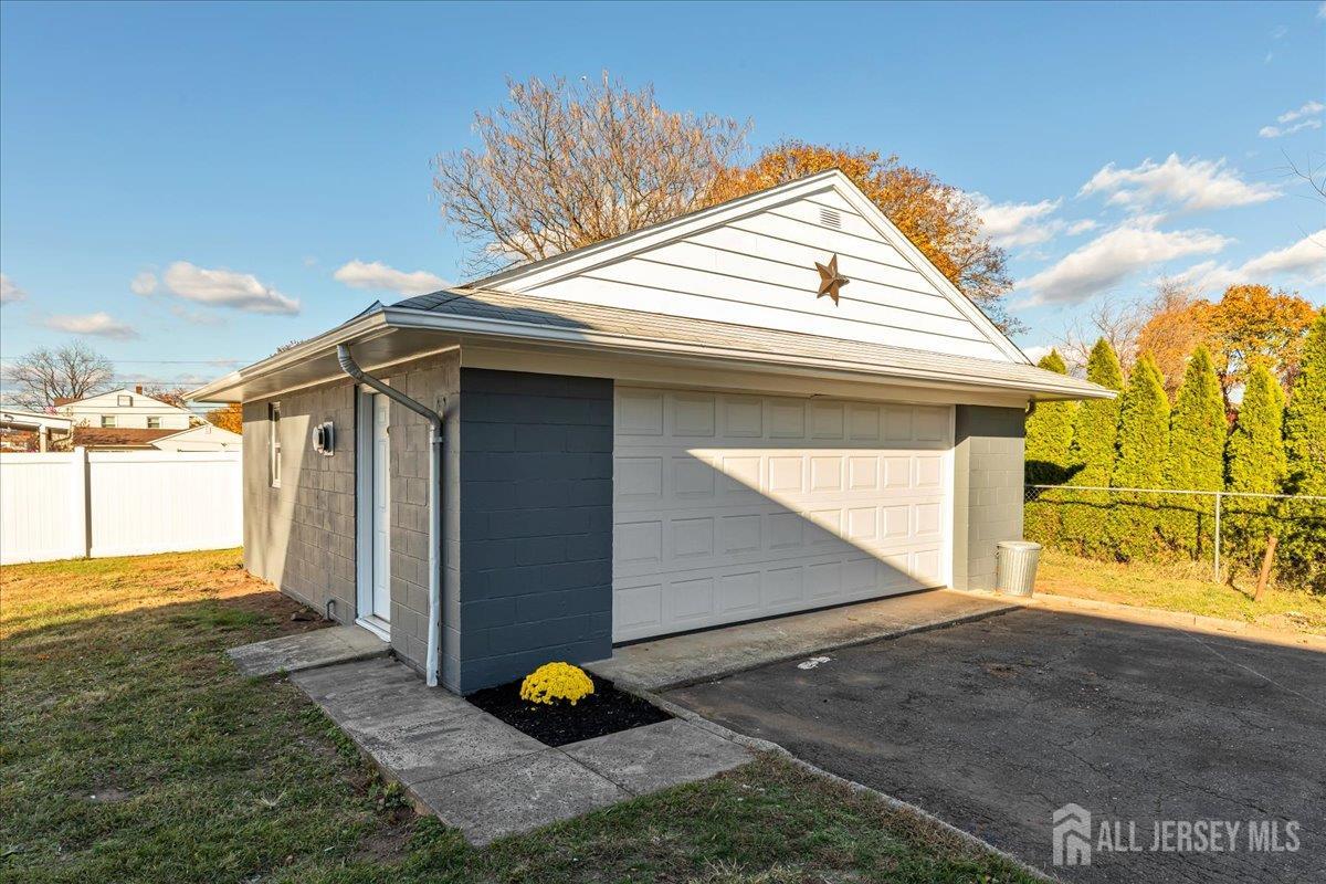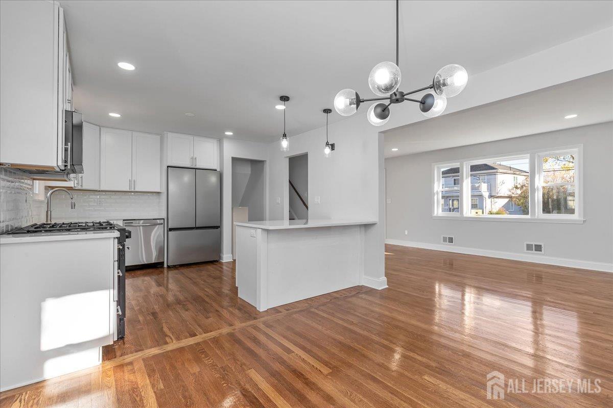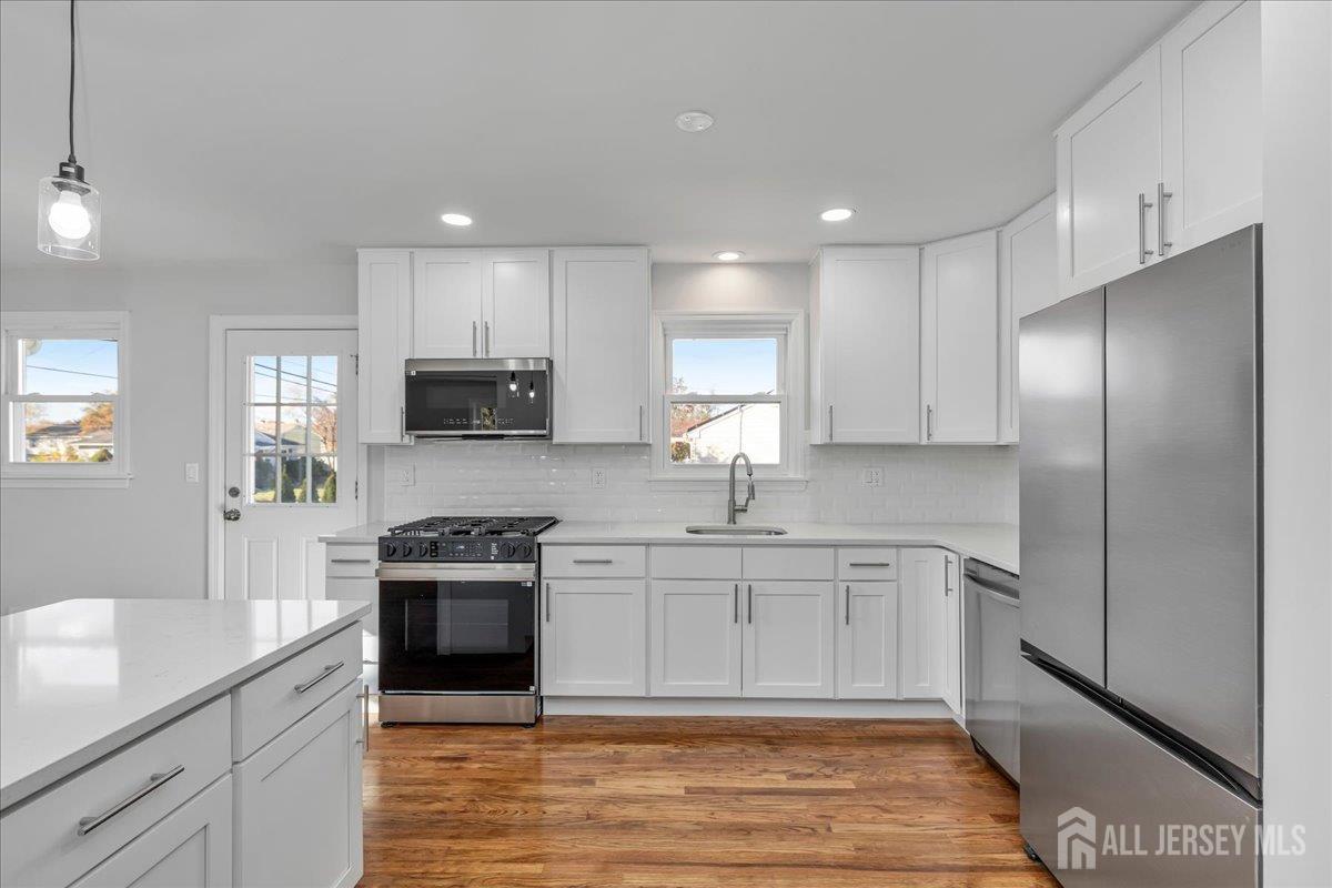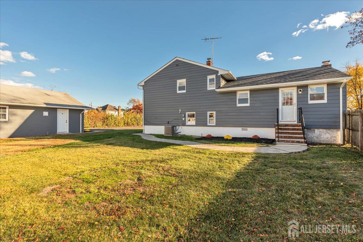 This fully remodeled split-level blends modern comfort with thoughtful upgrades throughout. Recent improvements include a new roof, new central A/C, new kitchen, new bathrooms, new windows, new interior and exterior doors, new water heater and refinished hardwood floors, creating a clean, fresh and worry-free home. A standout advantage of this property is the detached double garage with its own separate driveway, offering exceptional utility for parking, storage, workshop use, or hobbies - a rare find in the area and a valuable addition for everyday convenience. The main level offers open living and dining spaces with great natural light. The new kitchen features quartz countertops, a breakfast bar ideal for casual dining or entertaining, stainless-steel appliances, and contemporary cabinetry arranged for function and flow. Upstairs are three well-proportioned bedrooms and a beautifully renovated full bath. The lower level provides flexible additional living space, perfect for a family/media room, office, playroom, or guest area, along with a convenient second bathroom and laundry. The large, private yard adds space to relax, entertain, or garden. Excellent access to highways, train stations, schools, and shopping completes the picture.