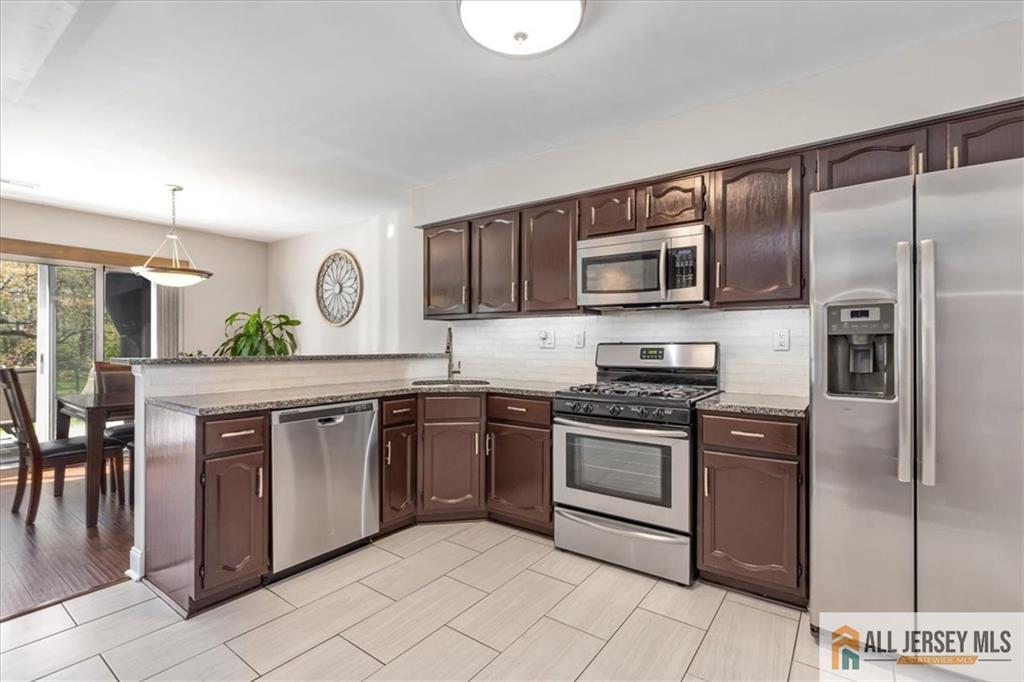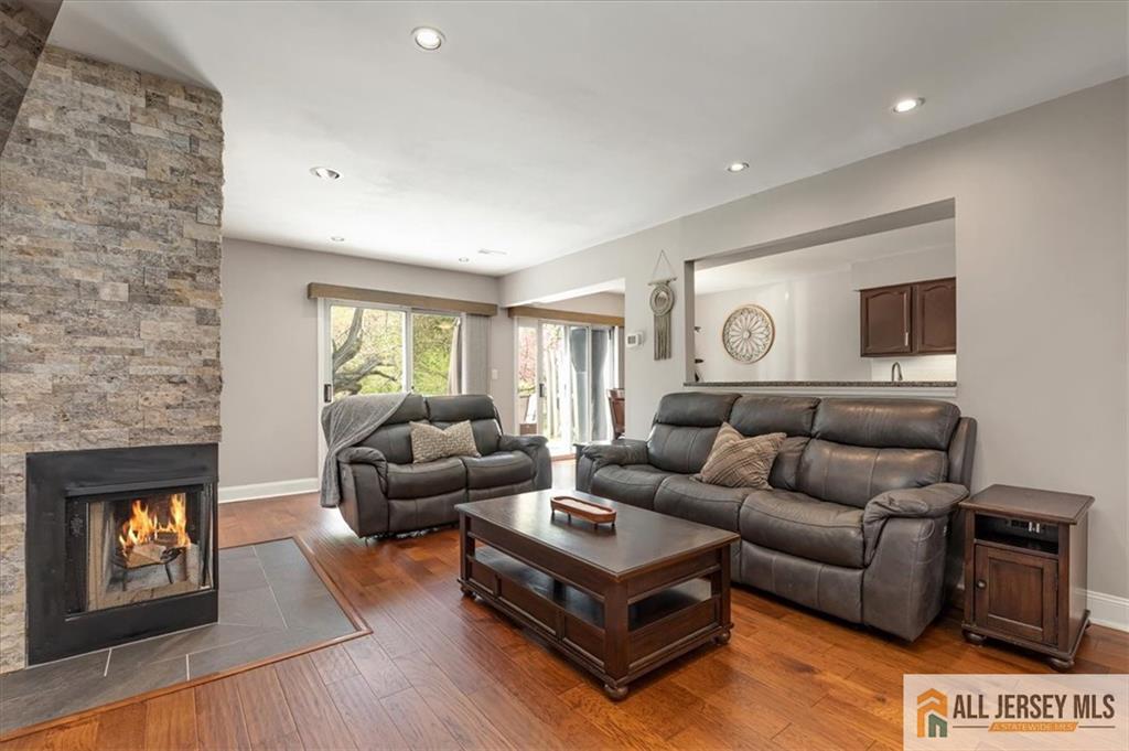 Move right into this beautifully updated 2BR, 3BA townhome in desirable Eatontown, featuring new flooring throughout and an updated kitchen with a large center island; perfect for cooking, gathering, and casual dining. Formal dining and a warm living room with fireplace create inviting spaces to entertain. A loft plus enclosed bonus room offer flexibility for a home office or nursery, with the added convenience of upstairs laundry. Enjoy a private, park-like backyard backing to serene woods, complete with a paved patio and wet bar, ideal for relaxing or hosting. Community amenities include tennis courts and a playground, with maintenance covering snow removal, lawn care, and garbage. Conveniently located near shopping, dining, transportation, golf, and Jersey Shore beaches.