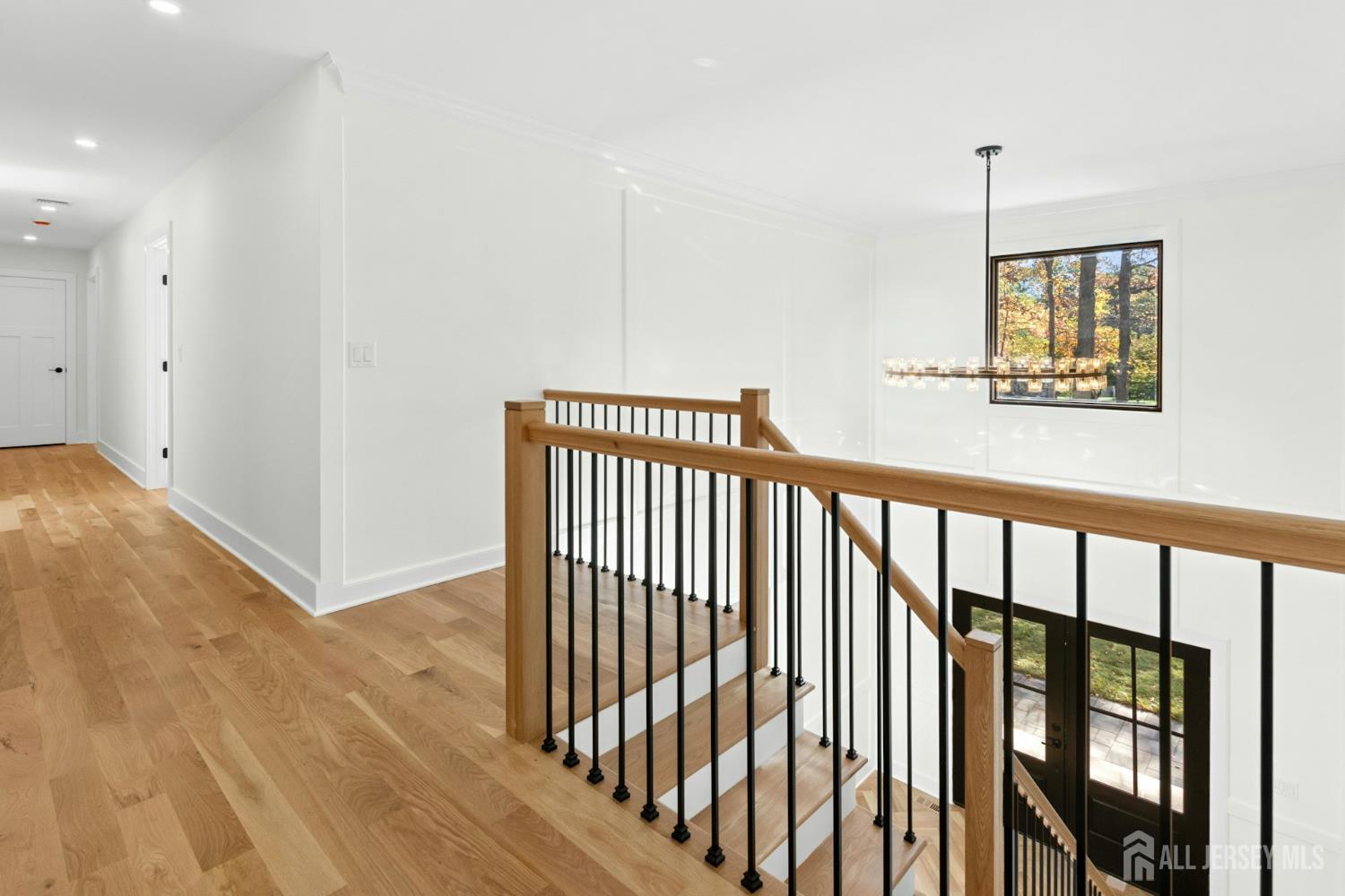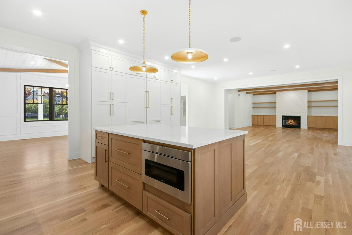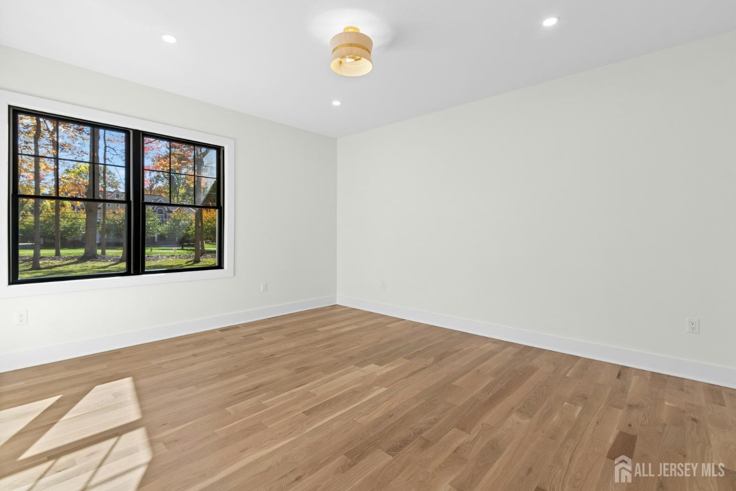 Welcome to a residence that redefines custom living. This brand-new 7,500+ square foot estate set on a level .95 acre lot is not just a house...it's a statement of vision, timeless design, and craftsmanship. Perfectly situated in one of Scotch Plains' most desirable neighborhoods, this home seamlessly blends modern sophistication with classic architectural elegance. Step inside through the grand double doors into a soaring two-story foyer filled with natural light and extraordinary attention to detail. The main level features an open-concept layout centered around a state-of-the-art chef's kitchen with Thermador appliances, quartz countertops and custom cabinetry. An adjoining prep kitchen is ideal for entertaining, storage, and simply keeping the main kitchen pristine. The en suite bedroom on this main level provides flexibility for guests, an au pair, or multigenerational living. Upstairs, the luxurious primary suite includes a spa-like bath with heated floors, and two individual walk-in showers...a rare indulgence. Two bedrooms are connected by a Jack & Jill bath while the remaining bedroom enjoys a private bath. The finished attic with full bath provides options for a second office, gym, or teen retreat. You will find a sprawling entertainment area in the basement anchored by a custom bar, a full bath, and a bedroom with an oversized egress window. Enjoy an ideal canvas for refined outdoor living and prepare to design the ultimate outdoor entertaining space. With the paver patio, full irrigation system, and fresh sod, the foundation for your dream outdoor oasis awaits. The interior details are both refined and enduring: 4 white oak flooring, white oak wood beam ceilings, extensive custom millwork, Andersen 400 Series black windows, hand-selected designer lighting, Sonos sound system, Nest thermostats, Kohler fixtures, and unique exquisite tile selections.This home provides for a wonderfully elevated lifestyle - a truly extraordinary opportunity in Scotch Plains.