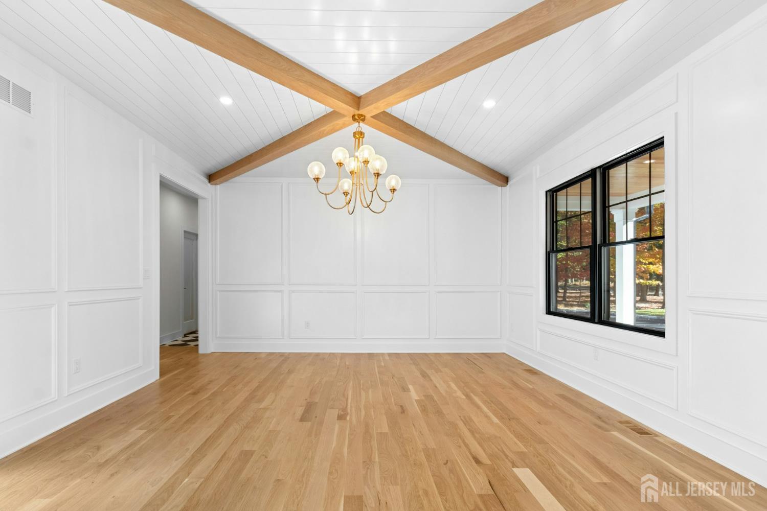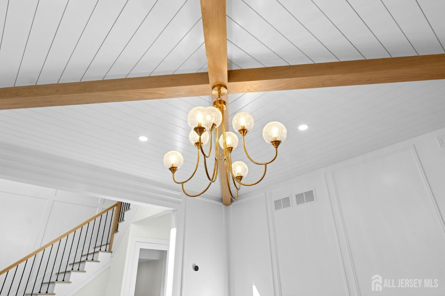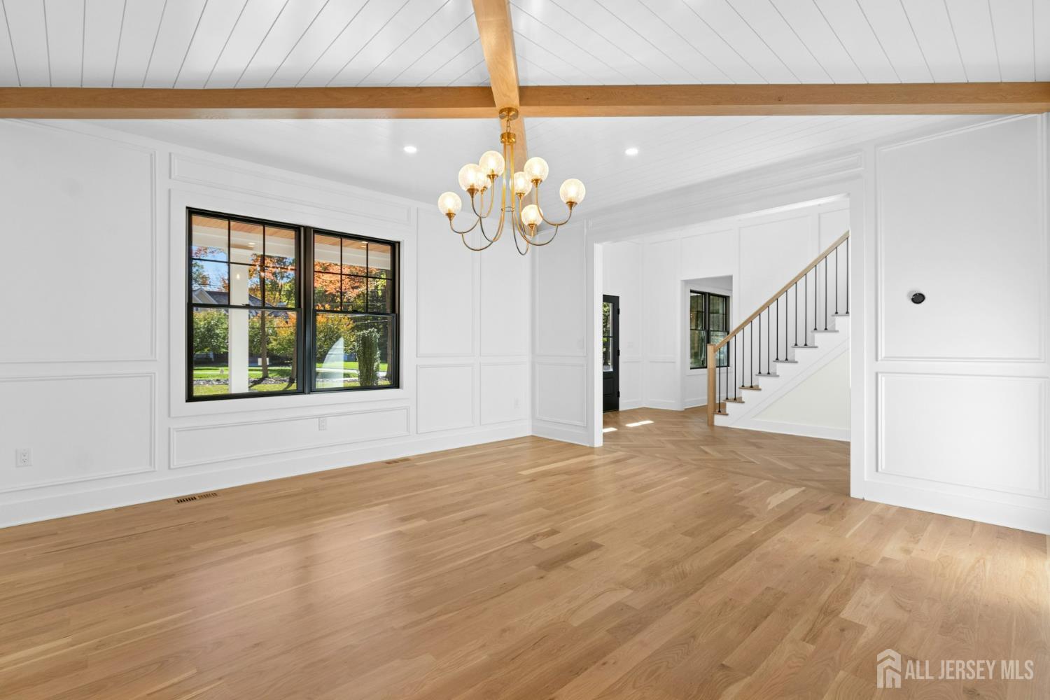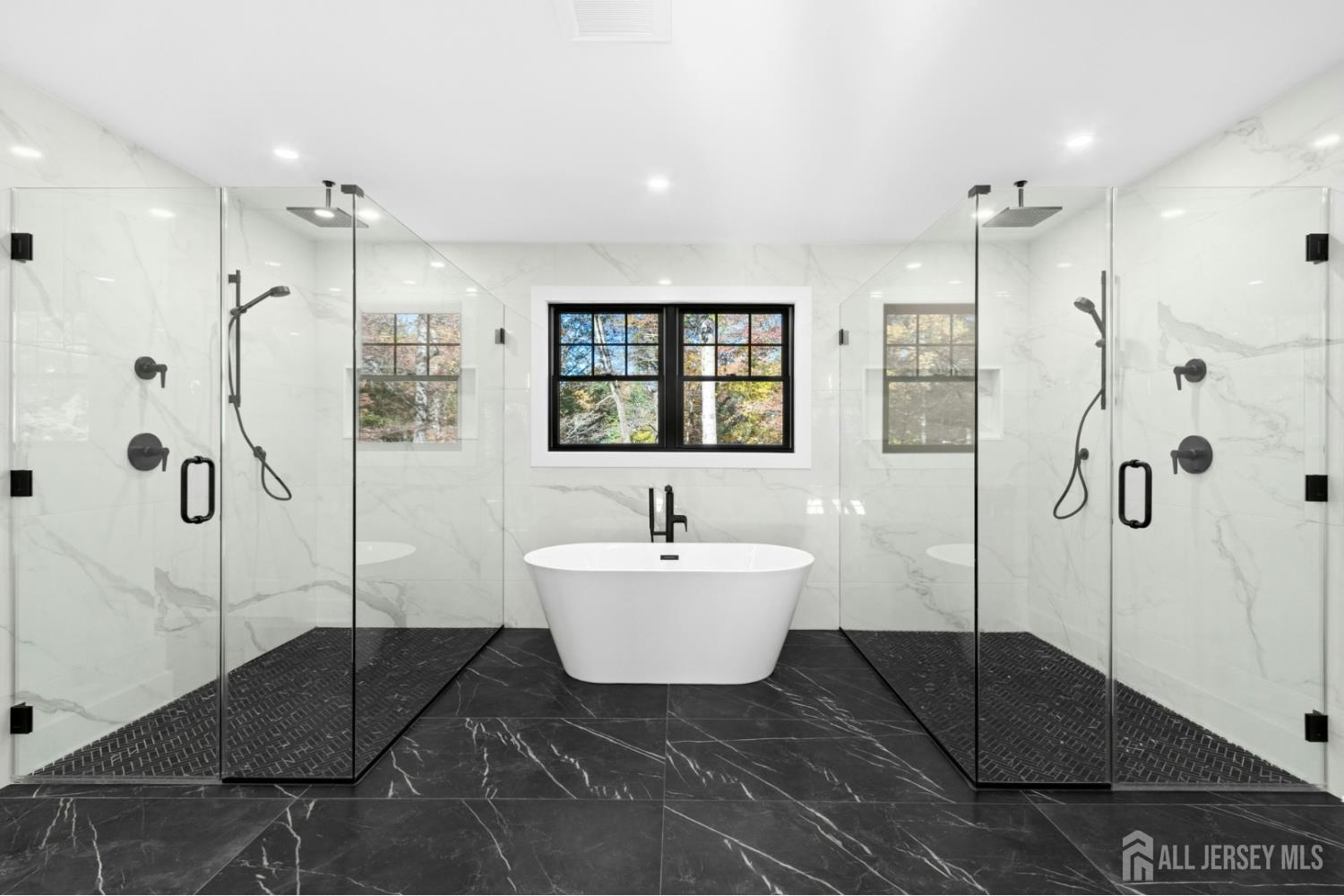 Welcome to a residence that redefines custom living. This brand-new 7,500+ square foot estate set on a level .95 acre lot is not just a house...it's a statement of vision, timeless design, and craftsmanship. Perfectly situated in one of Scotch Plains' most desirable neighborhoods, this home seamlessly blends modern sophistication with classic architectural elegance. Step inside through the grand double doors into a soaring two-story foyer filled with natural light and extraordinary attention to detail. The main level features an open-concept layout centered around a state-of-the-art chef's kitchen with Thermador appliances, quartz countertops and custom cabinetry. An adjoining prep kitchen is ideal for entertaining, storage, and simply keeping the main kitchen pristine. The en suite bedroom on this main level provides flexibility for guests, an au pair, or multigenerational living. Upstairs, the luxurious primary suite includes a spa-like bath with heated floors, and two individual walk-in showers...a rare indulgence. Two bedrooms are connected by a Jack & Jill bath while the remaining bedroom enjoys a private bath. The finished attic with full bath provides options for a second office, gym, or teen retreat. You will find a sprawling entertainment area in the basement anchored by a custom bar, a full bath, and a bedroom with an oversized egress window. Enjoy an ideal canvas for refined outdoor living and prepare to design the ultimate outdoor entertaining space. With the paver patio, full irrigation system, and fresh sod, the foundation for your dream outdoor oasis awaits. The interior details are both refined and enduring: 4 white oak flooring, white oak wood beam ceilings, extensive custom millwork, Andersen 400 Series black windows, hand-selected designer lighting, Sonos sound system, Nest thermostats, Kohler fixtures, and unique exquisite tile selections.This home provides for a wonderfully elevated lifestyle - a truly extraordinary opportunity in Scotch Plains.