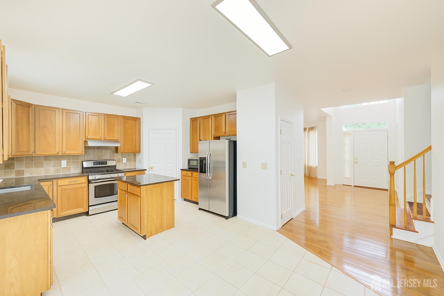 Welcome to this stunning NorthFacing 4-bedroom, 3.5-bath home offering 2,509 sq. ft. of thoughtfully designed living space in one of Sayreville's most desirable neighborhoods. From the moment you step inside, you'll appreciate the open layout, abundant natural light, and elegant hardwood flooring that flows throughout the first floor. The updated kitchen is a true centerpiece, featuring custom cabinetry, a spacious center island, and stone countertopsperfect for both everyday living and entertaining. Upstairs, you'll find generously sized bedrooms, including spacious closets, providing ample storage and comfort. The fully renovated basement (2025), complete with a full bath, offers versatile space for entertainment, relaxation, or hosting guests. Additional highlights include a high-ceiling two-car garage, a large four-car driveway, and a brand-new roof (August 2025). Fresh paint throughout makes this home move-in ready. Located in a quiet neighborhood with easy access to the Turnpike, Parkway, Routes 18, 1, and 9, this home is also conveniently close to major supermarkets and launch dock for water activities. Don't miss the opportunity to own this beautifully maintained property in Townelake, combining style, comfort, and an unbeatable location.