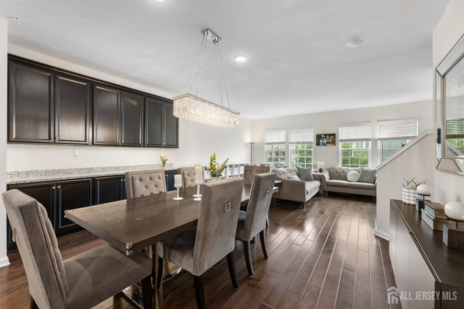 Welcome to the FINEST & sought after Colonial Style Luxury townhomes in North of NJ located at Wesmont Station Community of Wood Ridge. Just 30 mins from Manhattan, close to major turnpike and freeways, it offers ease of commute; wesmont train station just 5 mins stroll and option of two buses going into Manhattan that runs every 10-15 mins. This property offers an amazing size bedroom on the lower level, has 4 park space; 2 car garage and 2 car drive way. 1st floor offers beautiful open layout with modern updated kitchen, huge pantry and oversized island, it also has half bath, dining space for large gatherings, massive living area and a great sized outdoor deck. 3rd floor offers primary bedroom suite w/full bath, two large closet(plus additional custom made closet system offering additional storage), two add'l bedrooms, full bath & laundry room. Wood-Ridge has top rated elementary school. A hassle-free community living at its best, it offers plenty of convenient options; coffee shop, liquor shop on the premises, two playground, jogging area, dog park, leisure garden/green space from where you can witness beautiful sunset sky. Schedule your tour today!