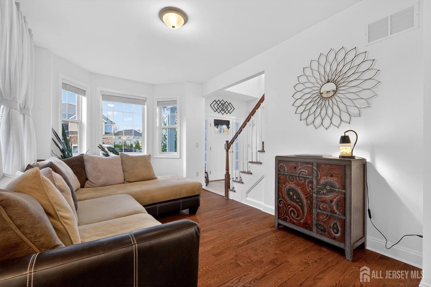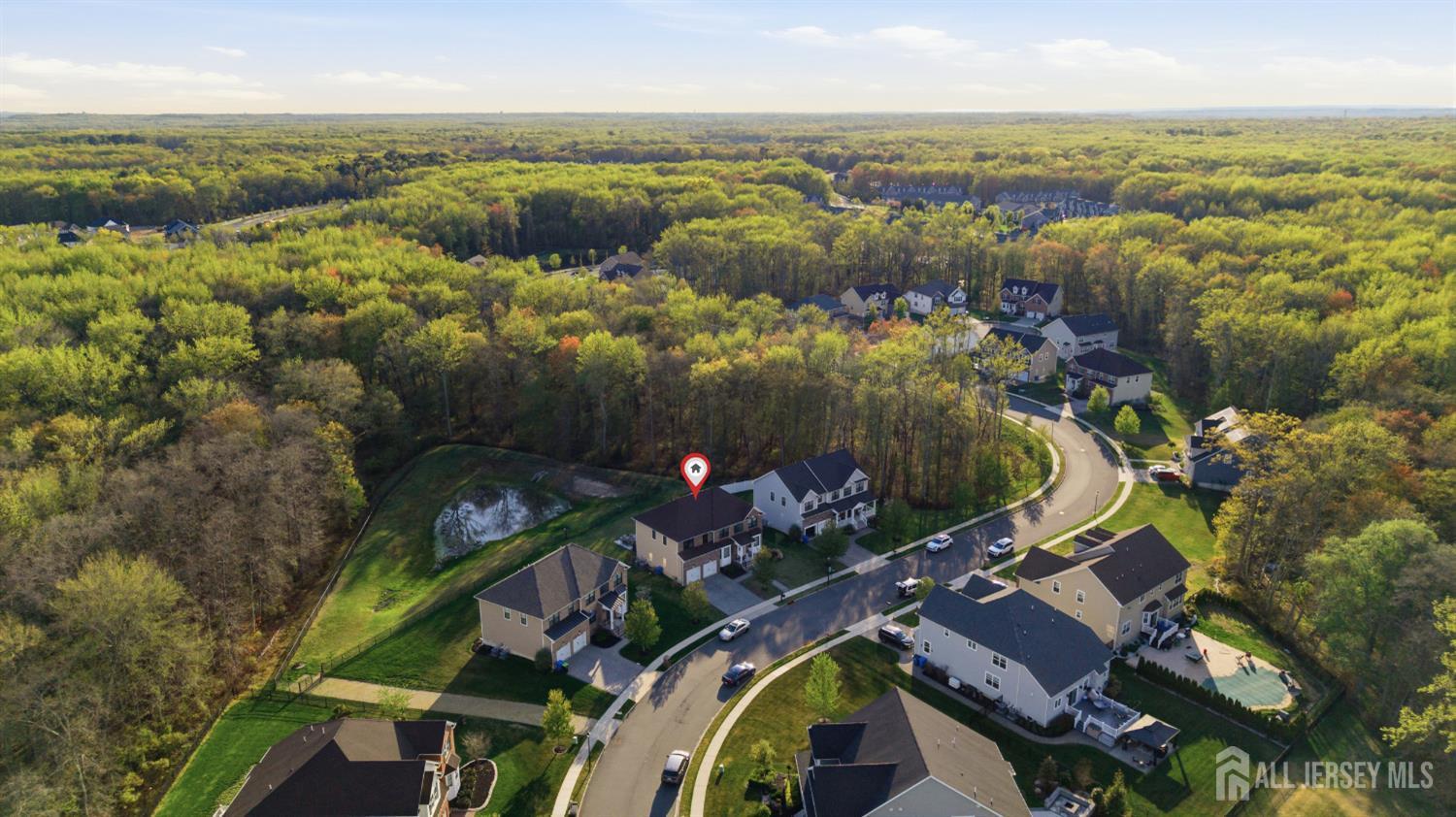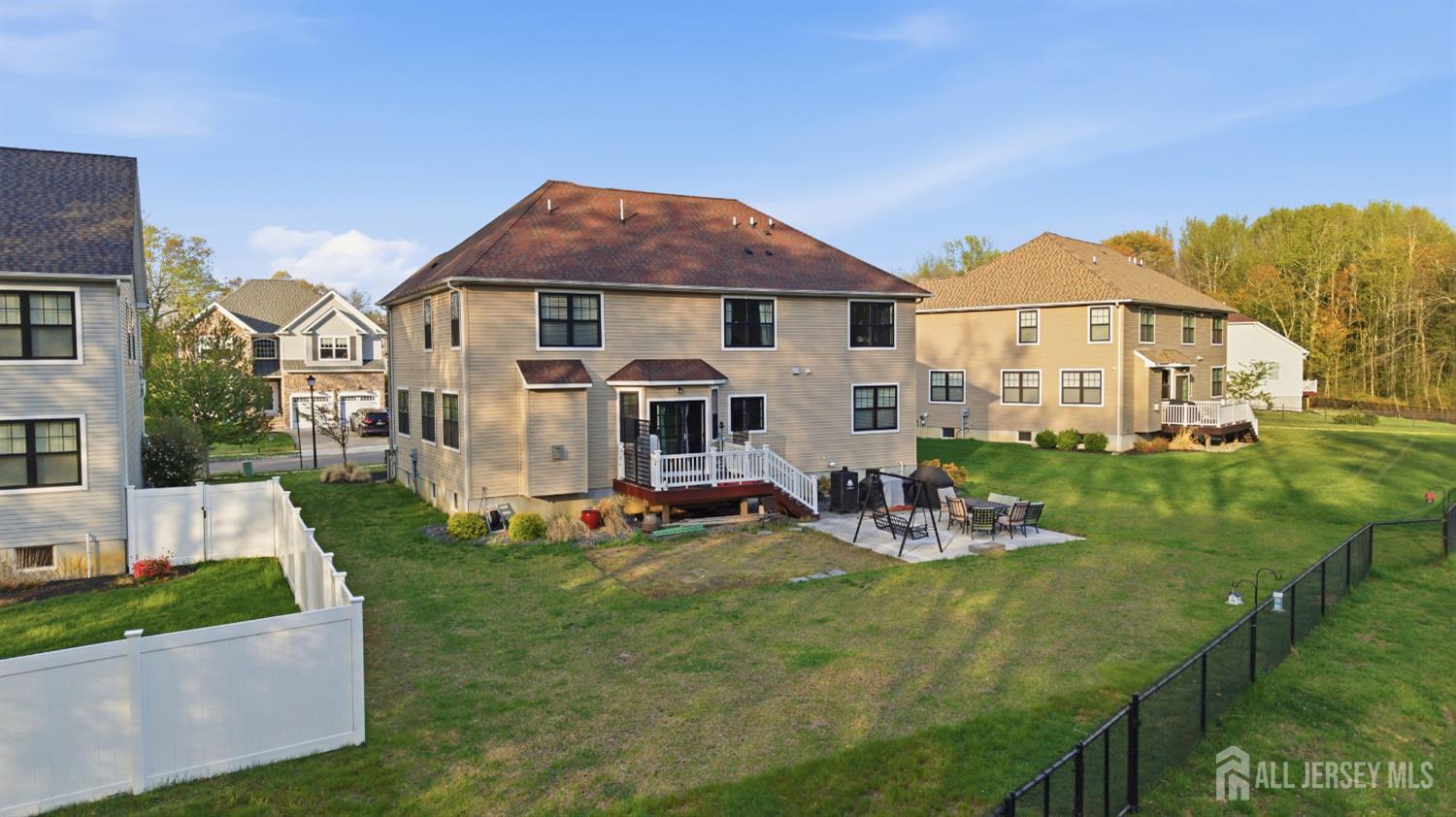 Absolutely stunning Reserve at Woodhaven custom Colonial, a beautifully designed North East facing 2021-built home offering approximately 3,008 sq ft of modern living space with 6 spacious bedrooms and 4 full bathrooms, perfectly suited for today's lifestyle. This home features a bright open floor plan filled with natural light, a stylish kitchen with sleek cabinetry, stainless steel appliances, and a center island ideal for both everyday living and entertaining, seamlessly flowing into expansive living and dining areas. Enjoy incredible closet space throughout along with efficient 2-zone heating and cooling for enhanced comfort and convenience. The flexible layout easily accommodates multi-generational living, guest suites, or work-from-home setups, while a full basement provides additional space and a blank canvas ready to be finished to suit your needs. Step outside to a low-maintenance Trex deck and a lovely, quiet backyard overlooking a serene water basin, offering peaceful views and a natural setting where birds and local wildlife can often be seen. Ideally located close to major transit, NYC commuter routes, shopping, dining, and everyday conveniences, and situated within a highly regarded school district, this newer construction home offers the space, layout, and location buyers are looking for, making it an obvious choice and one that is truly not to be missed.