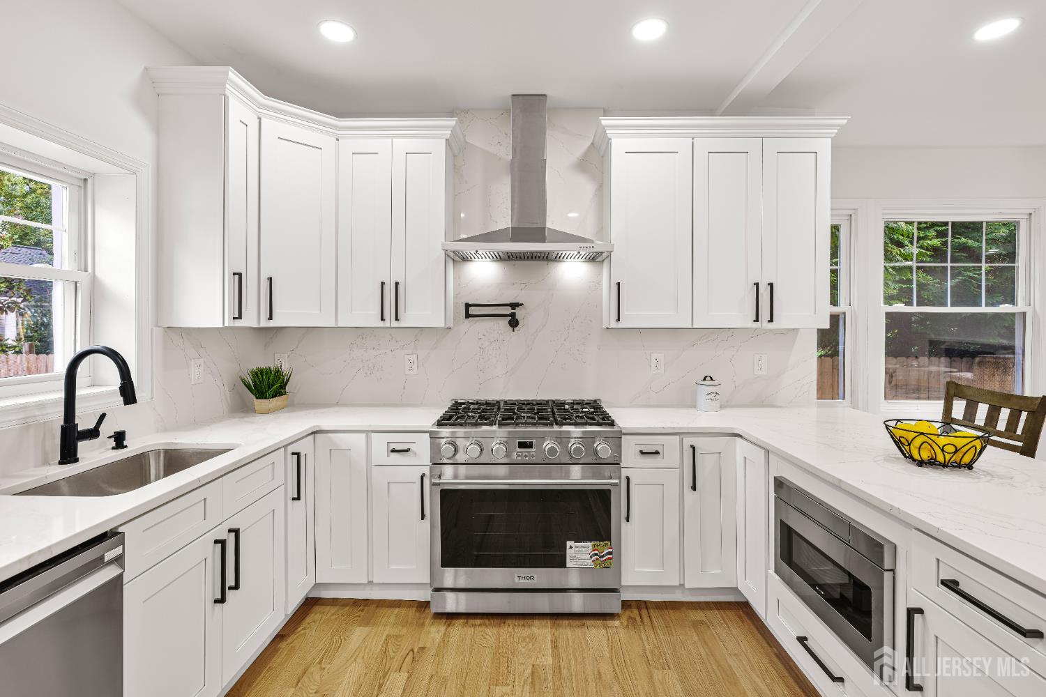 This fully renovated 4-bedroom, 5.5-bath home offers 3,016 sq ft of beautifully designed living space, including a finished basement with its own bath. Every detail has been thoughtfully upgraded inside and out, blending modern comfort with timeless style. The open main level creates an effortless flow between the kitchen, dining, and living areas. A wood-burning fireplace warms the bright living room, while the chefs kitchen delivers top-of-the-line finishes: 36 professional range, built-in microwave, pot filler, quartz countertops and backsplash, waterfall peninsula, and classic whiteshaker cabinetry. Upstairs, the primary suite is a true retreat with a walkin closet, double-sink vanity, and oversized shower. Two additional bedrooms offer private en suite baths, and the second-floor laundry room brings convenience to your daily routine. The finished basement provides flexible space for a home theater, gym, playroom, or office with its own bath for added functionality. Outdoors, a large fenced yard, detached 1-car garage, and private patio create the perfect backdrop for gatherings and summer barbecues. With a brand-new roof, dual-zone HVAC, new windows, siding, and stucco exterior, this home is completely move-in ready and designed to impress.