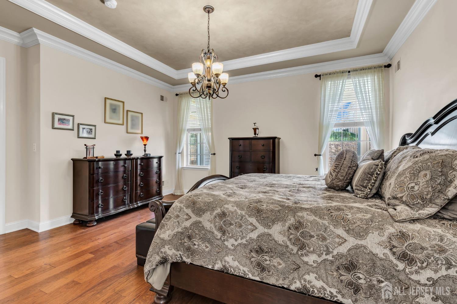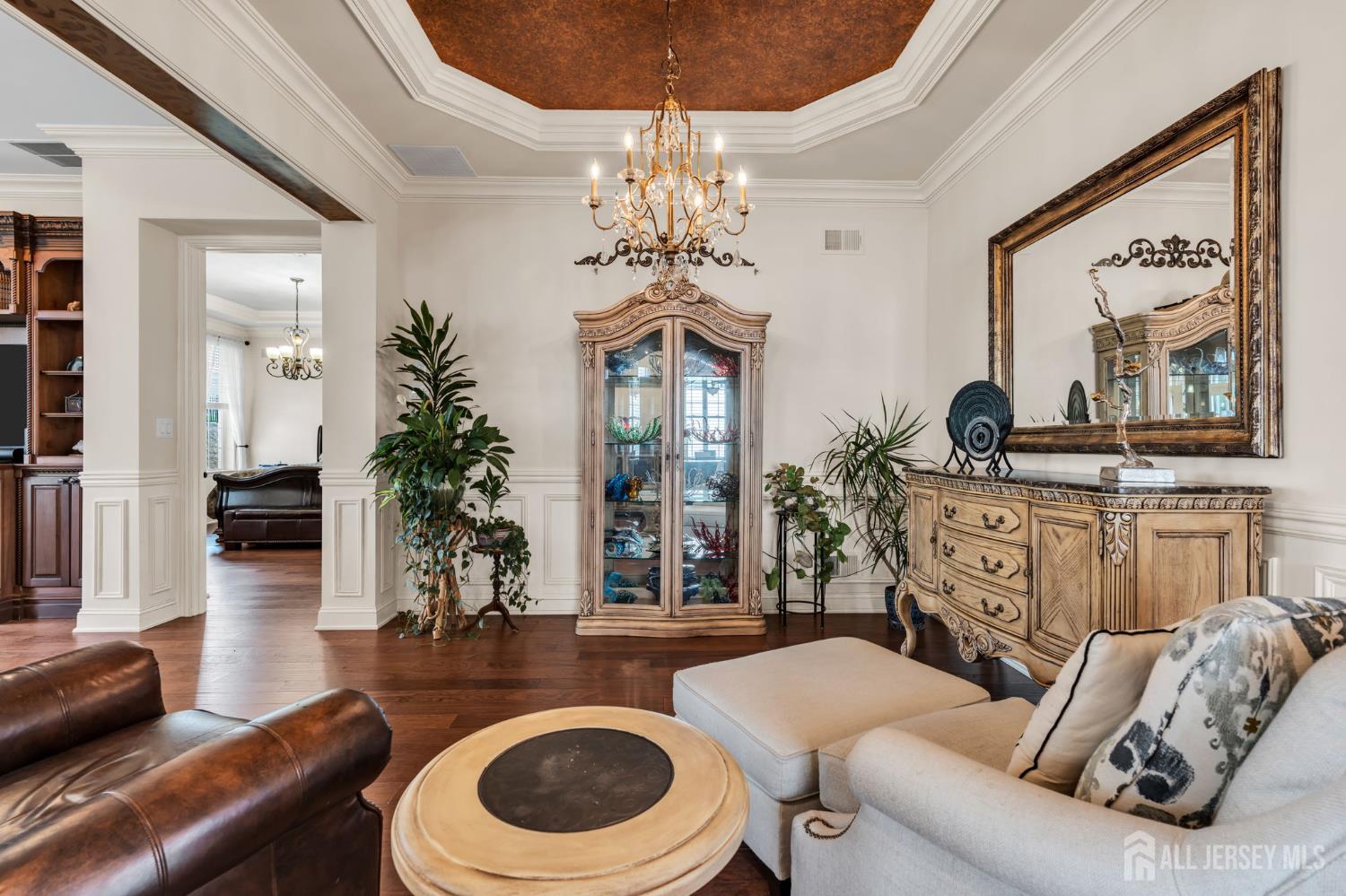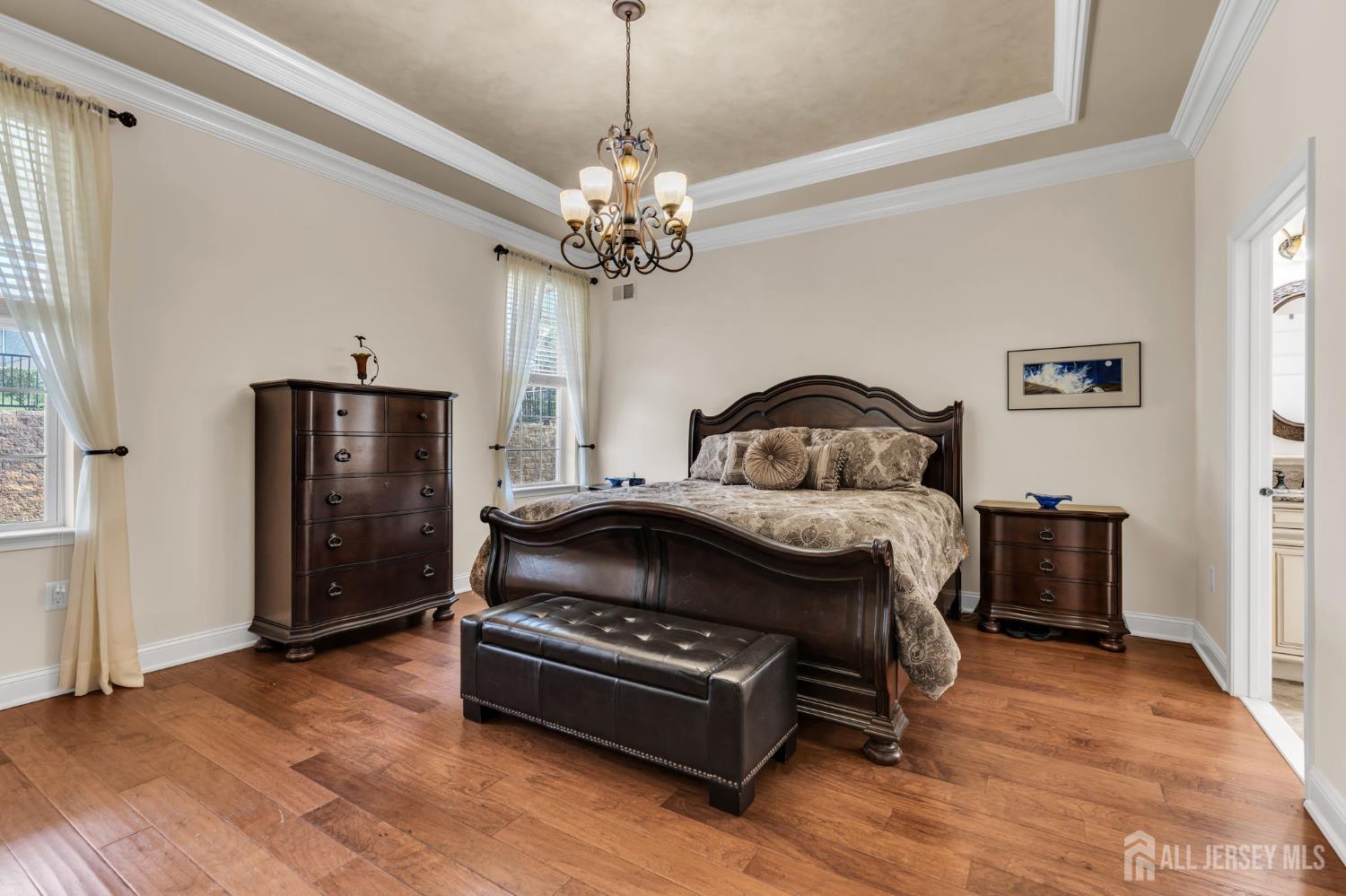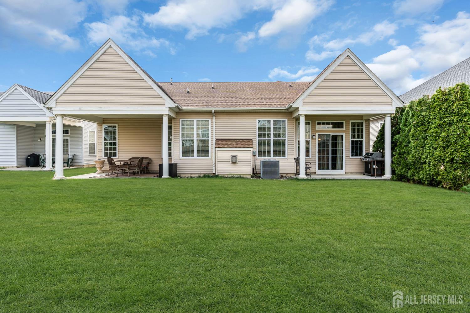 Regency @ Monroe's popular Bayhill model features elegant, custom trim work throughout, with its soaring coffered ceiling in the entry foyer, leaded glass front door, wood floors, full walk-up attic staircase, top-of-the-line center-island kitchen w/stainless steel range hood & appliances including wall-oven, large breakfast area w/slider to yard, great rm w/gas fireplace & french door to a covered patio, dining rm, library/den/opt'l 3rd bdrm, master bdrm w/walk-in closet. master bath w/tub & stall shower. Spacious attic storage above garage. Regency is central jersey's premier active adult community w/9-hole executive golf course, newly renovated clubhouse, indoor & outdoor pools, grill, spa/salon & so much more!
