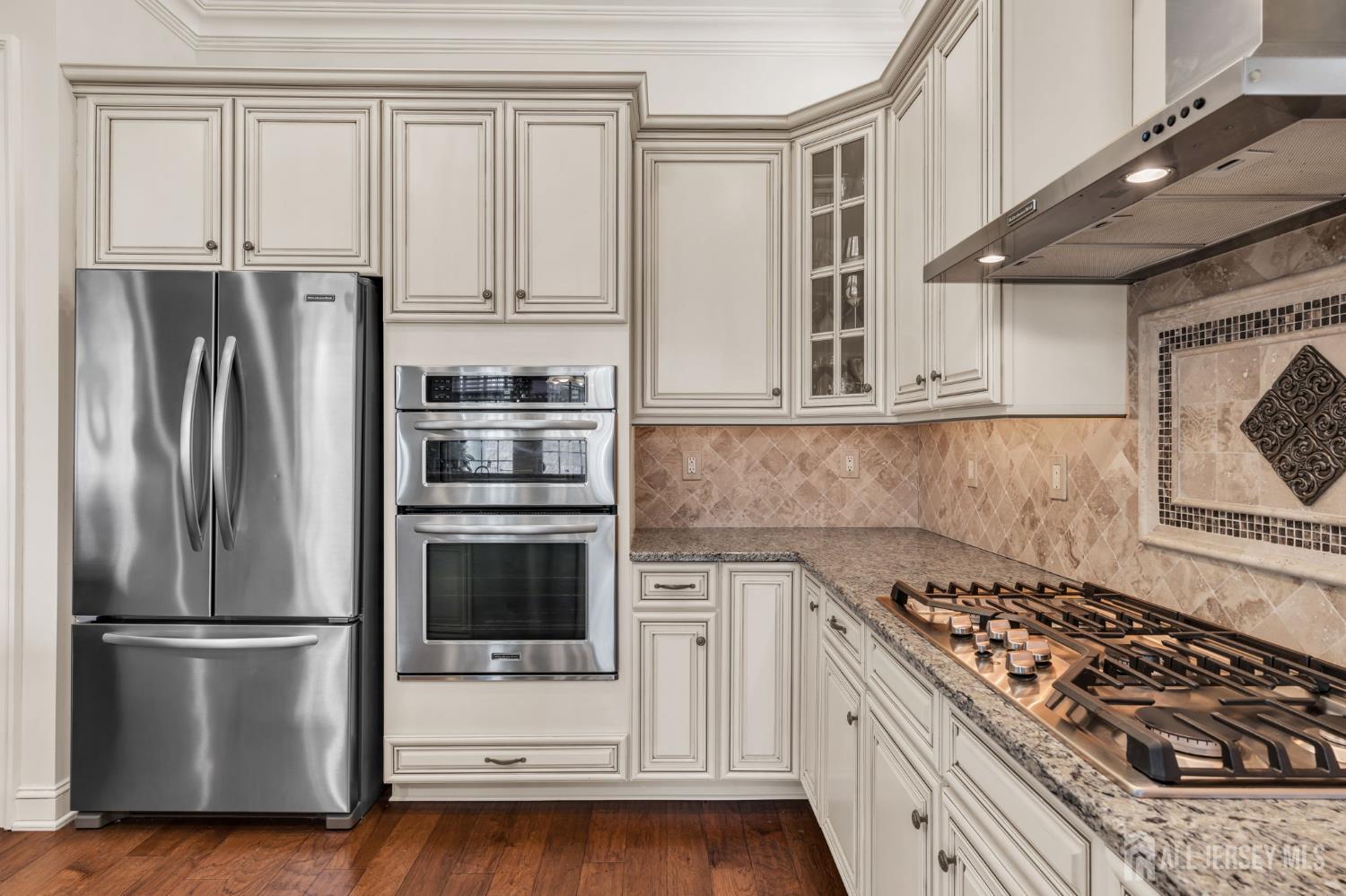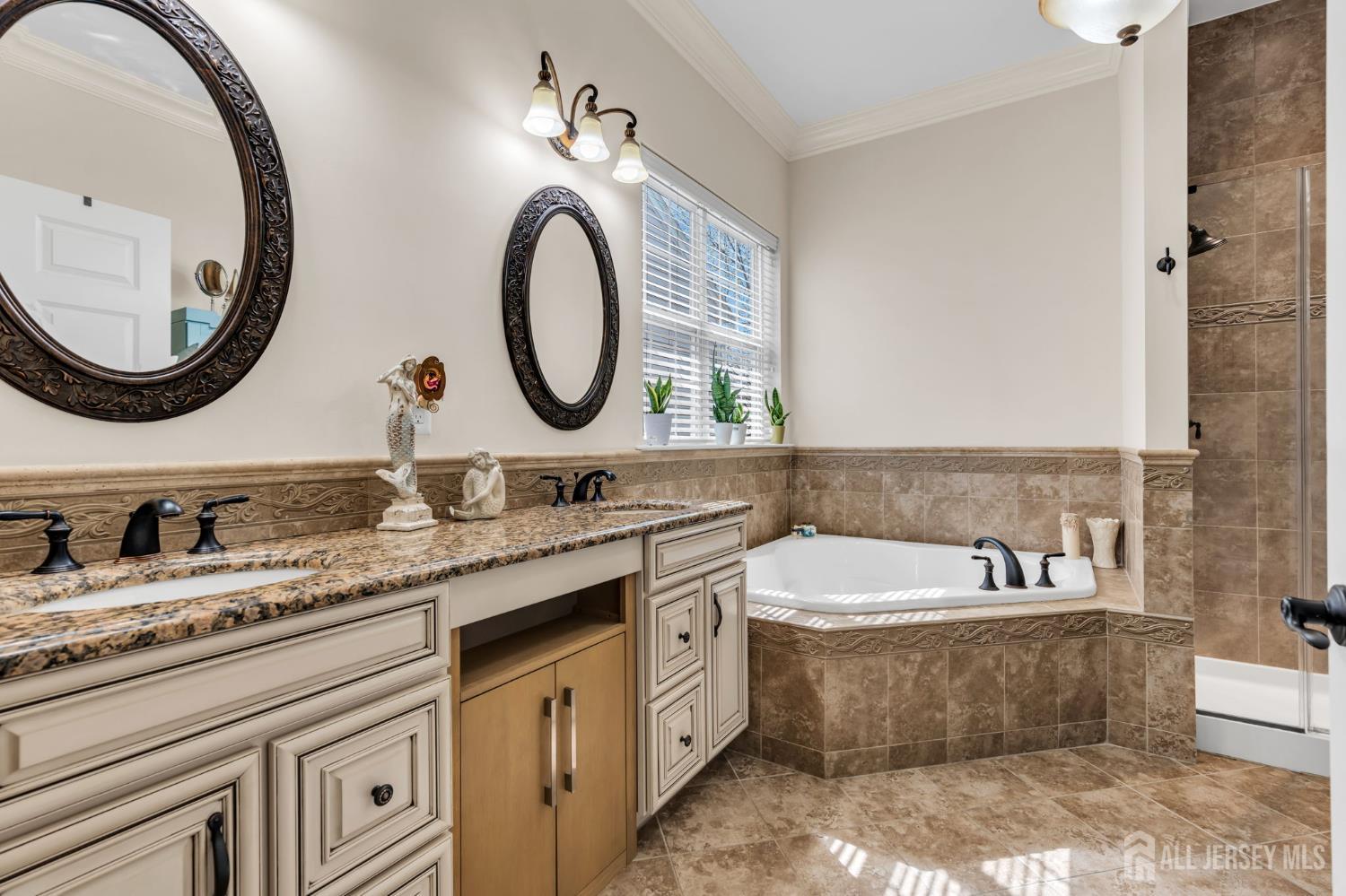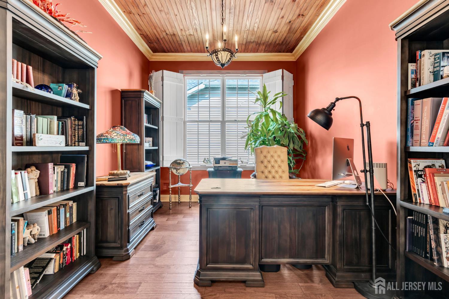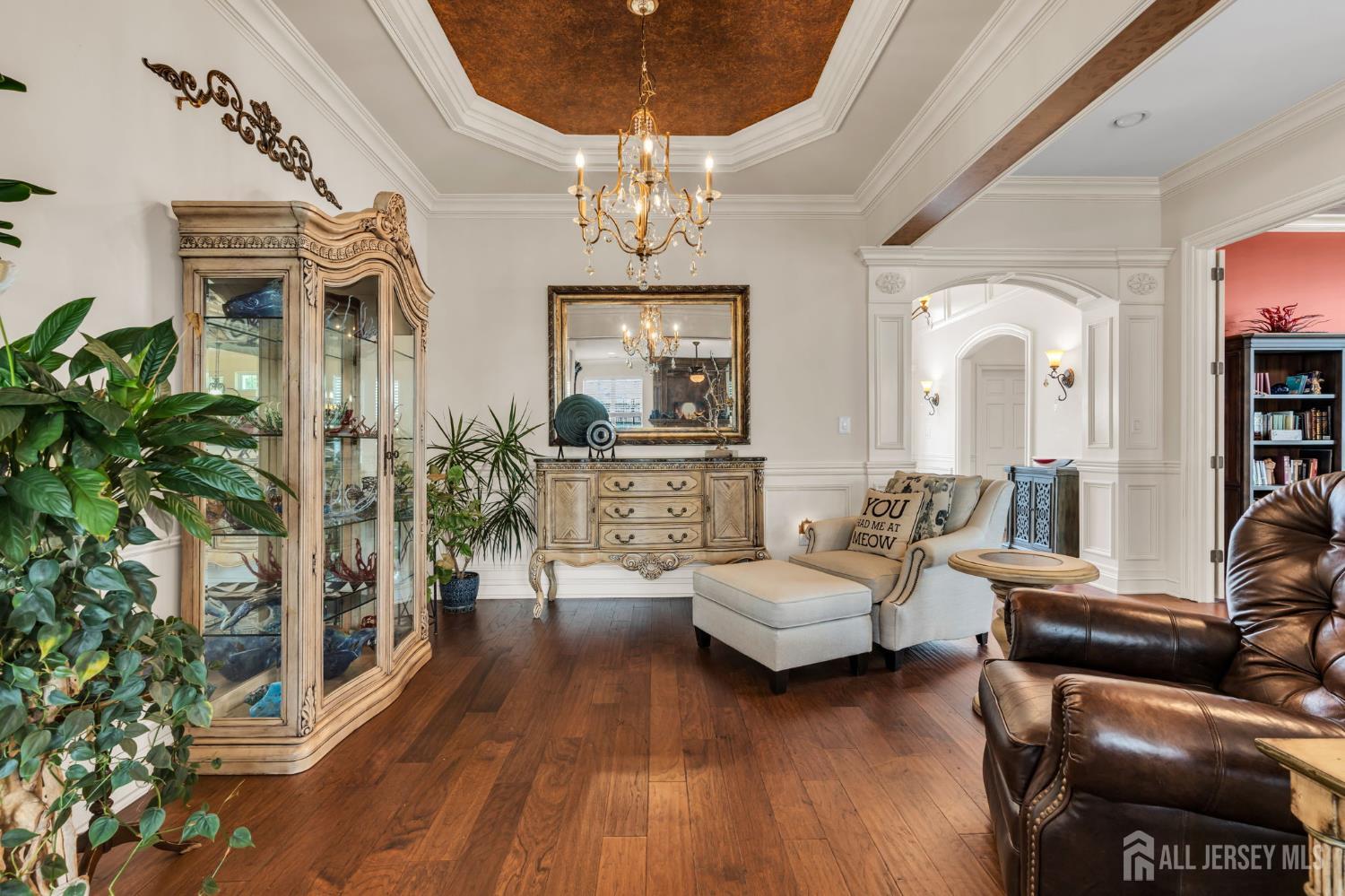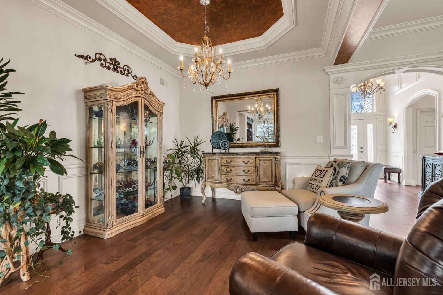 Regency @ Monroe's popular Bayhill model features elegant, custom trim work throughout, with its soaring coffered ceiling in the entry foyer, leaded glass front door, wood floors, full walk-up attic staircase, top-of-the-line center-island kitchen w/stainless steel range hood & appliances including wall-oven, large breakfast area w/slider to yard, great rm w/gas fireplace & french door to a covered patio, dining rm, library/den/opt'l 3rd bdrm, master bdrm w/walk-in closet. master bath w/tub & stall shower. Spacious attic storage above garage. Regency is central jersey's premier active adult community w/9-hole executive golf course, newly renovated clubhouse, indoor & outdoor pools, grill, spa/salon & so much more!