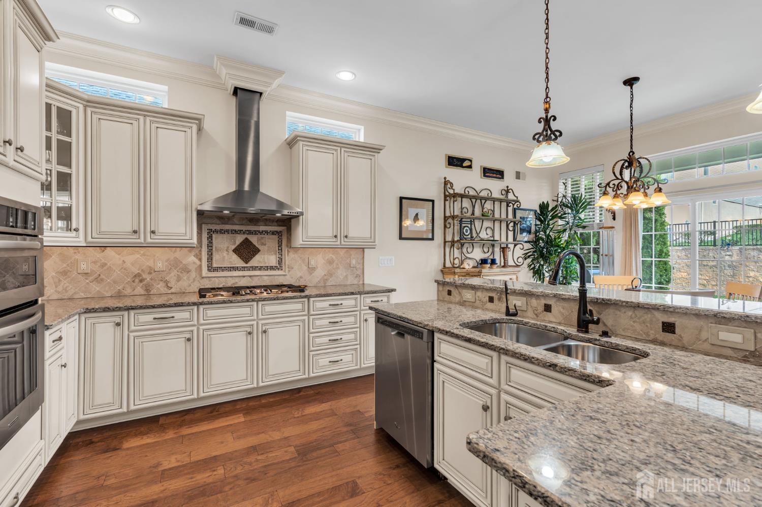 Kitchen Features: Granite/Corian Countertops, Breakfast Bar, Kitchen Exhaust Fan, Kitchen Island, Pantry, Separate Dining Area