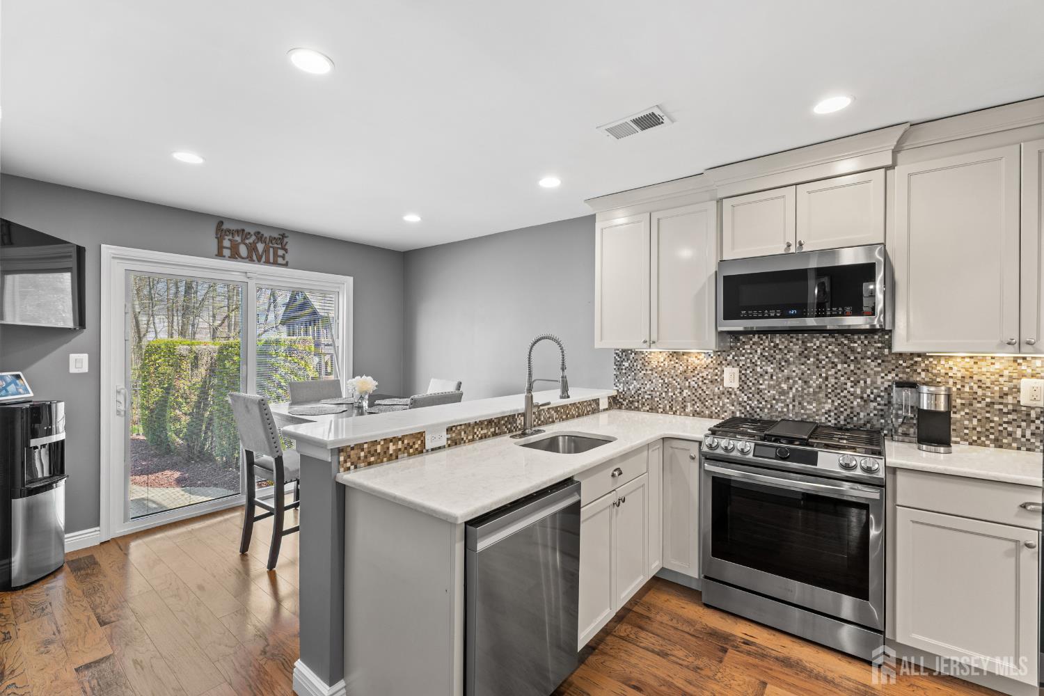 This is the home you've been waiting for all winter. Nestled in the highly sought-after Cedar Ridge community of Old Bridge, this beautifully updated 3-bedroom, 2.5-bath residence offers the perfect blend of comfort, style, and convenience. Step inside to find gleaming hardwood floors throughout the entire first level, setting the tone for the warm and inviting layout. The updated eat-in kitchen is designed to impress, featuring quartz countertops, a modern backsplash, recessed lighting, and a full suite of appliances just two years young. A double pantry enhances the already spacious and thoughtfully designed layout, making everyday living and entertaining a breeze. The heart of the home is the welcoming family room, complete with a cozy wood-burning fireplace, custom built-in cabinetry, and a sleek quartz topperfect for relaxing or gathering with guests. Upstairs, the primary bill payer'' suite offers a true private retreat with a fully updated en-suite bathroom, including dual sinks, a soaking tub, and a separate shower with frameless glass doors. The hallway bathroom has also been tastefully renovated, ensuring a move-in ready experience throughout. The fully finished basement expands your living space even further, offering a dedicated gym area and six storage closetsproviding exceptional versatility and no shortage of storage. Step outside to your own private oasis. The fully fenced backyard backs to a peaceful common area and is lined with privacy trees, creating a serene setting. The heated in-ground pool takes center stage, allowing for extended enjoyment from early spring through crisp fall eveningsperfect for entertaining or unwinding in your own resort-like escape. Additional highlights include a whole house generator for added peace of mind. Ideally located for commuters, this home offers easy access to the Garden State Parkway and Route 9, with convenient options for bus or train service into NYC. A rare opportunity to own a truly turnkey home in an unbeatable locationthis one is not to be missed.