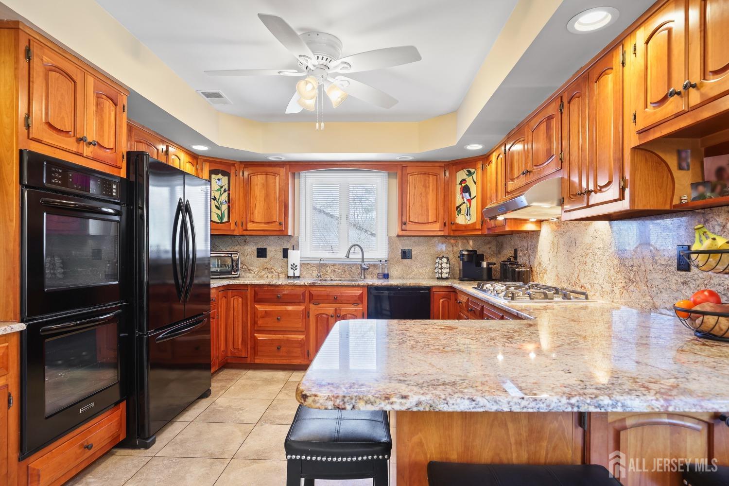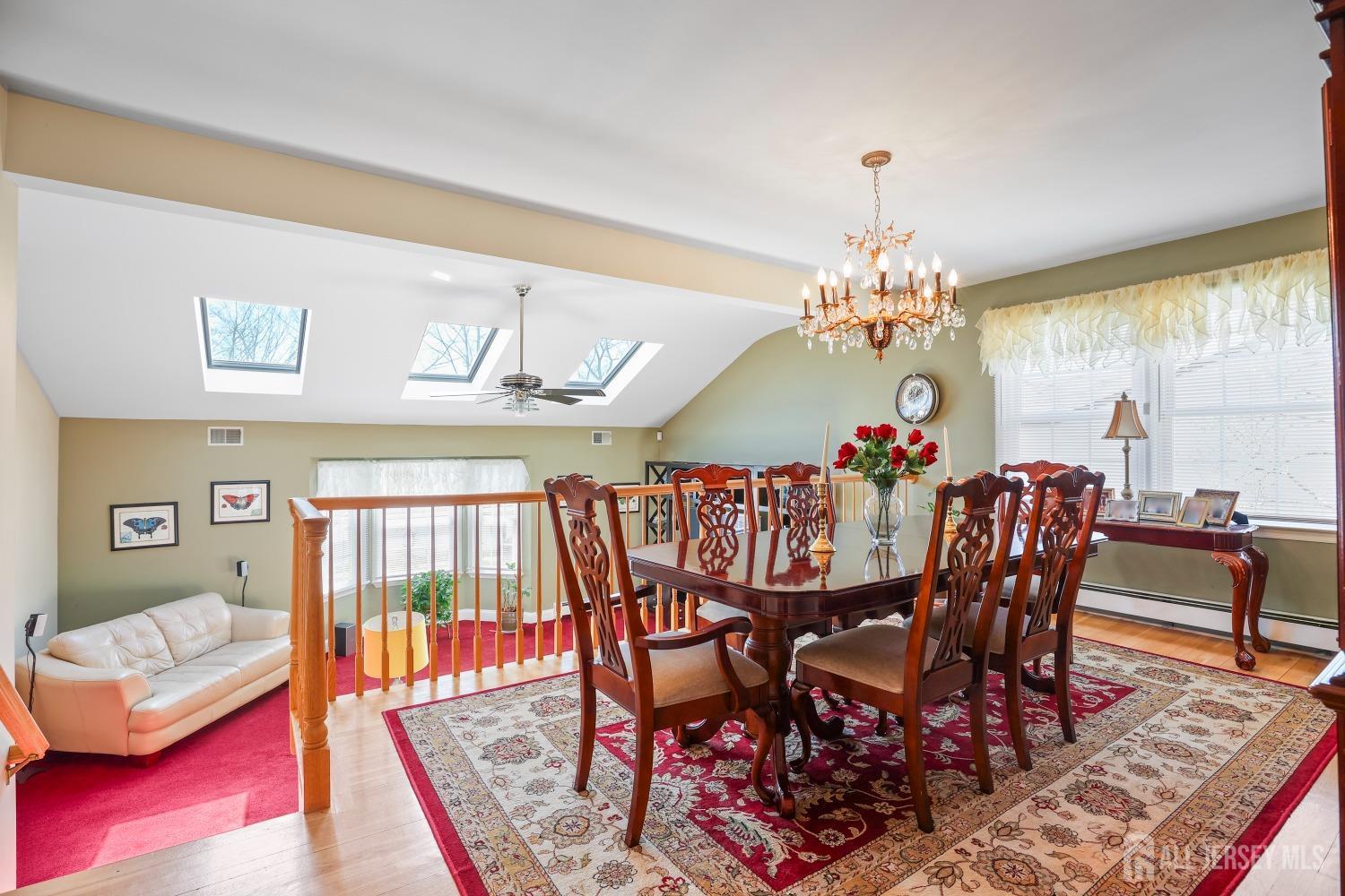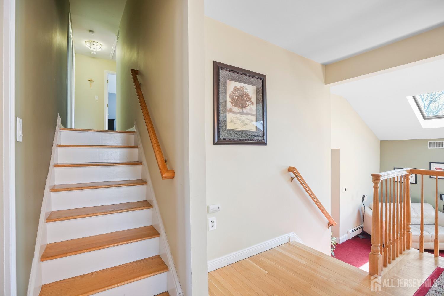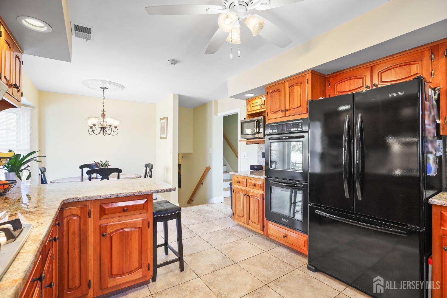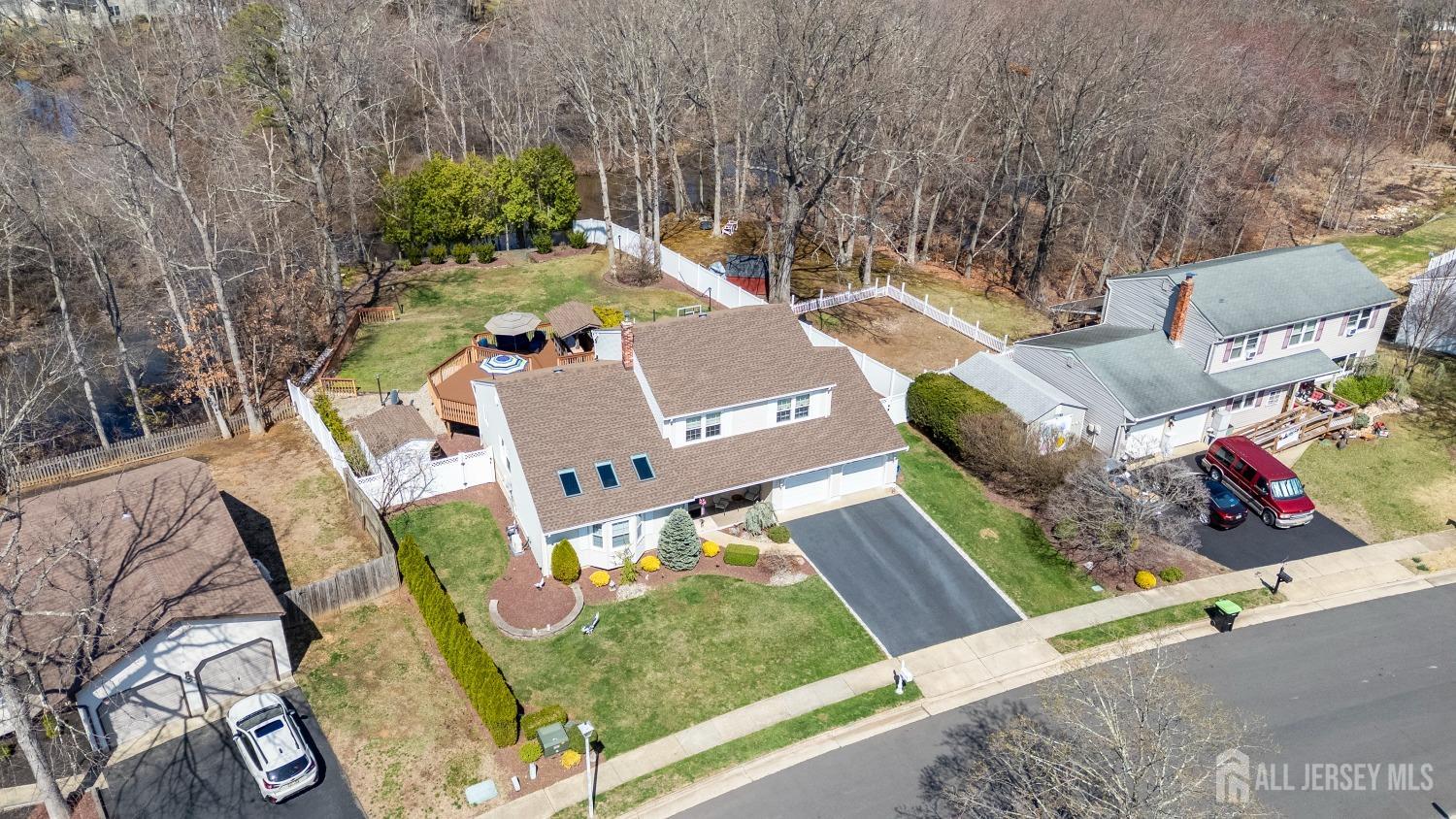Amazing home in a lovely neighborhood. Over 2300 sq ft split level home with the stream behind your home that goes into Lake Devoe! Leaded glass front door along with tile flooring in the foyer. Formal living room featuring three skylights and a vaulted ceiling open to the dining room. EIK, wood cabinets/ two with stained glass door fronts, three corner carousels, tray ceiling, double wall oven, 5 burner gas cooktop, Granite countertops and backsplash. Breakfast bar, chandelier with medallion, bump out windows and a door to the multi-level Trex deck. Upstairs you will find three bedrooms. Primary with its own brand-new full bath highlighting the tile flooring/ shower surround and stone top vanity. Main hall full bathroom has a skylight, jetted tub and a spacious vanity. Closets galore including a linen in the hallway as well. Most with organizers. Great room boasts complete home theatre set up including the projector, a 120-inch TV screen, speakers and seating. Wet bar, cabinetry and sliding glass doors to the yard. Fourth bedroom, a half bath and laundry room also on the lower level. Partially finished basement, built-ins, closets, shelving and the mini split heating/AC unit makes this another perfect place for so many uses. Also has access to the crawl space. Ceiling fans with lights, recessed lighting and dimmer switches are found in most rooms of this home. Attached two car garage. Two car wide asphalt driveway with Belgium block curb. Fully landscaped. And now for the gorgeous back yard... Trex deck, upper level is appx 27 X 19, lower level 20 X 18 and has a built-in bar, lights and tile top. Concrete patio, 31 X 20, with a basketball hoop. 12 X 8 shed. Stone firepit area. Several light posts. Fully fenced in yard. Access to the stream, perfect for a canoe or kayak. This property sits high, no flood insurance required. And not in a flood zone. Enjoy the views...