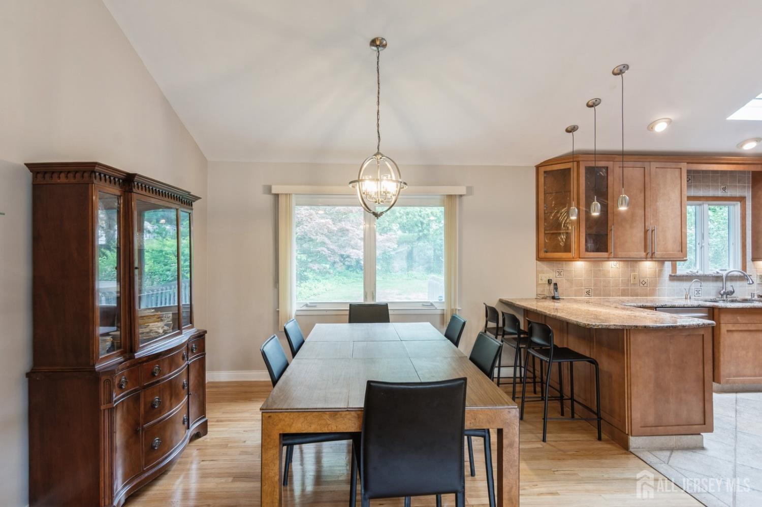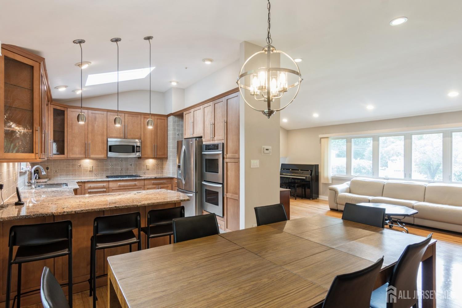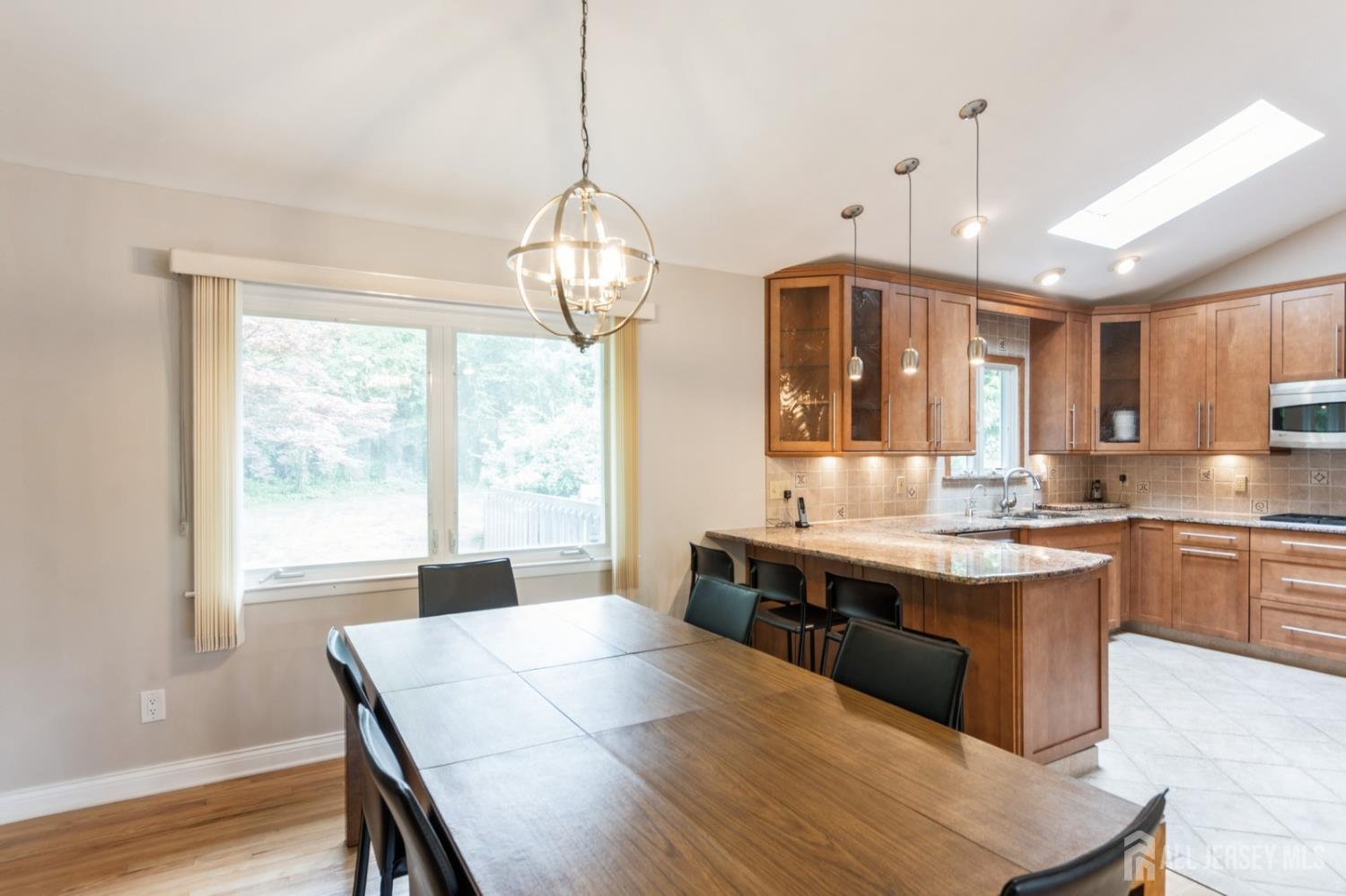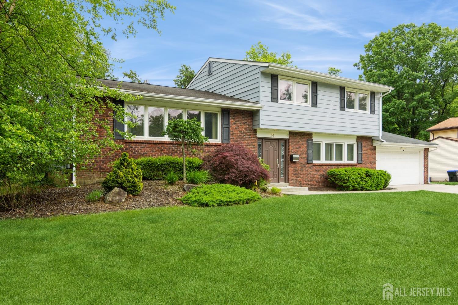 This lovely renovated home has a great location in the highly desirable Lawrence Brook neighborhood. This split-style home with a neutral color palette has 3 levels, and offers many desirable features. On the first level is a foyer with ceramic tiled floor, family room, which has laminated wood-like flooring. In the rear of the first level is a bedroom and a full bathroom with custom stall shower. There is also access to a patio and the backyard from this level. Up a short flight of stairs from the foyer, one will find a spacious sun-lit living room with hardwood flooring, bay window, and vaulted ceiling. It flows into the adjacent dining room. To the right of the dining room is the beautifully remodeled eat-in kitchen featuring a vaulted ceiling, tiled flooring, maple cabinets with under-mount lighting, tiled back splash, granite counters, stainless-steel appliances, double wall-ovens, and peninsula with breakfast bar. On the uppermost level, one will find the three bedrooms with hardwood flooring. The primary bedroom has a walk-in closet and en suite bathroom. The two additional bedrooms have use of the renovated main bathroom. The home also has a partial basement with laundry and utility room, two-car garage, and a deck. The home is just minutes away from restaurants, and shops and East Brunswick award winning schools- this home has it all! Close to major highways, bus, and traingreat for commuting to NYC!