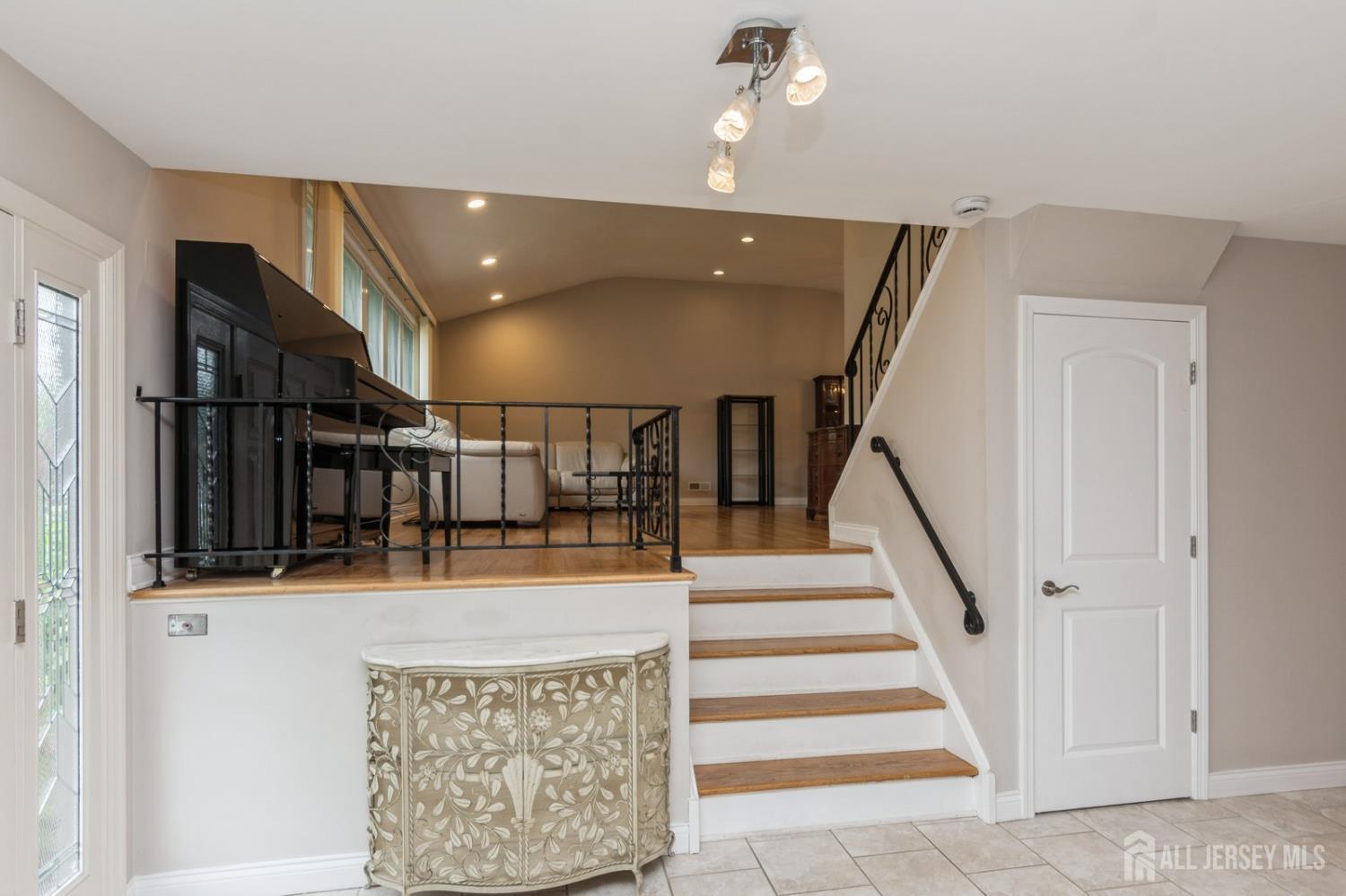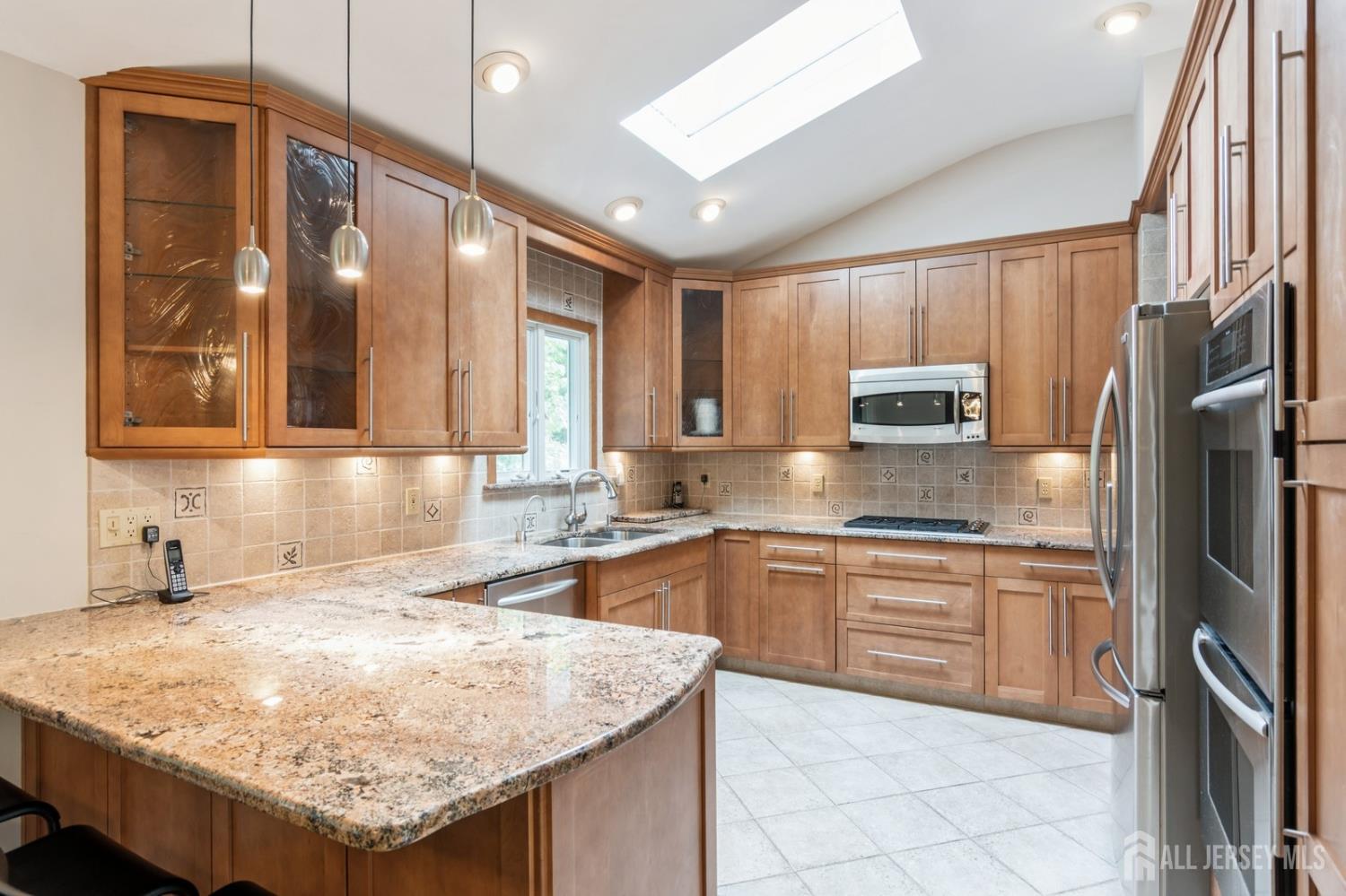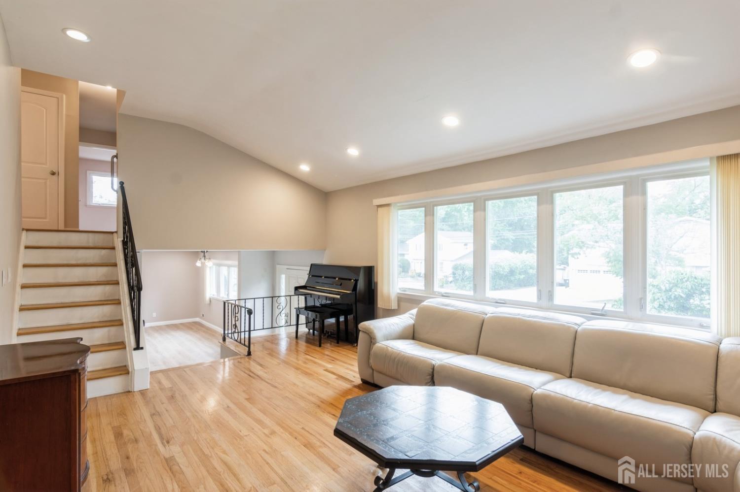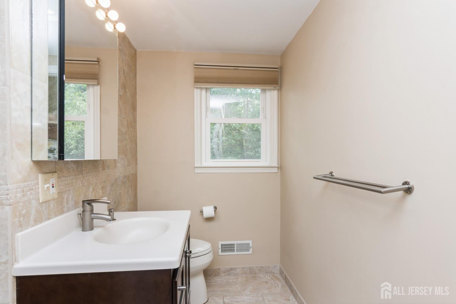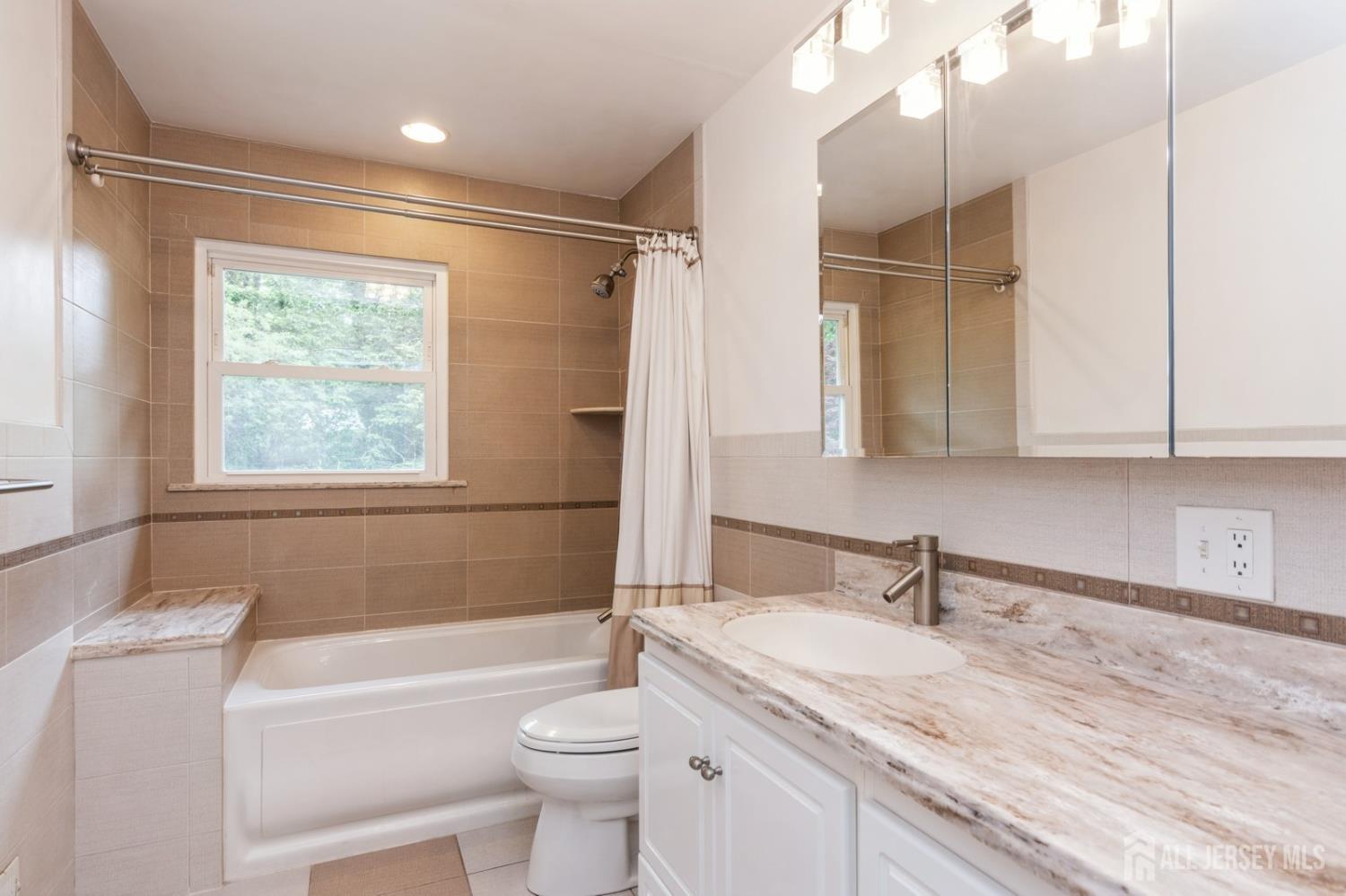 This lovely renovated home has a great location in the highly desirable Lawrence Brook neighborhood. This split-style home with a neutral color palette has 3 levels, and offers many desirable features. On the first level is a foyer with ceramic tiled floor, family room, which has laminated wood-like flooring. In the rear of the first level is a bedroom and a full bathroom with custom stall shower. There is also access to a patio and the backyard from this level. Up a short flight of stairs from the foyer, one will find a spacious sun-lit living room with hardwood flooring, bay window, and vaulted ceiling. It flows into the adjacent dining room. To the right of the dining room is the beautifully remodeled eat-in kitchen featuring a vaulted ceiling, tiled flooring, maple cabinets with under-mount lighting, tiled back splash, granite counters, stainless-steel appliances, double wall-ovens, and peninsula with breakfast bar. On the uppermost level, one will find the three bedrooms with hardwood flooring. The primary bedroom has a walk-in closet and en suite bathroom. The two additional bedrooms have use of the renovated main bathroom. The home also has a partial basement with laundry and utility room, two-car garage, and a deck. The home is just minutes away from restaurants, and shops and East Brunswick award winning schools- this home has it all! Close to major highways, bus, and traingreat for commuting to NYC!