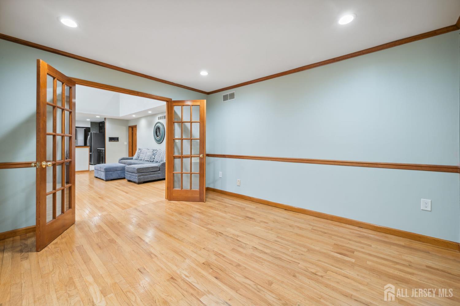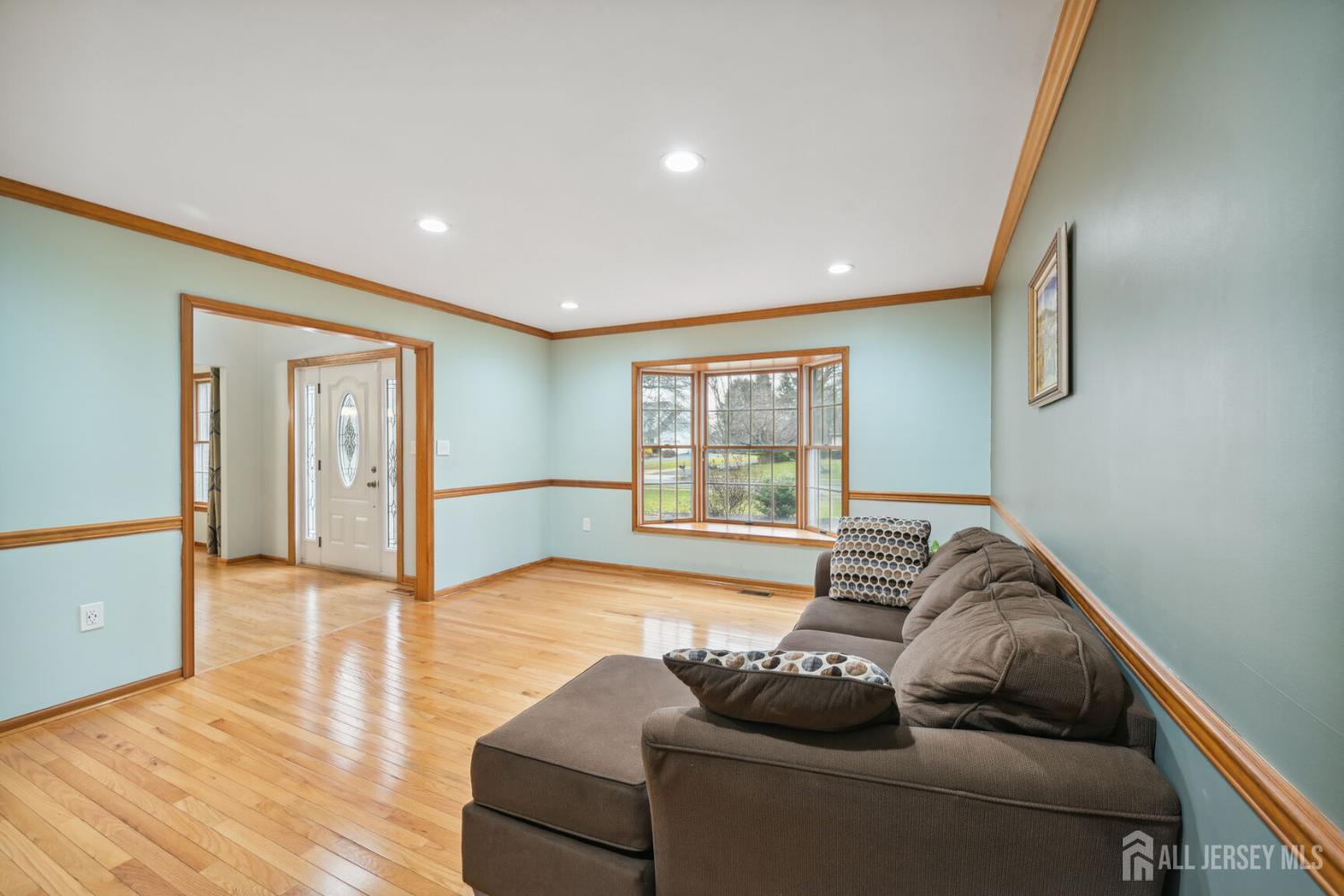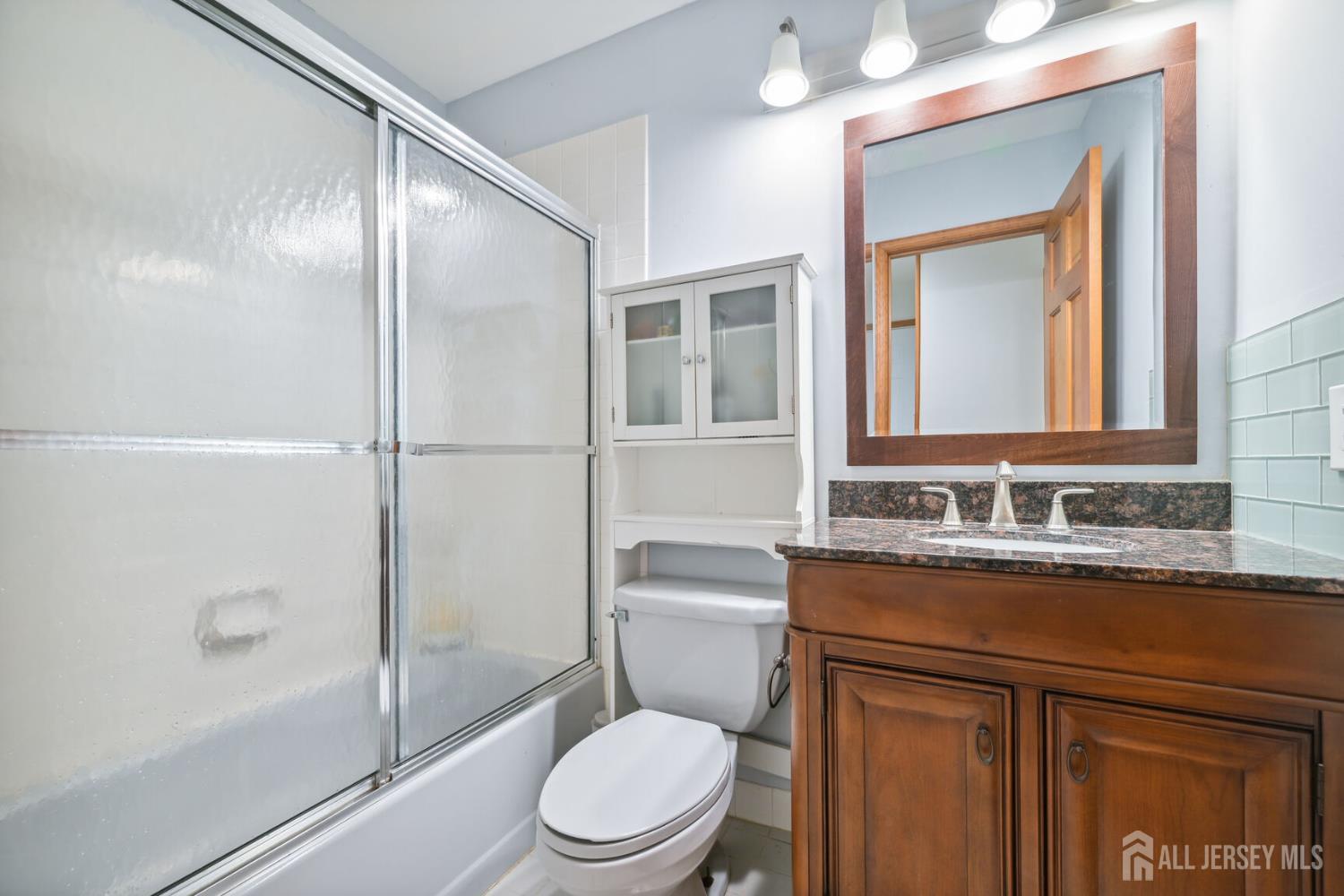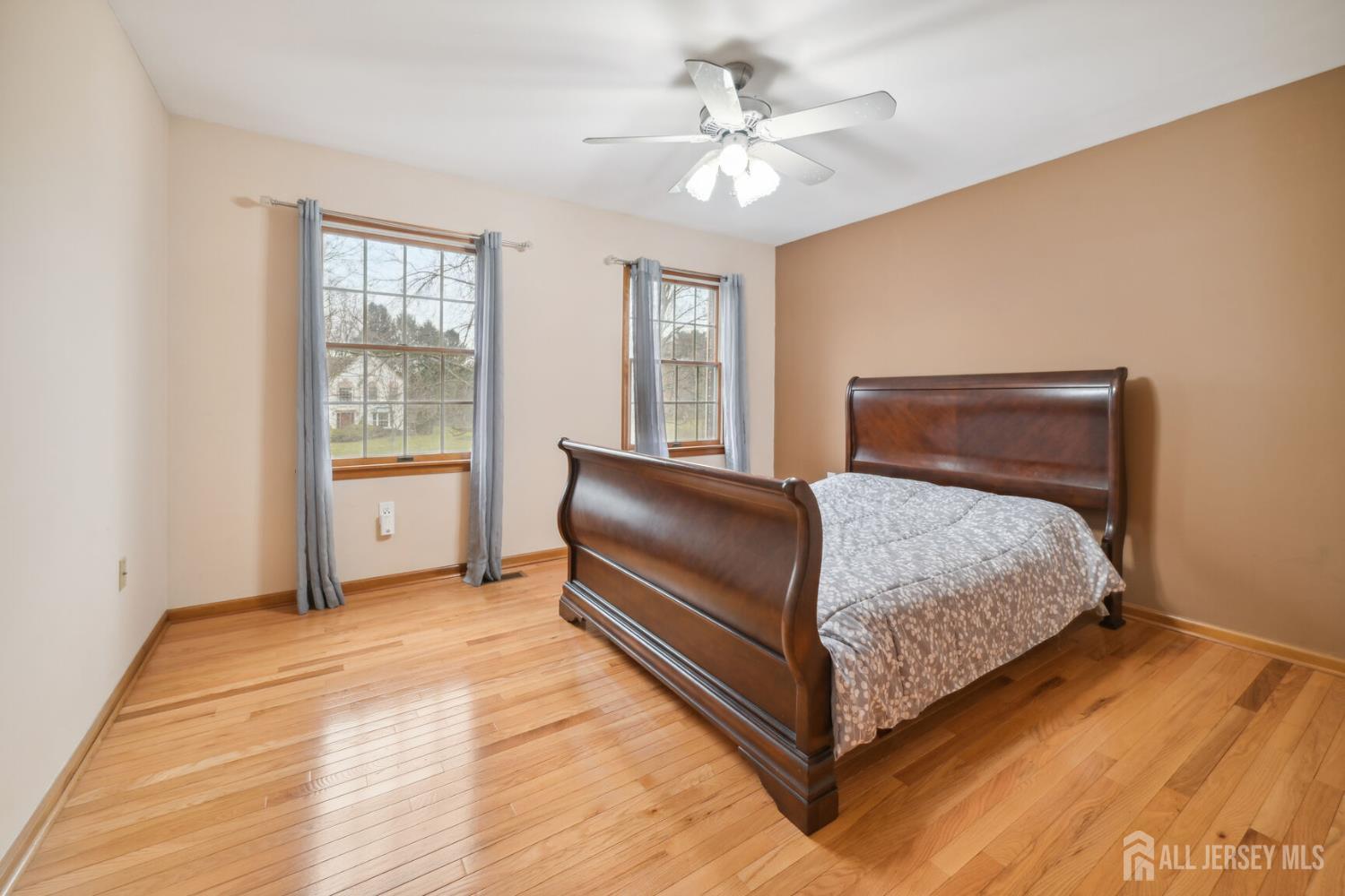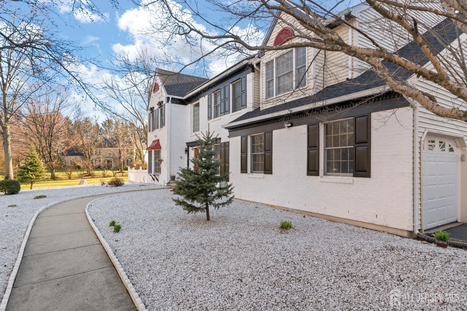 Sophistication and ambiance come together masterfully in this home creating an unparalleled combination of visual excellence. This Beautiful 5-bedroom, 3.5-bath brick-front Colonial is nestled on a private cul-de-sac of just 16 custom homes in the highly desirable West Windsor-Plainsboro School District. The gourmet kitchen features upgraded cabinetry, granite countertops, a tiled backsplash, stainless steel appliances, wine fridge, and ceramic tile flooring. The adjacent breakfast area includes custom built-in seating, recessed lighting, and beautiful views of the private, tree-lined backyard. A dramatic two-story foyer with hardwood floors welcomes you and opens to a formal living room with a bay window and a dining room with chair rail and crown molding. The expansive family room features vaulted ceilings, two skylights, hardwood floors, and a brick fireplace, creating a bright and inviting space perfect for relaxing or entertaining. The first-floor office with recessed lighting and French doors leading to the family room is ideal for a work-from-home setup. Nearby, the laundry room leads to a private first-floor bedroom with a full bathroom and separate entrance, perfect for guests, extended family. Upstairs, you will find four generously sized bedrooms with hardwood flooring and ceiling fans. The hallway bathroom was tastefully updated in 2021 with a double quartz vanity and shower/tub combination. The expansive primary suite offers hardwood flooring, a sitting area, and a large big closet with custom built-in shelving. The updated primary bath features quartz counters, a shower, and a Jacuzzi tub overlooking the serene backyard. The fully finished basement provides an exercise area, recreation space, ample storage, and convenient outdoor access through concrete stairs and Bilco doors. Step outside to enjoy the newly built large patio, perfect for outdoor entertaining, relaxing, and enjoying the peaceful backyard setting. Additional highlights include a new solar panel system for energy efficiency, central vacuum, new gutters (2022), A/C (2020), furnace (2020), and water heater (2019).