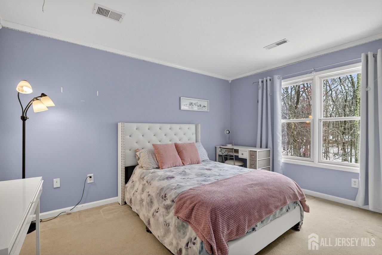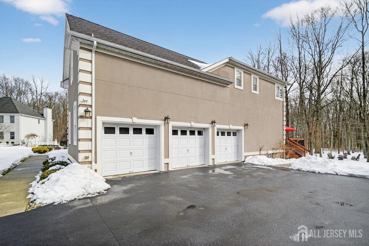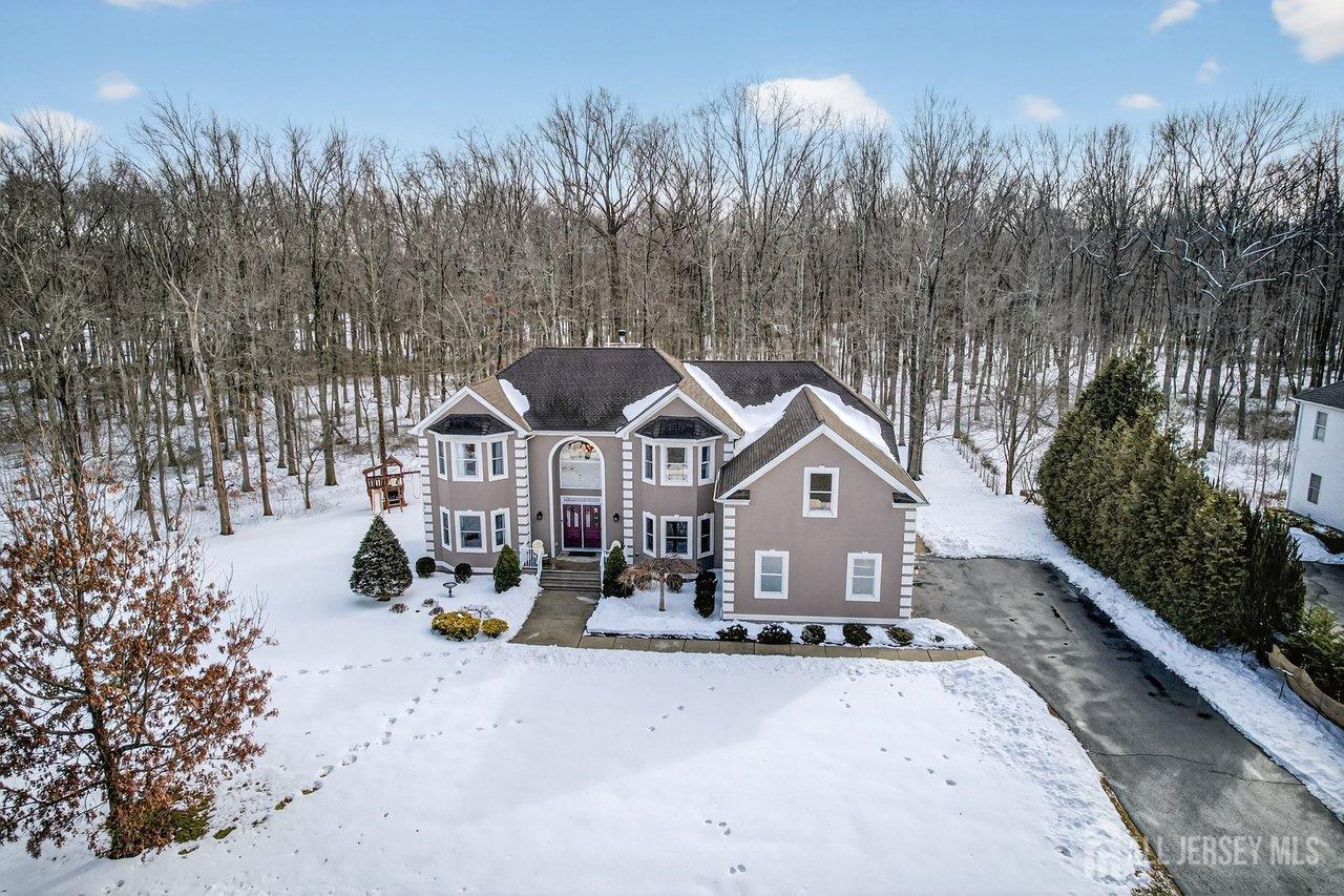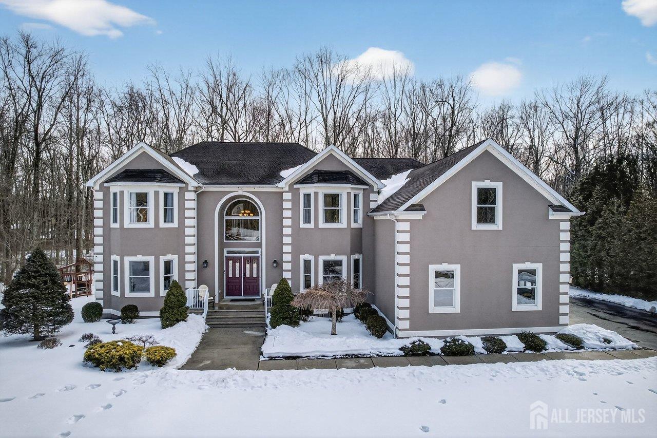*Multiple offers - highest and best by Friday 2/27* Welcome to this impressive center hall Colonial tucked away on a quiet cul-de-sac and backing to serene, wooded views offering space, privacy, and timeless elegance. Step through the double-door entry into a dramatic two-story foyer that sets the tone for the home's open and airy layout. The main level features a formal living room and dining room, along with a flexible 5th bedroom or private office enhanced by French doors for both functionality and style. The large gourmet kitchen, complete with a butler's pantry, flows seamlessly into the stunning two-story great room, creating the perfect setting for everyday living and entertaining. A rear deck overlooks peaceful woods, ideal for relaxing mornings or evening gatherings. Upstairs, the luxurious primary suite offers a tray ceiling, recessed lighting, two large closets, and a spa-like bath featuring a whirlpool tub, stall shower, and separate toilet area. Additional generously sized bedrooms and well-appointed baths provide comfort for family and guests alike. The full finished basement provides exceptional additional living space - perfect for a media room, gym, playroom, or entertaining area. Additional highlights include a 3-car garage, stucco exterior and a thoughtfully designed floor plan offering both openness and defined living spaces combining elegance, versatility, and privacy in a sought-after setting.