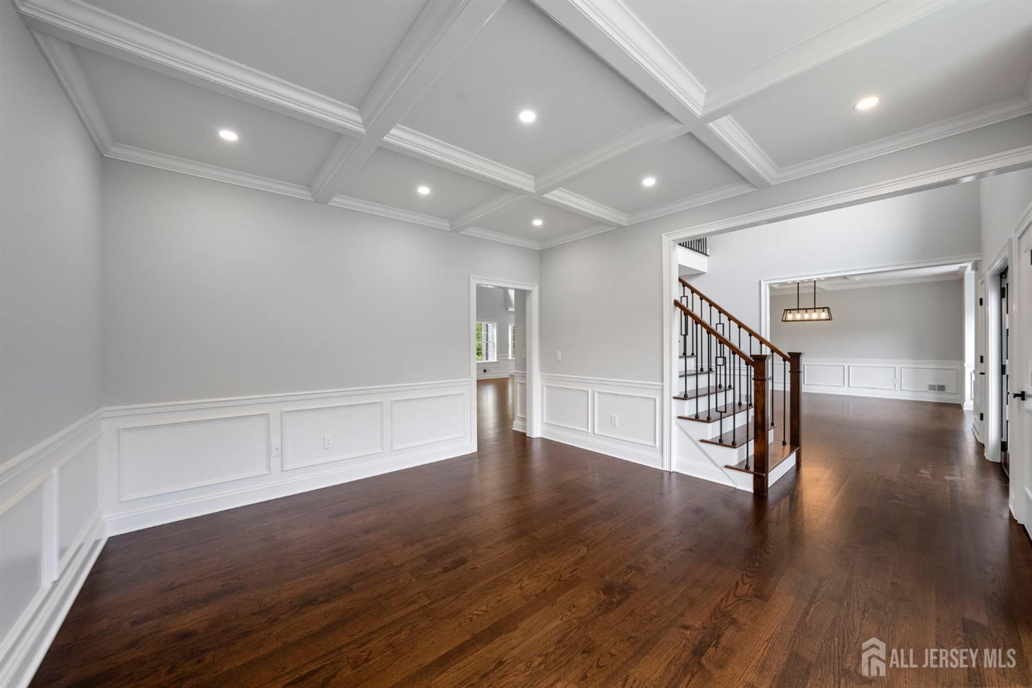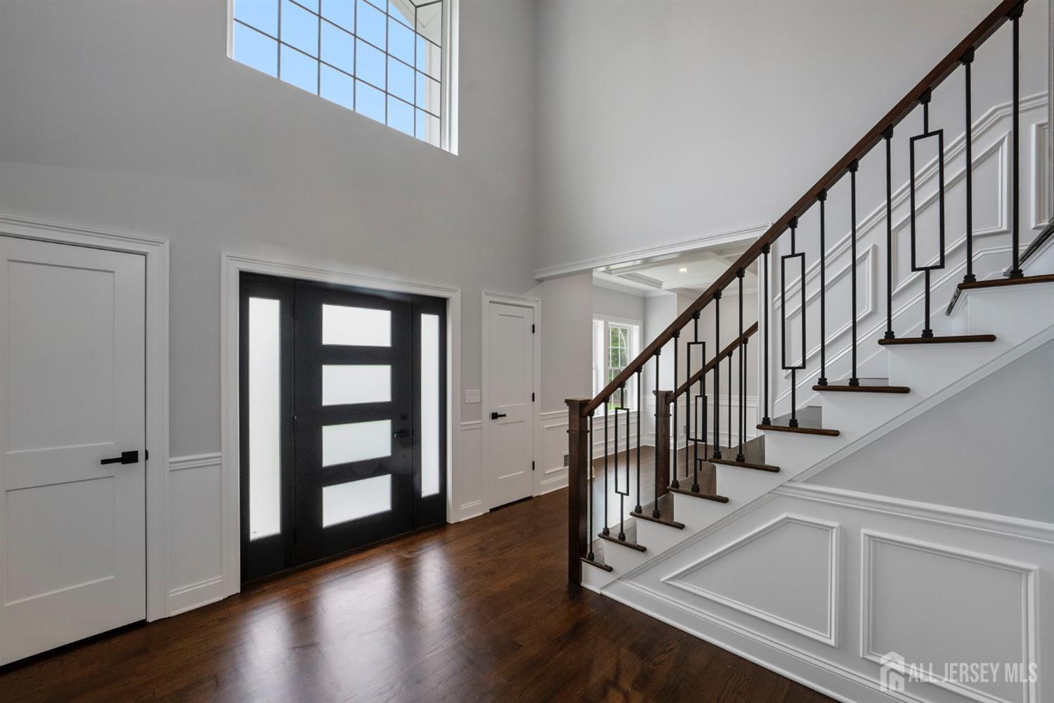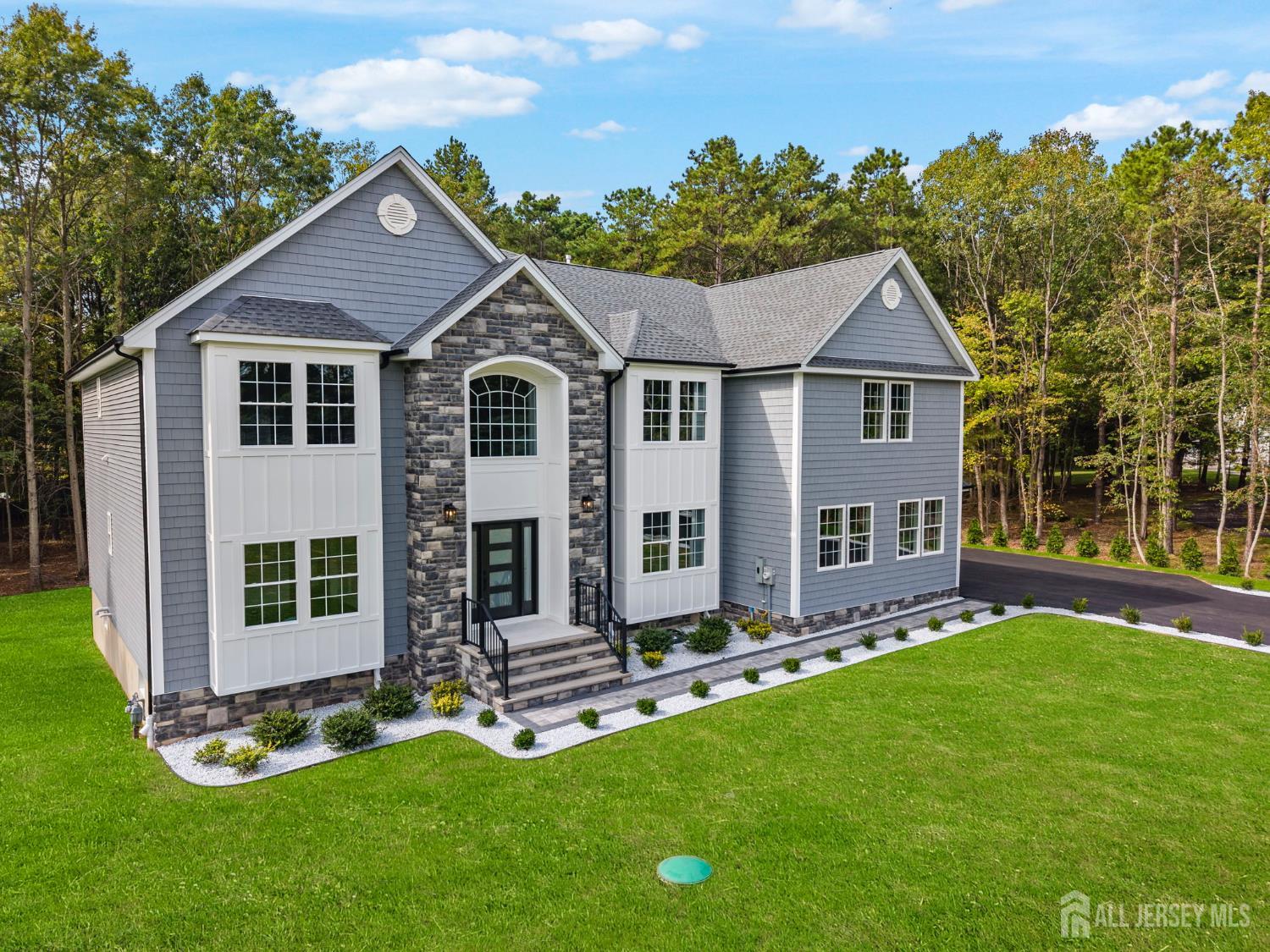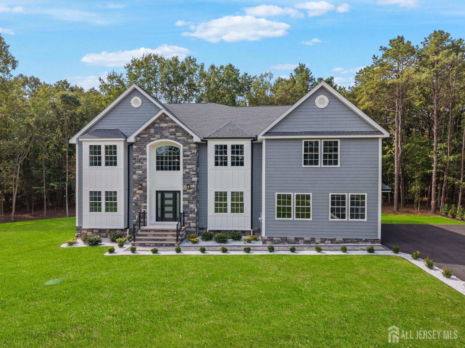 Introducing this magnificent 5 bedroom, 4.5 bathroom new construction home offering over 4,700 sq. ft. of luxury living space, perfectly situated on 2.3 acres in East Brunswick. Designed with exceptional attention to detail, the home is filled with fine touches, including tasteful wainscoting throughout and beautiful coffered ceilings in the formal living room that are sure to impress. The centerpiece of the home is the chef's kitchen, featuring waterfall countertops, a sprawling center island, hidden pantry, and premium cabinetry. The kitchen opens seamlessly into the expansive great room, creating the perfect open-concept space for entertaining and everyday living. Rich hardwood floors extend throughout, adding warmth and elegance to every level. Upstairs, discover four spacious bedrooms, highlighted by a luxurious primary suite with a private sitting area or potential office, a spa-like en suite bath, and generous closet space. A princess suite with its own private bath adds even more comfort and convenience. The second-floor laundry keeps daily routines simple, while the first-floor en suite bedroom provides flexibility for guests or multi-generational living. With brand-new construction, refined finishes, and a thoughtfully designed floor plan, this home is a rare opportunity to enjoy modern living at its finest.