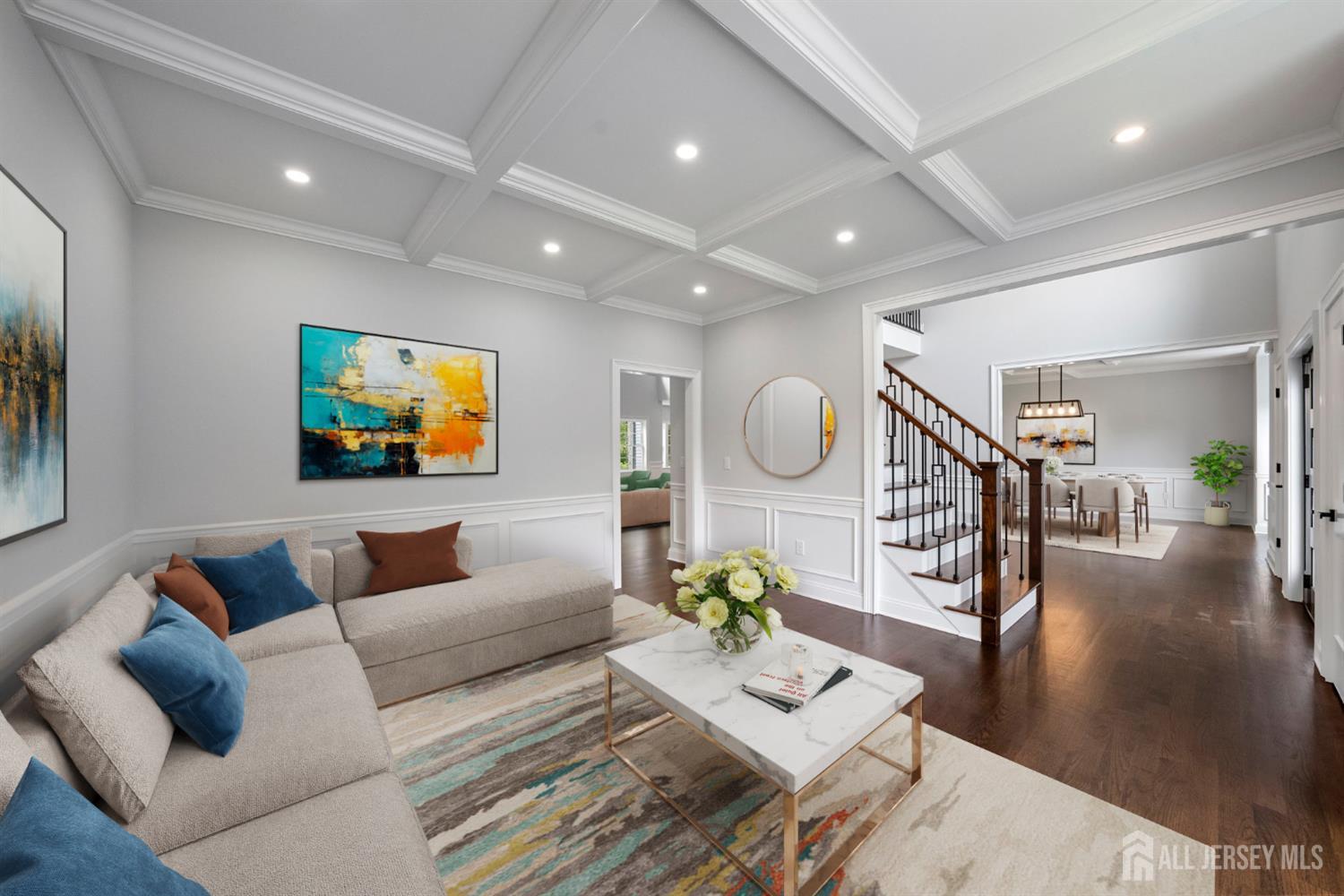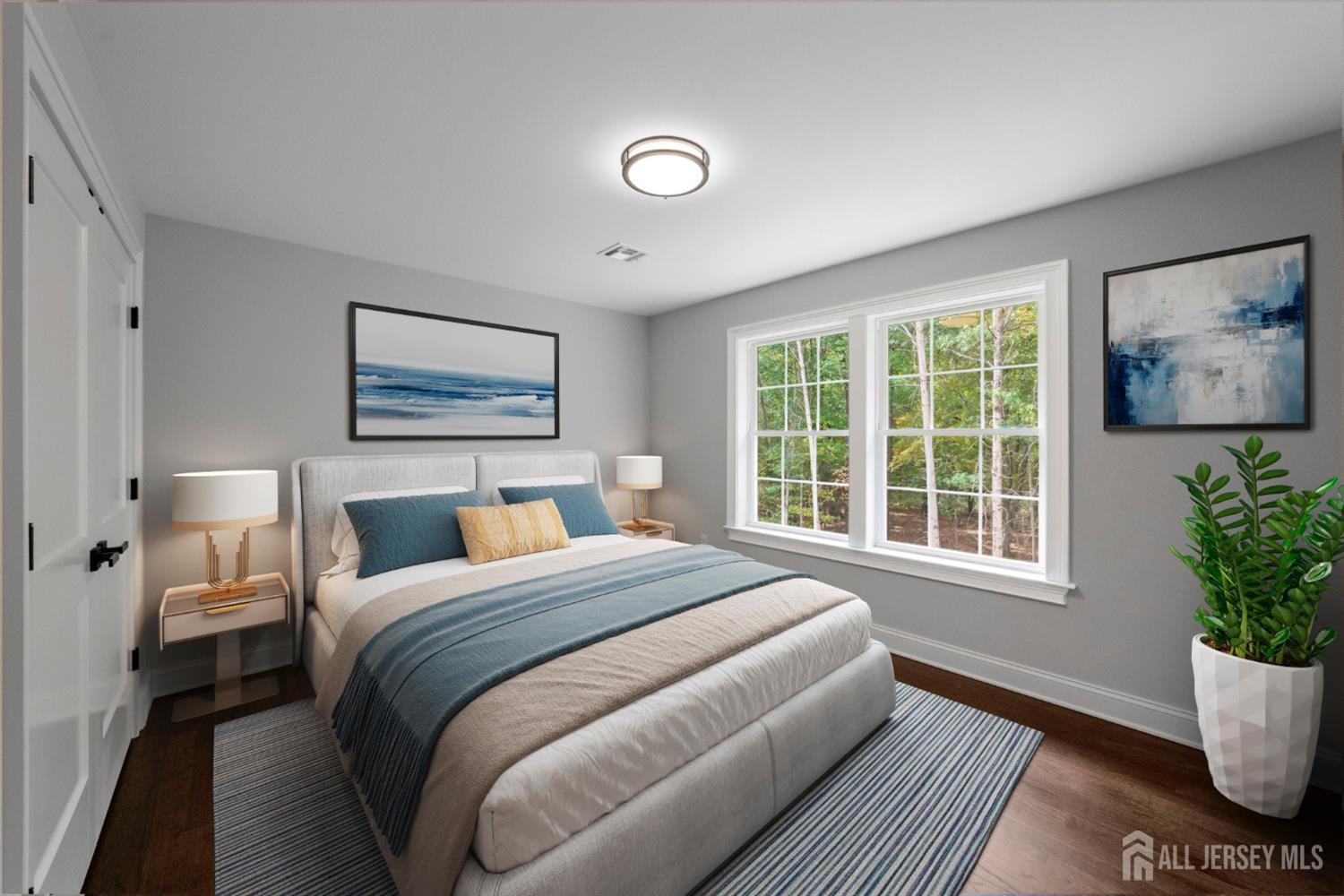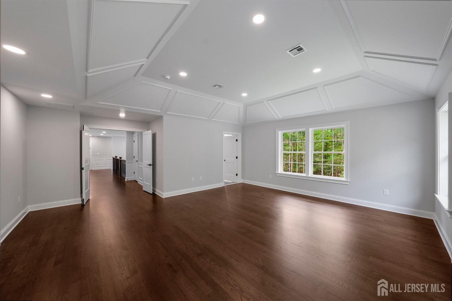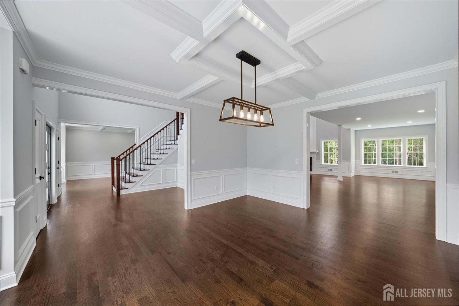 Introducing this magnificent 5 bedroom, 4.5 bathroom new construction home offering over 4,700 sq. ft. of luxury living space, perfectly situated on 2.3 acres in East Brunswick. Designed with exceptional attention to detail, the home is filled with fine touches, including tasteful wainscoting throughout and beautiful coffered ceilings in the formal living room that are sure to impress. The centerpiece of the home is the chef's kitchen, featuring waterfall countertops, a sprawling center island, hidden pantry, and premium cabinetry. The kitchen opens seamlessly into the expansive great room, creating the perfect open-concept space for entertaining and everyday living. Rich hardwood floors extend throughout, adding warmth and elegance to every level. Upstairs, discover four spacious bedrooms, highlighted by a luxurious primary suite with a private sitting area or potential office, a spa-like en suite bath, and generous closet space. A princess suite with its own private bath adds even more comfort and convenience. The second-floor laundry keeps daily routines simple, while the first-floor en suite bedroom provides flexibility for guests or multi-generational living. With brand-new construction, refined finishes, and a thoughtfully designed floor plan, this home is a rare opportunity to enjoy modern living at its finest.