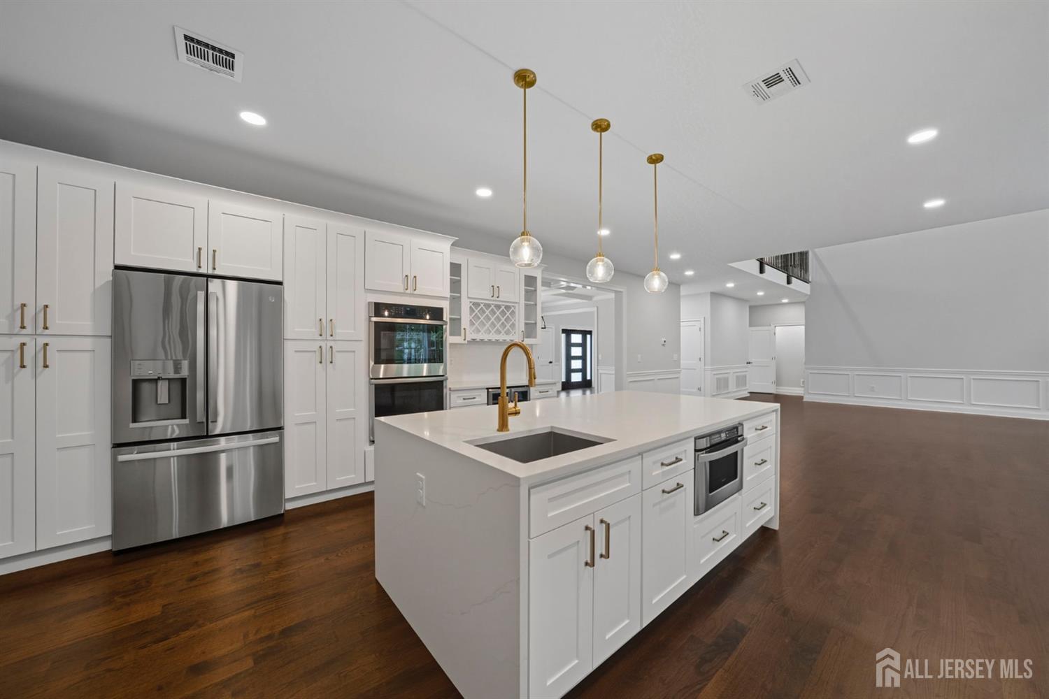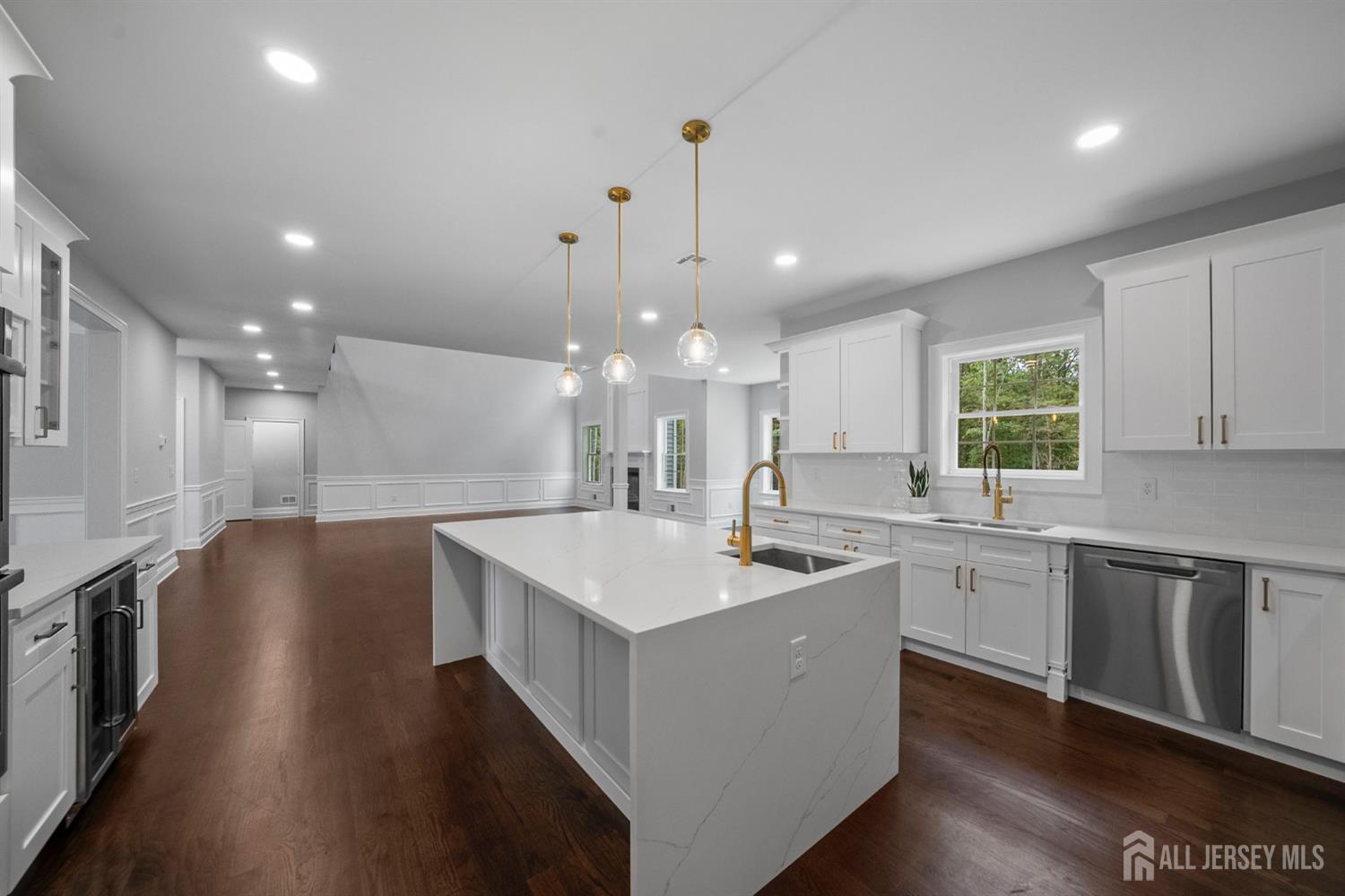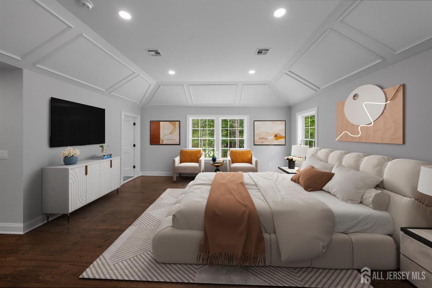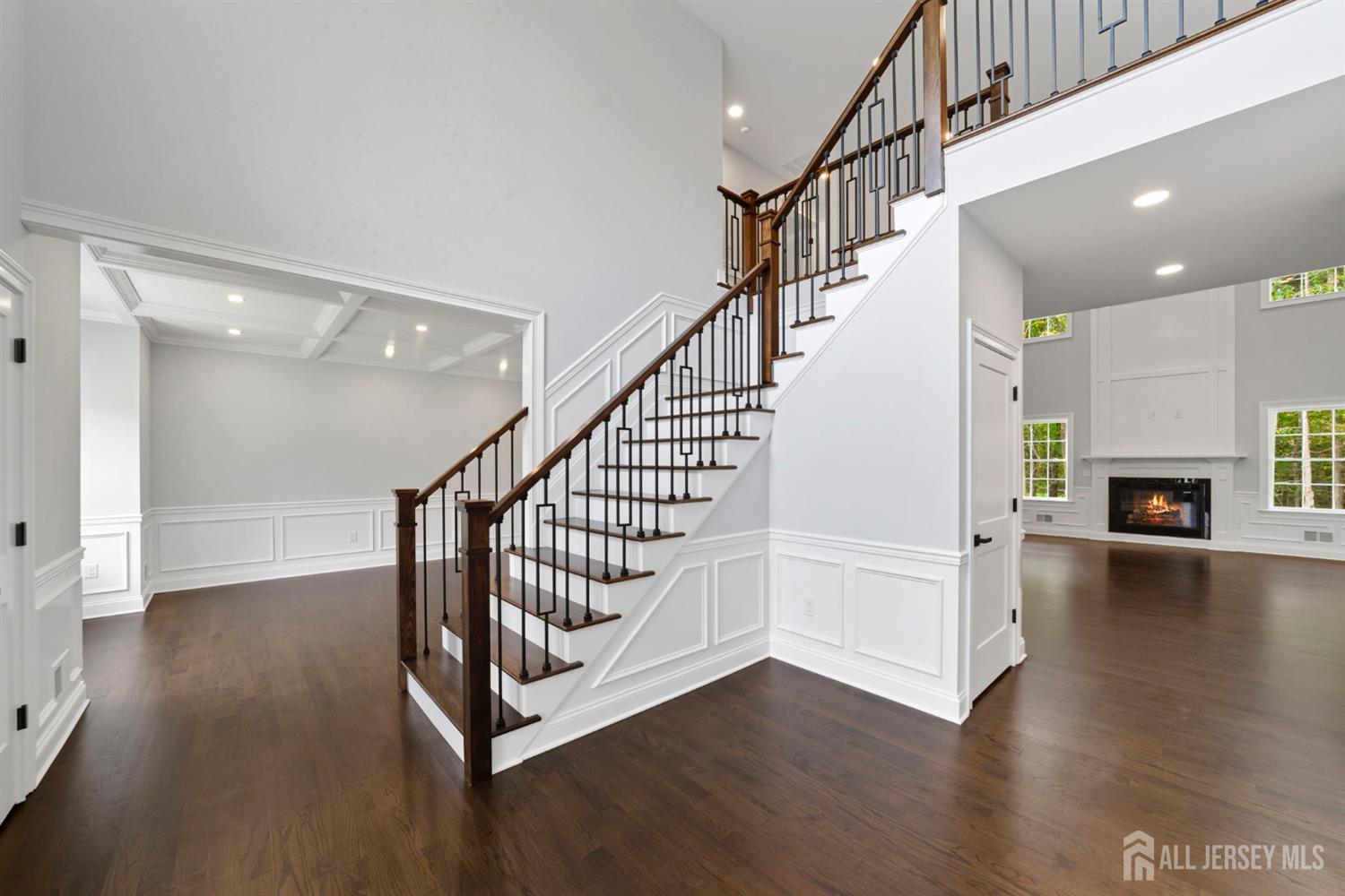 Introducing this magnificent 5 bedroom, 4.5 bathroom new construction home offering over 4,700 sq. ft. of luxury living space, perfectly situated on 2.3 acres in East Brunswick. Designed with exceptional attention to detail, the home is filled with fine touches, including tasteful wainscoting throughout and beautiful coffered ceilings in the formal living room that are sure to impress. The centerpiece of the home is the chef's kitchen, featuring waterfall countertops, a sprawling center island, hidden pantry, and premium cabinetry. The kitchen opens seamlessly into the expansive great room, creating the perfect open-concept space for entertaining and everyday living. Rich hardwood floors extend throughout, adding warmth and elegance to every level. Upstairs, discover four spacious bedrooms, highlighted by a luxurious primary suite with a private sitting area or potential office, a spa-like en suite bath, and generous closet space. A princess suite with its own private bath adds even more comfort and convenience. The second-floor laundry keeps daily routines simple, while the first-floor en suite bedroom provides flexibility for guests or multi-generational living. With brand-new construction, refined finishes, and a thoughtfully designed floor plan, this home is a rare opportunity to enjoy modern living at its finest.