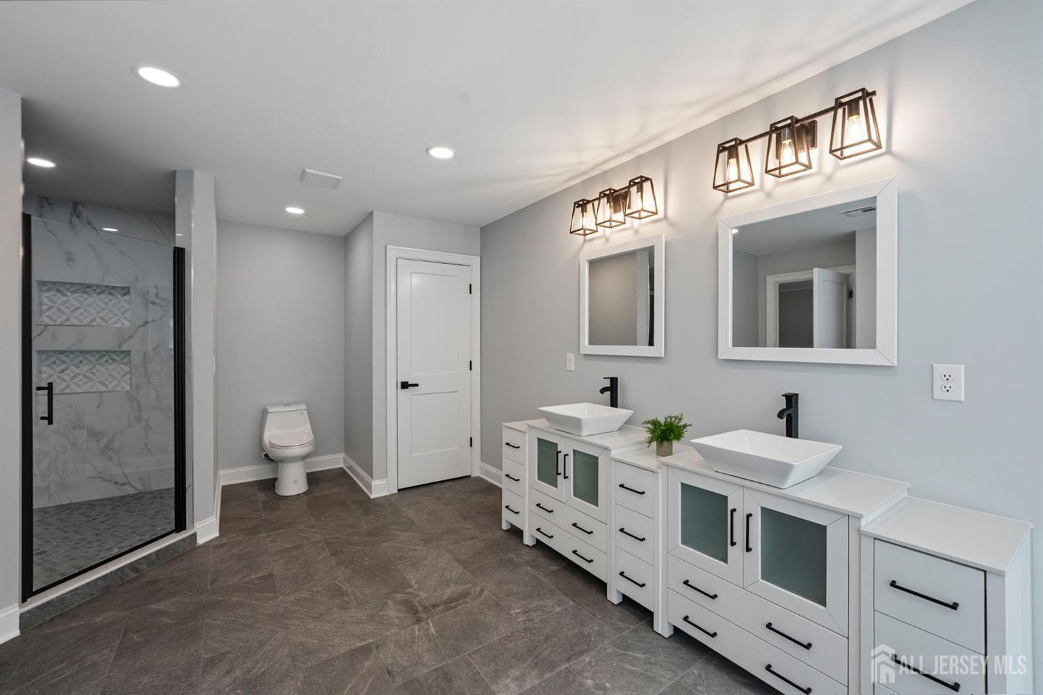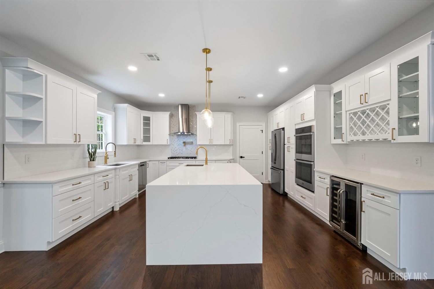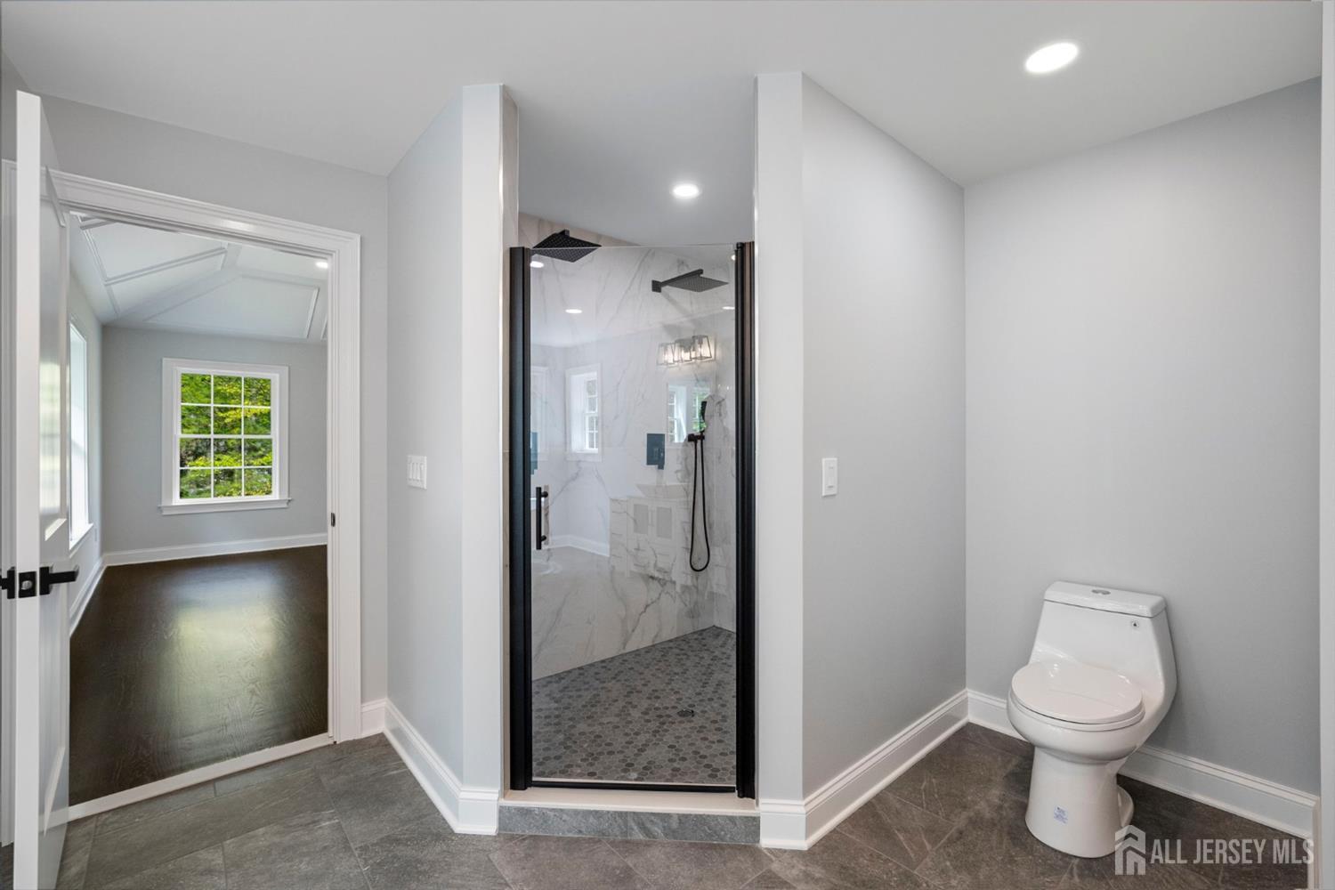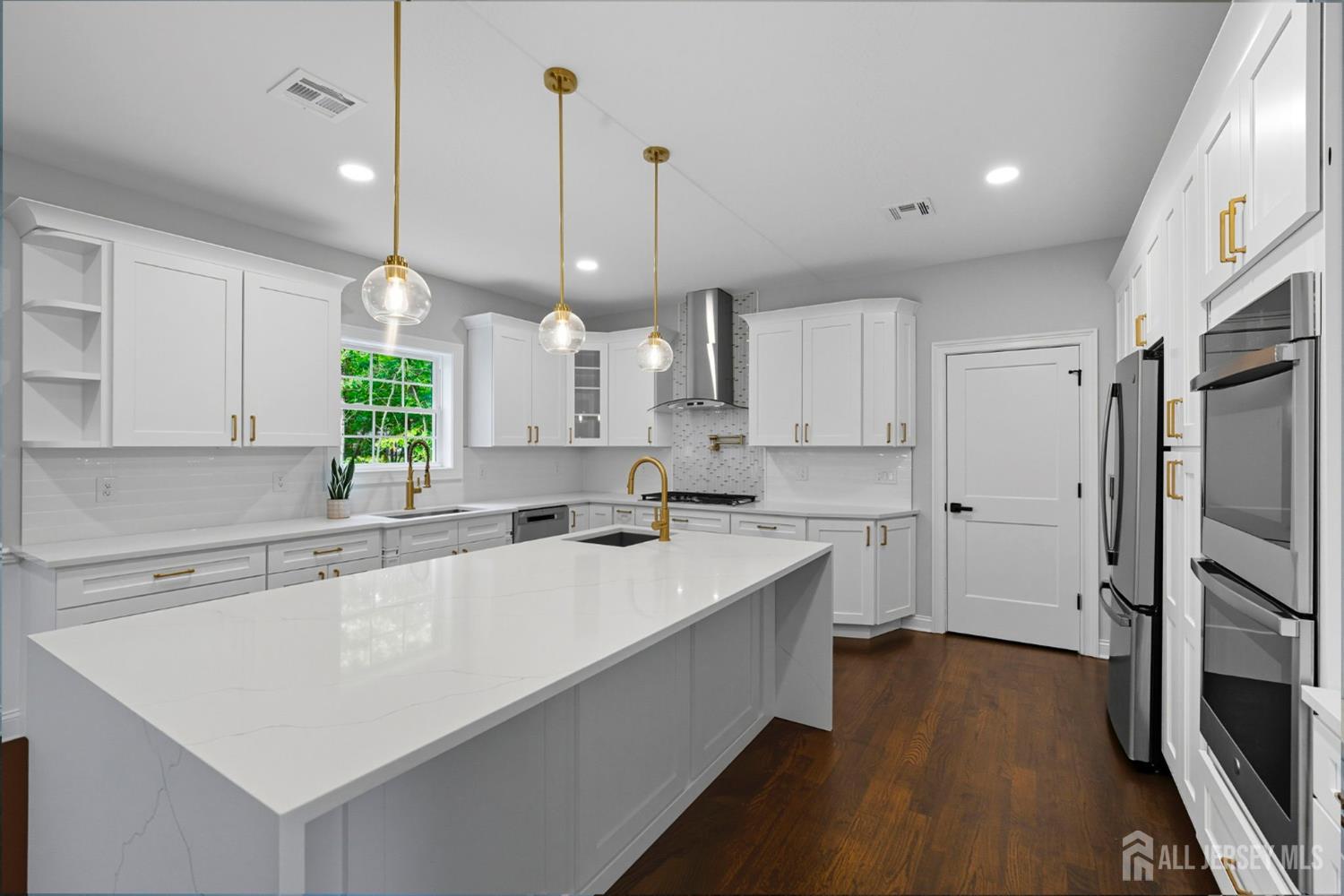 Introducing this magnificent 5 bedroom, 4.5 bathroom new construction home offering over 4,700 sq. ft. of luxury living space, perfectly situated on 2.3 acres in East Brunswick. Designed with exceptional attention to detail, the home is filled with fine touches, including tasteful wainscoting throughout and beautiful coffered ceilings in the formal living room that are sure to impress. The centerpiece of the home is the chef's kitchen, featuring waterfall countertops, a sprawling center island, hidden pantry, and premium cabinetry. The kitchen opens seamlessly into the expansive great room, creating the perfect open-concept space for entertaining and everyday living. Rich hardwood floors extend throughout, adding warmth and elegance to every level. Upstairs, discover four spacious bedrooms, highlighted by a luxurious primary suite with a private sitting area or potential office, a spa-like en suite bath, and generous closet space. A princess suite with its own private bath adds even more comfort and convenience. The second-floor laundry keeps daily routines simple, while the first-floor en suite bedroom provides flexibility for guests or multi-generational living. With brand-new construction, refined finishes, and a thoughtfully designed floor plan, this home is a rare opportunity to enjoy modern living at its finest.