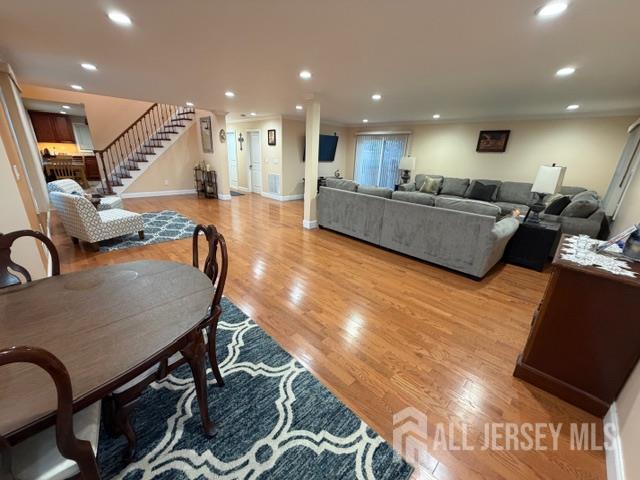 This beautifully renovated home features an open floor plan and a spacious layout, offering four bedrooms including a main‑level bedroom with a full bathroom, ideal for guests, multigenerational living, or a private home office. Hardwood floors run throughout, adding warmth and elegance to the modern, updated kitchen and three fully renovated bathrooms. A finished walkout basement provides additional living space with easy access to the outdoors. The property also includes an attached garage, a half‑circle driveway that accommodates 10+ cars, and a fully fenced yard for added privacy and convenience. Major upgrades include a relatively new roof, an updated HVAC system, and a tankless water heaterproviding comfort, efficiency, and peace of mind. Ideally located near major highways, shopping, dining, Rutgers University, Robert Wood Johnson University Hospital, Saint Peter's University Hospital, and East Brunswick's top‑rated schools, this home combines style, comfort, and unbeatable convenience. Showings begin 04/04.