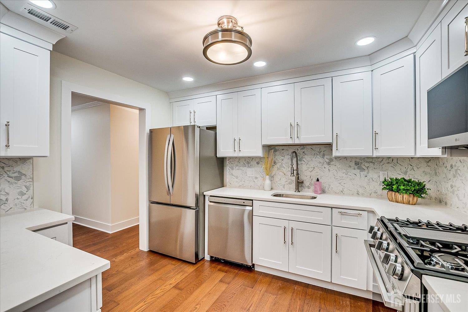 Welcome to this fully upgraded 2-bedroom, 2-bathroom ground-floor condo located in the highly sought-after Timberline development in North Edison. Fully Renovated Offering 1,372 sq ft of beautifully remodeled living space, this move-in ready home is truly a rare find! Recently Renovated Top-to-Bottom, Freshly painted throughout,Brand new wood flooring, All new doors and windows, New electrical panel, Brand new HVAC system and water heater, Recessed lighting and detailed molding & trim work, Stylish, Modern Kitchen, Brand new cabinetry Stunning backsplash, Stainless steel appliances,Large formal living room with sliders leading to a huge covered patioperfect for entertaining, Separate formal dining room with ample natural light,Spacious Layout, Private backyard setting for a resort-like feel, Two Private Bedroom Suites, Primary suite with serene backyard views, ample closet space, and a luxurious ensuite bathroom. Second bedroom also features its own brand-new full bathroom, built in closets, Convenience & Comfort, Brand new in-unit washer and dryer, Ground floor with easy accessibility, Private yard and best location in the community with unmatched privacy, Prime Location, Located in the top-rated North Edison school district, Easy access to NYC via mass transit, Close to major highways, shopping, hospitals, and dining, Don't miss this exceptional opportunityhomes like this are rarely available in Timberline! Attached freshly painted and floor proxy Oversized Garage, Great for storage and a Pull down Attic in Garage! A Must see!!