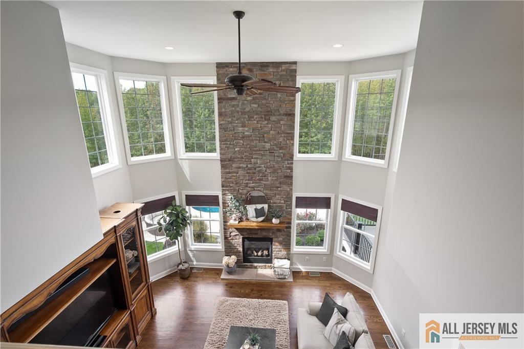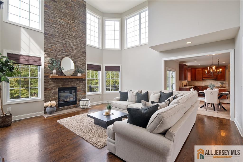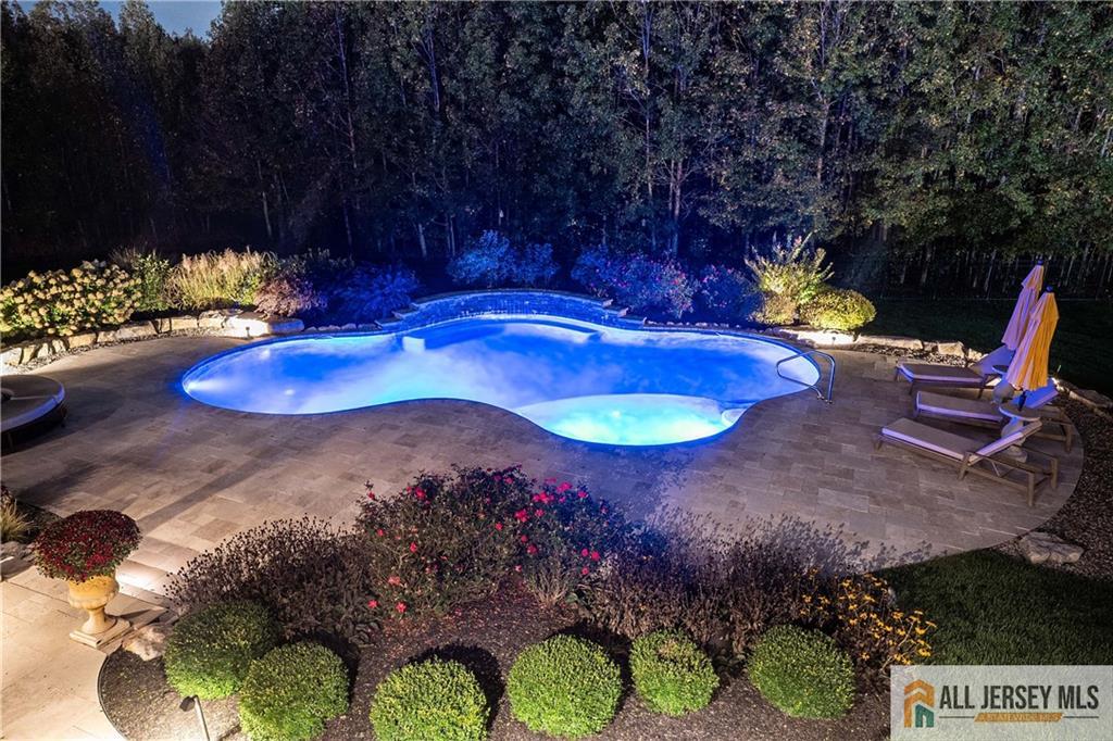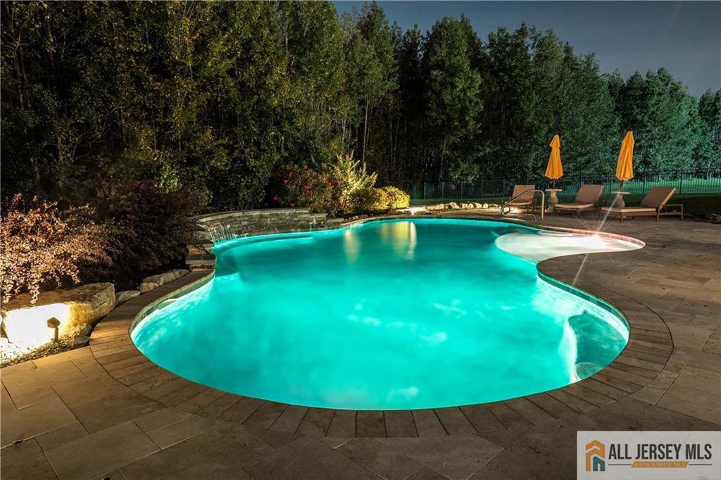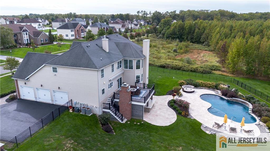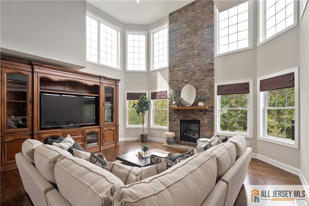 15 Sunny Court - East Facing Elegance with Over 6,000 Sq Ft of Luxury Living.Welcome to this magnificent East Facing residence showcasing more than 6,000 sq. ft. of finished living space, including approximately 4,400 sq. ft. on the main levels and an additional 2,000 sq. ft. in the finished walkout basement. This one-of-a-kind property blends elegance, versatility, and resort-style amenities, making it the perfect home for both everyday living and grand entertaining. Upon entry, you are greeted by a dramatic foyer highlighted by an impressive Schonbek chandelier complete with a lift system for effortless maintenance. The heart of the home is the two-story family room, where a striking floor-to-ceiling stone wall with an electric fireplace creates an inviting focal point. The chef's kitchen is designed to delight with an oversized island, granite countertops, stainless steel appliances, a double oven, and sliders leading to a spacious second-story Trex deck. Elegant wainscoting, vaulted ceilings, and gleaming hardwood floors flow throughout the main level, complemented by a formal living room and a dedicated home office with French doors opening to a versatile conservatorycomplete with abundant natural light. A spacious 3-car garage provides easy access into the mudroom for a convenient everyday entrance. Upstairs, discover four bedrooms, including a stunning Primary Suite with brand new hardwood floors, a sitting room, dual-sided electric fireplace, and his-and-hers walk-in closets. The spa-like bath features dual vanities, a jetted soaking tub, and separate shower, creating the ultimate retreat. Three additional spacious bedrooms and a full bathroom complete the second floor. Below grade, the walkout finished basement offers another 2,000 sq. ft. of flexible living space, perfect for multi-generational living. Highlights include a full bath, two additional bedrooms, and open areas ideal for a gym, office, or recreation space. Two sets of sliders provide seamless access to the backyard paradise. Step outside and experience the ultimate outdoor living retreat. A custom brick fireplace, built-in gas grill, and reclaimed Oregon barnwood walls set the stage for memorable gatherings. At the center is a heated saltwater Gunite pool with a cascading waterfall, oversized sun shelf with a built-in umbrella holder, and a luxurious travertine stone patio. With integrated surround sound and an unmatched resort-style atmosphere, you'll never want to leave. 15 Sunny Court is more than a homeit's a lifestyle. Thoughtfully designed with luxury, comfort, and versatility in mind, this exceptional property is a rare offering in today's market.