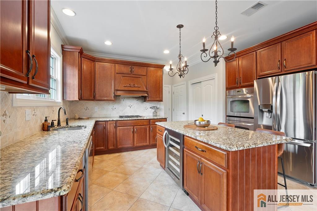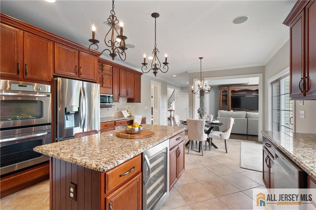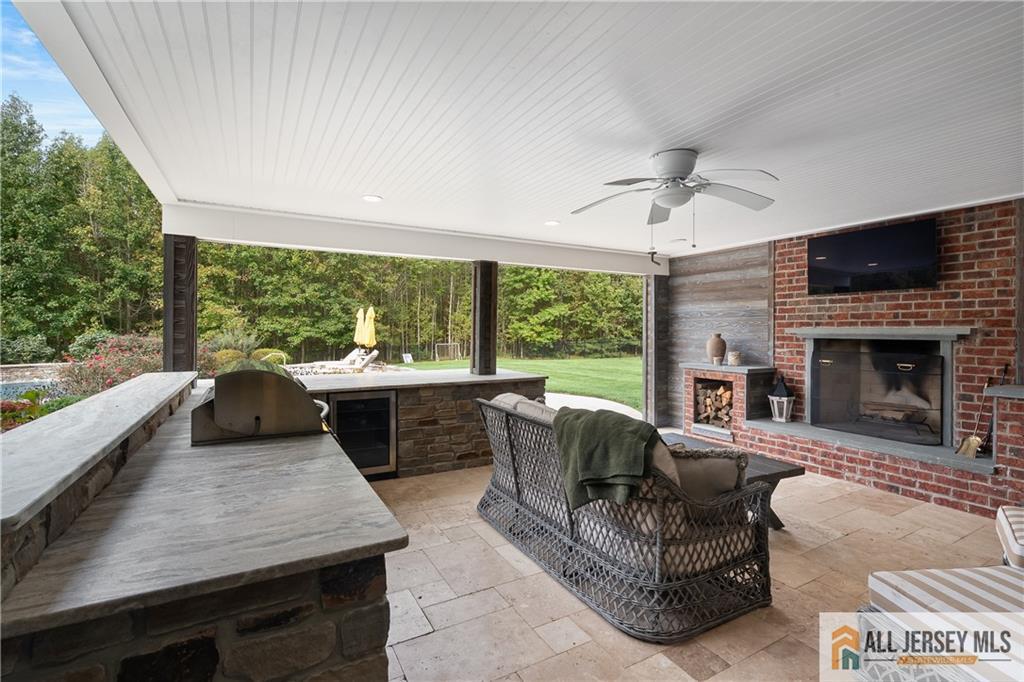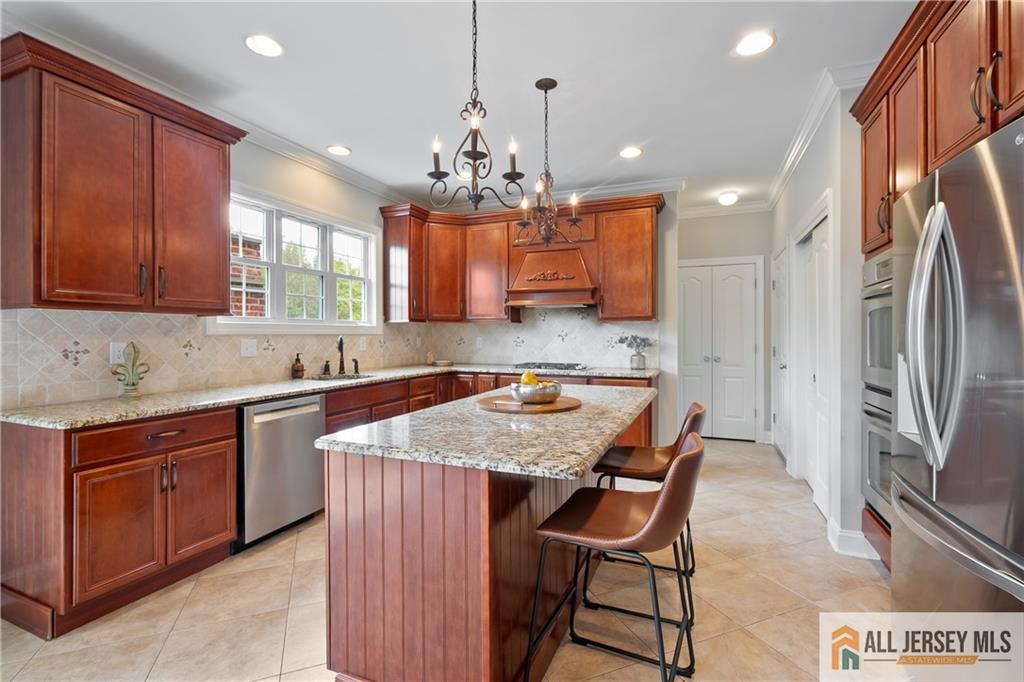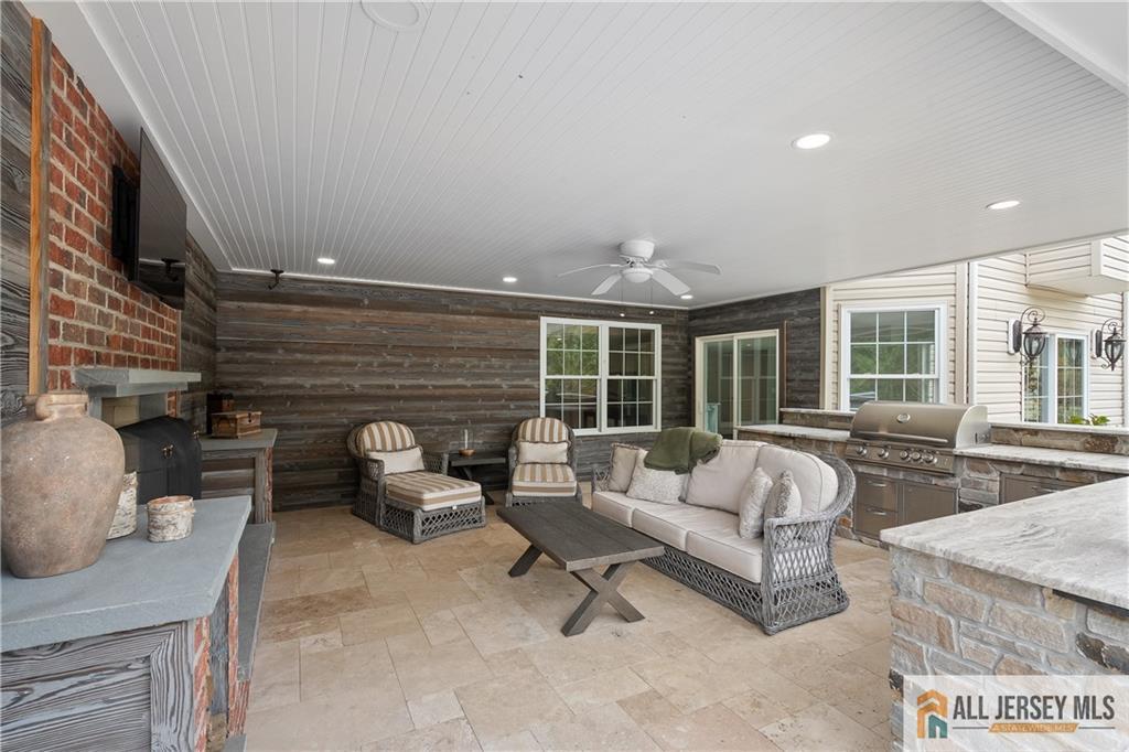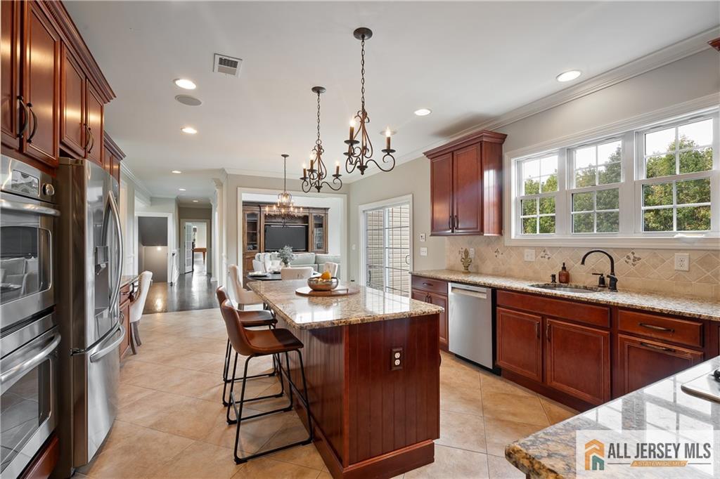 15 Sunny Court - East Facing Elegance with Over 6,000 Sq Ft of Luxury Living.Welcome to this magnificent East Facing residence showcasing more than 6,000 sq. ft. of finished living space, including approximately 4,400 sq. ft. on the main levels and an additional 2,000 sq. ft. in the finished walkout basement. This one-of-a-kind property blends elegance, versatility, and resort-style amenities, making it the perfect home for both everyday living and grand entertaining. Upon entry, you are greeted by a dramatic foyer highlighted by an impressive Schonbek chandelier complete with a lift system for effortless maintenance. The heart of the home is the two-story family room, where a striking floor-to-ceiling stone wall with an electric fireplace creates an inviting focal point. The chef's kitchen is designed to delight with an oversized island, granite countertops, stainless steel appliances, a double oven, and sliders leading to a spacious second-story Trex deck. Elegant wainscoting, vaulted ceilings, and gleaming hardwood floors flow throughout the main level, complemented by a formal living room and a dedicated home office with French doors opening to a versatile conservatorycomplete with abundant natural light. A spacious 3-car garage provides easy access into the mudroom for a convenient everyday entrance. Upstairs, discover four bedrooms, including a stunning Primary Suite with brand new hardwood floors, a sitting room, dual-sided electric fireplace, and his-and-hers walk-in closets. The spa-like bath features dual vanities, a jetted soaking tub, and separate shower, creating the ultimate retreat. Three additional spacious bedrooms and a full bathroom complete the second floor. Below grade, the walkout finished basement offers another 2,000 sq. ft. of flexible living space, perfect for multi-generational living. Highlights include a full bath, two additional bedrooms, and open areas ideal for a gym, office, or recreation space. Two sets of sliders provide seamless access to the backyard paradise. Step outside and experience the ultimate outdoor living retreat. A custom brick fireplace, built-in gas grill, and reclaimed Oregon barnwood walls set the stage for memorable gatherings. At the center is a heated saltwater Gunite pool with a cascading waterfall, oversized sun shelf with a built-in umbrella holder, and a luxurious travertine stone patio. With integrated surround sound and an unmatched resort-style atmosphere, you'll never want to leave. 15 Sunny Court is more than a homeit's a lifestyle. Thoughtfully designed with luxury, comfort, and versatility in mind, this exceptional property is a rare offering in today's market.
