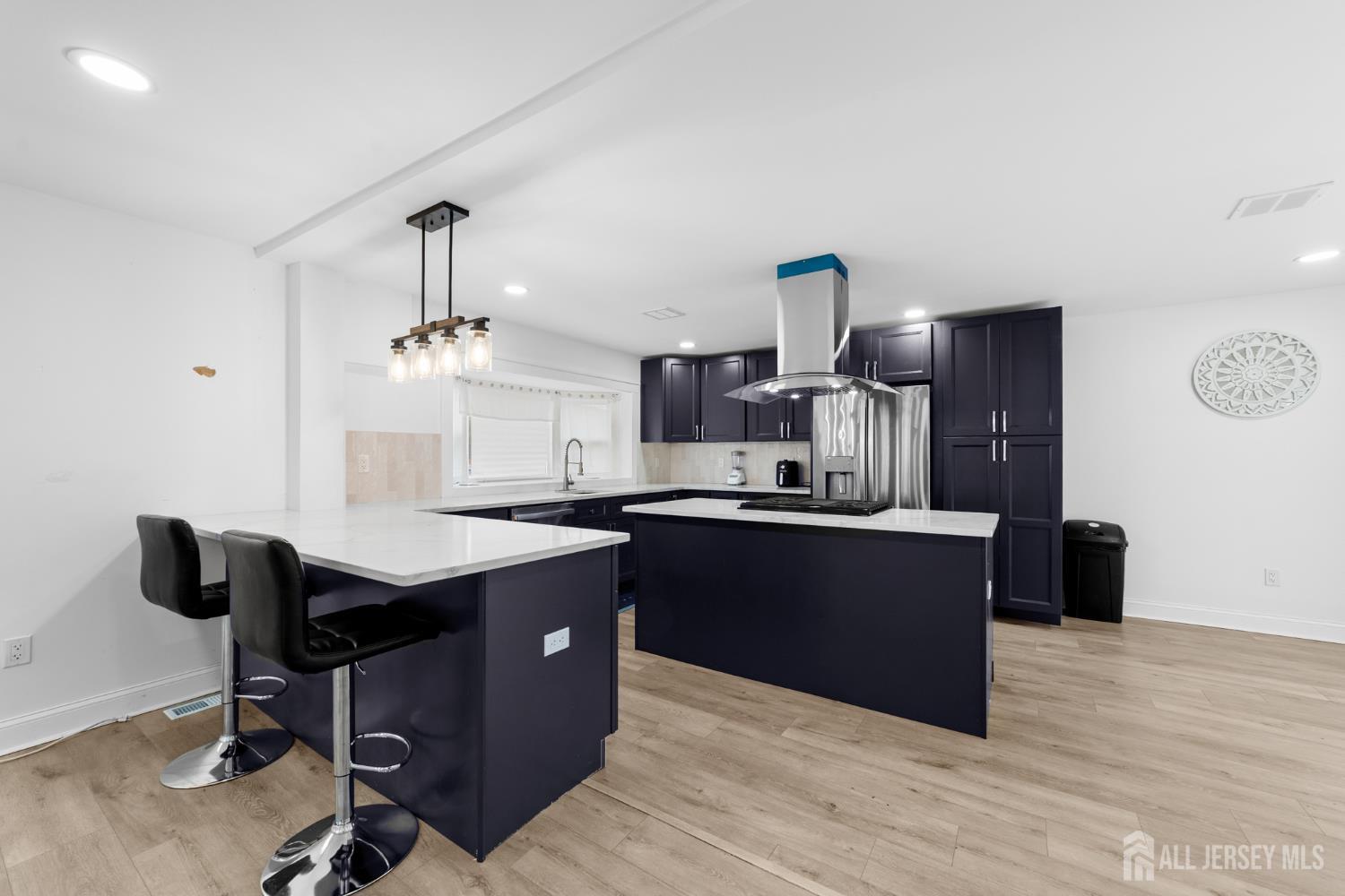 Kitchen Features: Granite/Corian Countertops, Breakfast Bar, Kitchen Exhaust Fan, Kitchen Island, Eat-in Kitchen