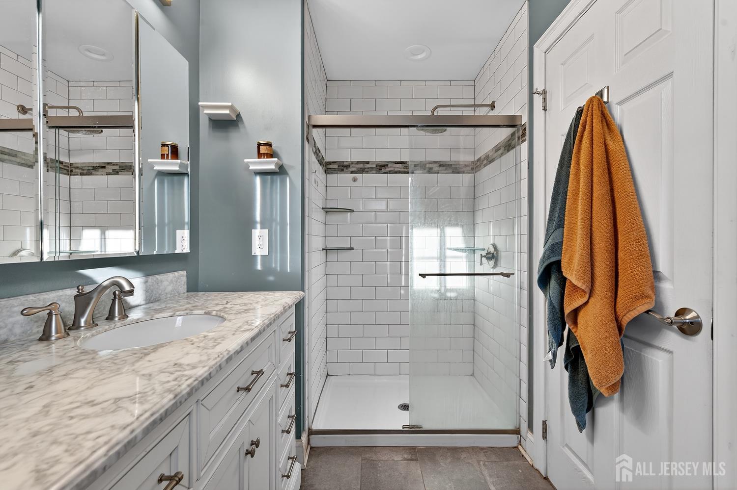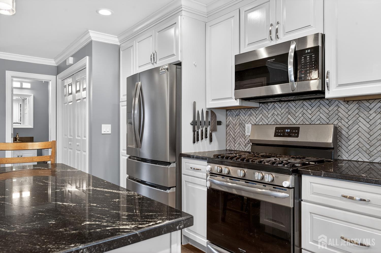 Move right into this show-stopping 3-bedroom, 3.5-bath home rebuilt from the studs in 2021, including a full second-story addition, with a finished w-out basement every inch thoughtfully redesigned with today's style and comfort in mind. Step into a welcoming foyer with coat closet, crown molding, and an inviting Family room featuring a stone-front gas fireplace with wood mantle, recessed lighting, and a bright, open flow into the kitchen and dining area. The designer kitchen shines with light shaker cabinetry with crown molding, granite countertops, stainless steel appliances, herringbone tile backsplash, and a large center island with storage, pendant lighting, and a pantry. A convenient laundry area and updated powder room complete the main level. The Dining room offers built-ins and sliders to the backyard perfect for entertaining. Outside, enjoy a maintenance-free Trex deck overlooking the fully fenced yard, plus a patio and storage shed ideal for gatherings and play. Upstairs, retreat to the spacious primary suite with vaulted ceilings, recessed lighting, ceiling fan, and two custom-organized closets plus a built-in dresser area. The en-suite bath features tile floors, a stylish vanity, and a beautifully finished step-in shower with glass door and updated fixtures. Two additional bedrooms offer great closet space, ceiling fans, and recessed lighting, served by a well-appointed hall bath. Additional storage is available in the attic with pull-down stairs. Downstairs, the finished walk-out basement adds incredible bonus space with waterproof luxury flooring, recessed lighting, and direct access to the side yard ideal for a rec room, gym, office, or guest setup. A full bath on this level features tile floors, a modern vanity, and a sleek tiled shower with glass doors. Additional highlights include dual-zone (damper) heating and cooling with Nest thermostats, 2021 HVAC/furnace and hot water heater, plus under-stair storage and a utility room with slop sink. Conveniently located to nearby shops, restaurants, train station, bus stop & all major roadways. This is the one!