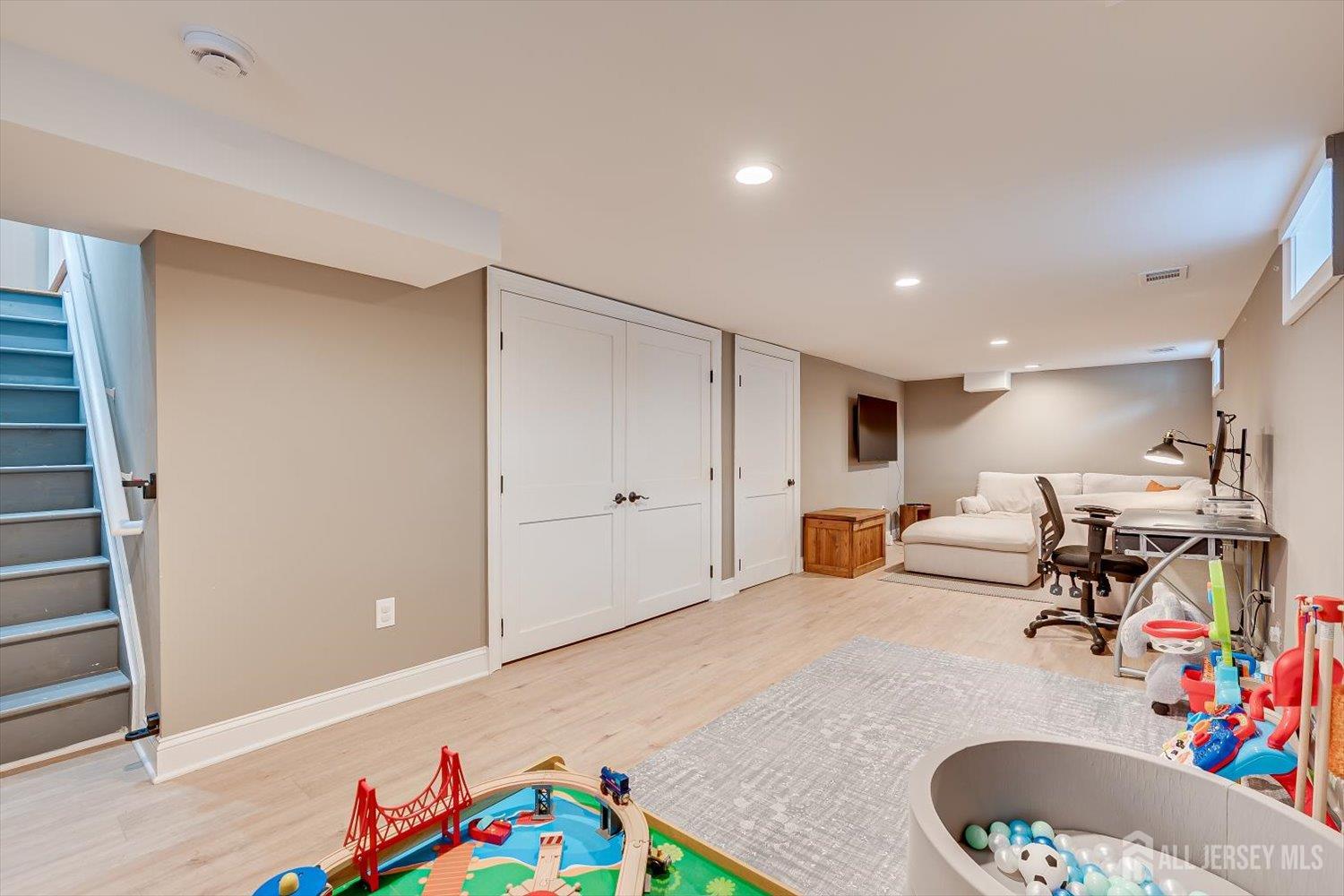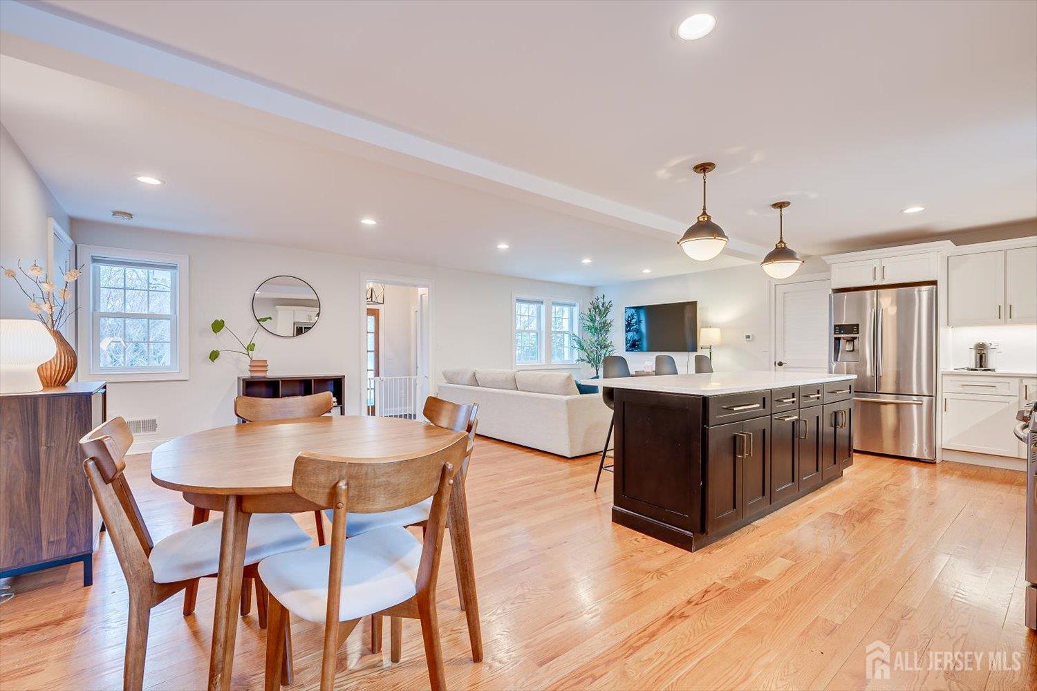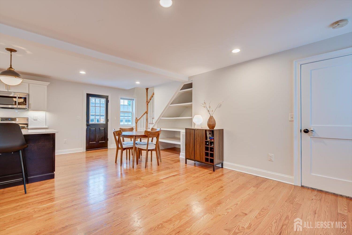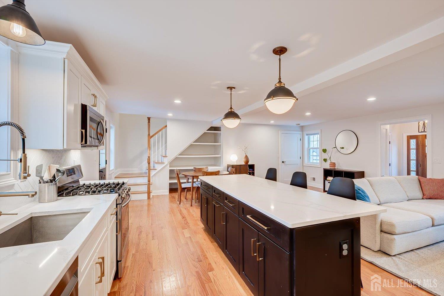 Welcome to 152 4th St, a beautifully renovated 3-bedroom, 2.5-bath home in Clara Barton. Completely updated in 2023, this turn-key home combines modern comfort with a prime location just minutes from downtown Metuchen and train station with direct service to NYC. The open floor plan is bright and inviting, perfect for everyday living and entertaining. The updated kitchen features modern appliances, ample cabinet space, and a large center island ideal for casual dining and hosting. Hardwood floors and recessed lighting enhance the home's warm, modern feel, while multi-zone heating and cooling ensure year-round comfort and energy efficiency. Upstairs, three spacious bedrooms include a primary suite with a walkin closet and full bath, complemented by a second full bath. A convenient half bath on the main level adds practicality. The finished basement offers valuable additional living spaceperfect for a family room, home office, or gym. Outside, enjoy a private backyard ideal for relaxation or gatherings, along with a sprinkler system for easy lawn maintenance. An oversized 2-car detached garage offers ample space for vehicles, storage, or a workshop. With thoughtful updates, flexible living space, and a location close to transit, parks, and a vibrant downtown, 152 4th St is a move-in-ready home in one of Edison's most desirable neighborhoods.