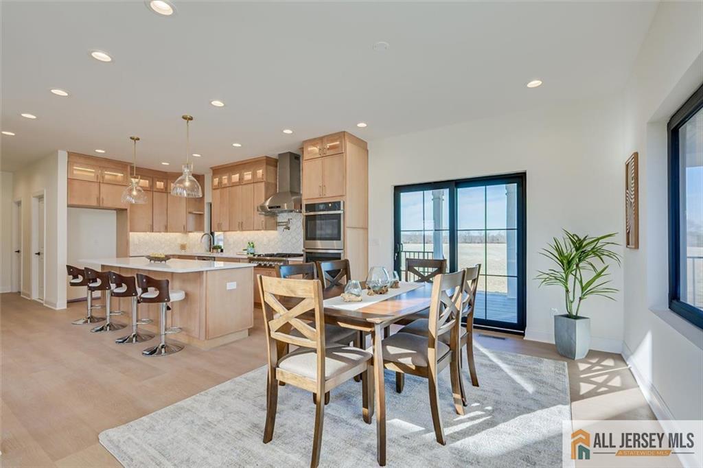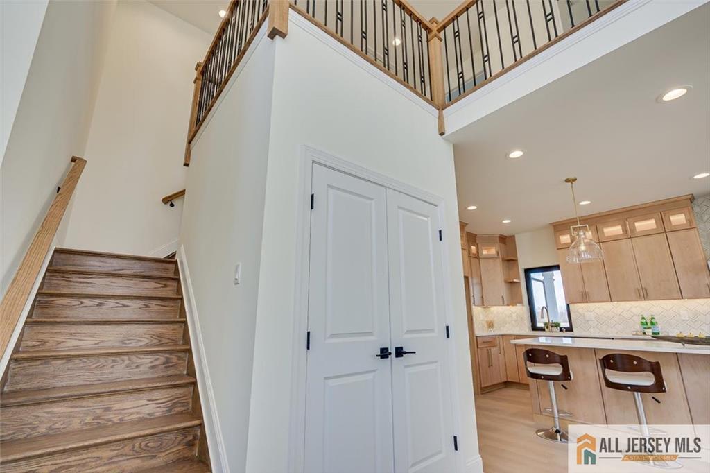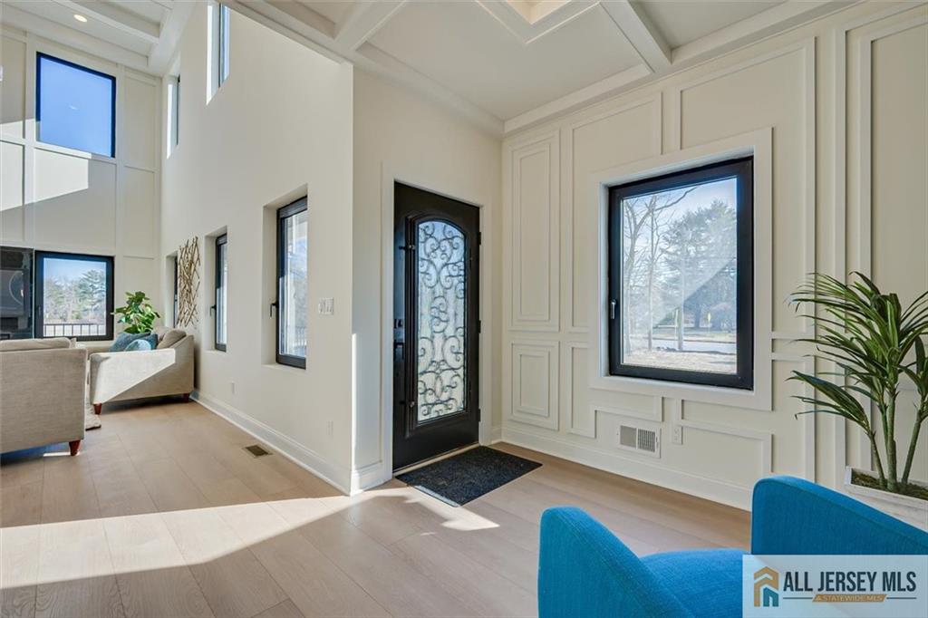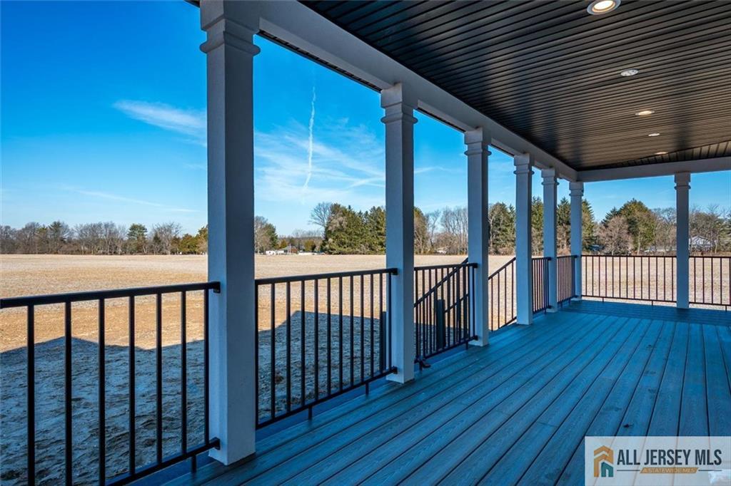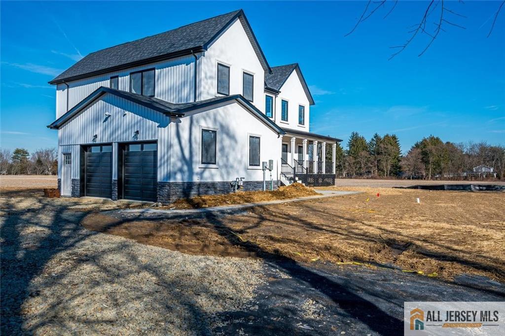 Beautifully crafted new construction featuring an EAST FACING entrance located in a top-rated New Jersey school district, with easy access to NYC trains, and a serene setting back to a farmland. This modern yet cozy home features an open floor plan ideal for entertaining. The gourmet kitchen showcases an oversized island, quartz countertops, Canadian maple cabinetry with roll-out drawers, and a walk-in pantry. A grand great room is highlighted by elegant chandeliers and recessed lighting throughout the home. Thoughtfully designed details include coffered cathedral ceilings, decorative wall panels, custom closets, and a functional mudroom. Spa-like, high-end bathrooms elevate everyday living. Enjoy outdoor living on the wrap-around covered no maintanence porch and rear deckperfect for relaxing with morning coffee while taking in the peaceful backyard views. Optional backyard fence available as an upgrade. Construction area 3337 plus 1200 sq ft of finished basement. 10 mins to costco, shopping, highways and princeton junction train station.