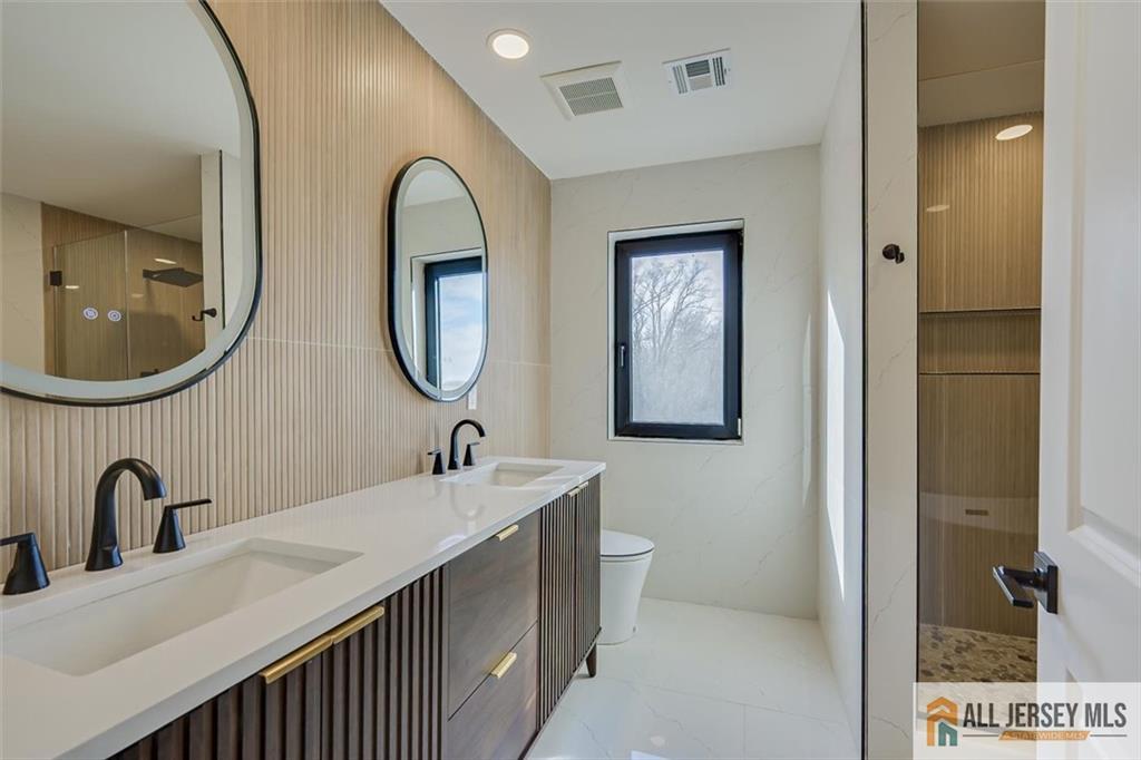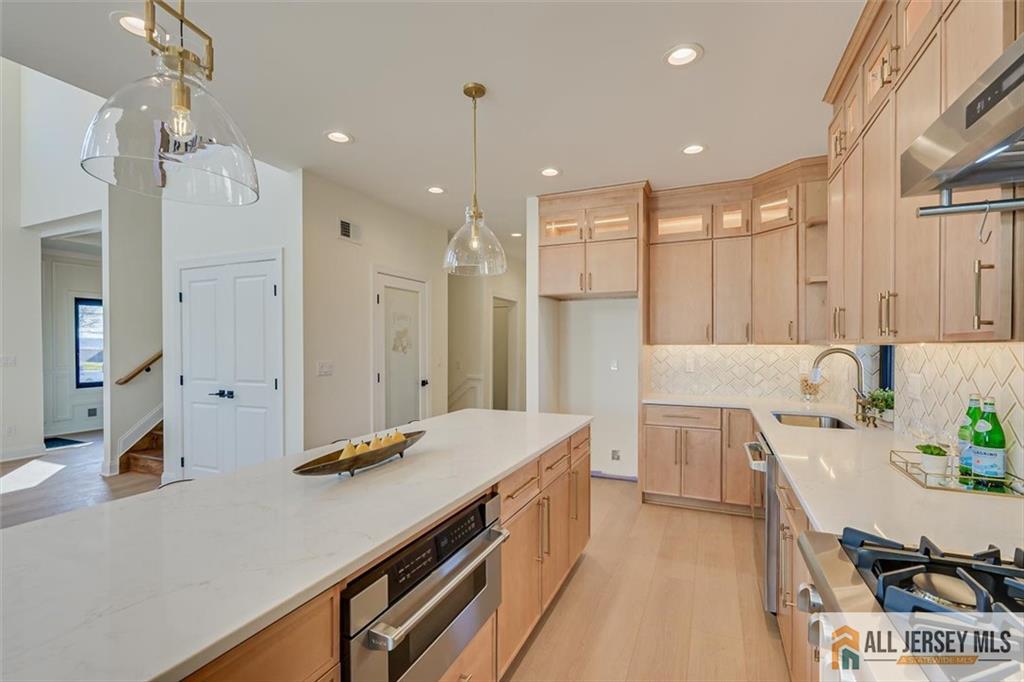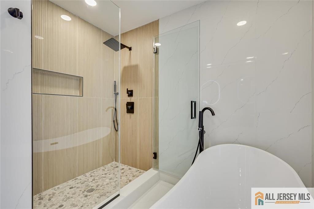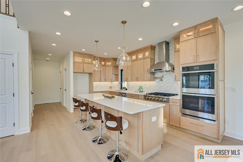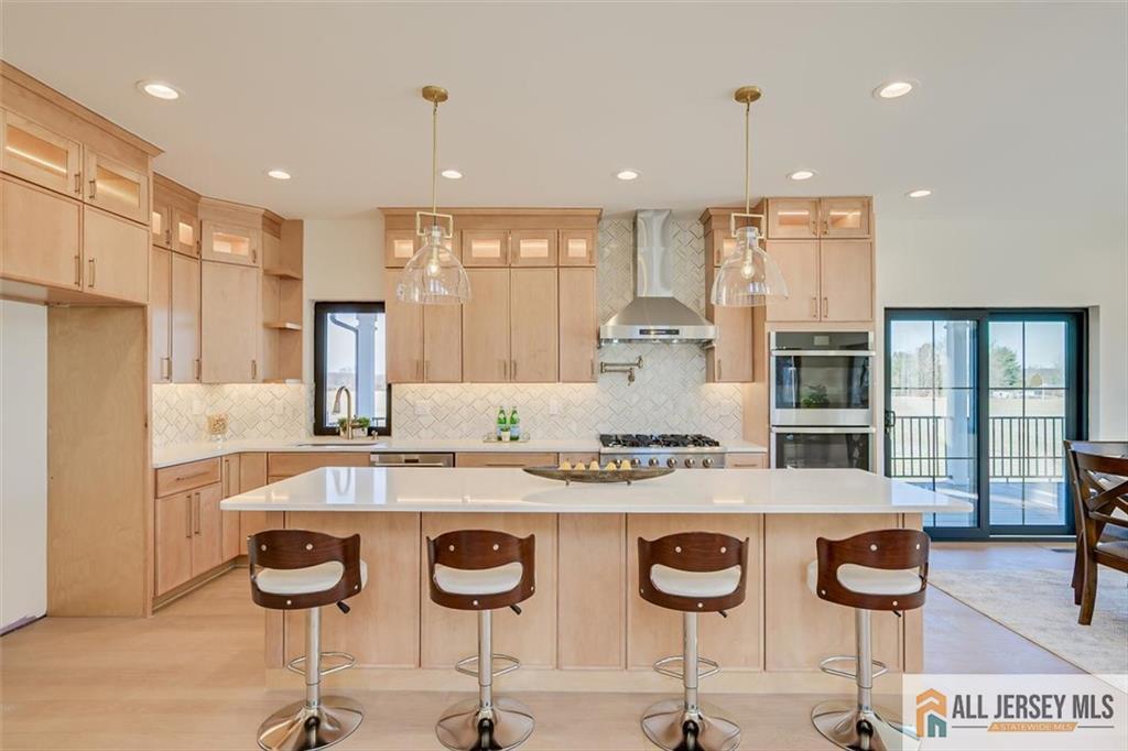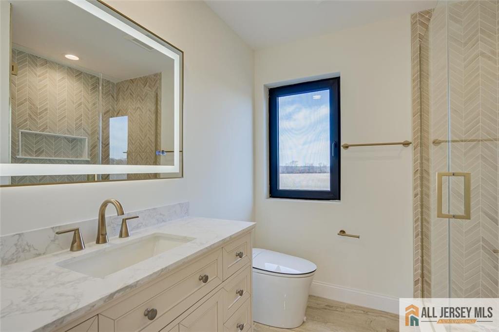 Beautifully crafted new construction featuring an EAST FACING entrance located in a top-rated New Jersey school district, with easy access to NYC trains, and a serene setting back to a farmland. This modern yet cozy home features an open floor plan ideal for entertaining. The gourmet kitchen showcases an oversized island, quartz countertops, Canadian maple cabinetry with roll-out drawers, and a walk-in pantry. A grand great room is highlighted by elegant chandeliers and recessed lighting throughout the home. Thoughtfully designed details include coffered cathedral ceilings, decorative wall panels, custom closets, and a functional mudroom. Spa-like, high-end bathrooms elevate everyday living. Enjoy outdoor living on the wrap-around covered no maintanence porch and rear deckperfect for relaxing with morning coffee while taking in the peaceful backyard views. Optional backyard fence available as an upgrade. Construction area 3337 plus 1200 sq ft of finished basement. 10 mins to costco, shopping, highways and princeton junction train station.
