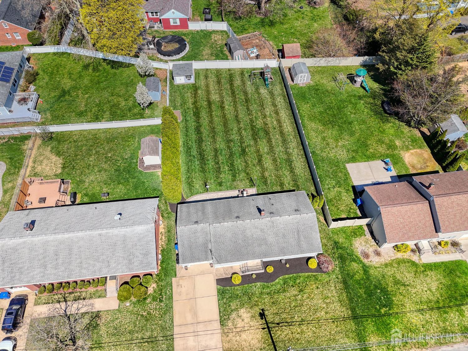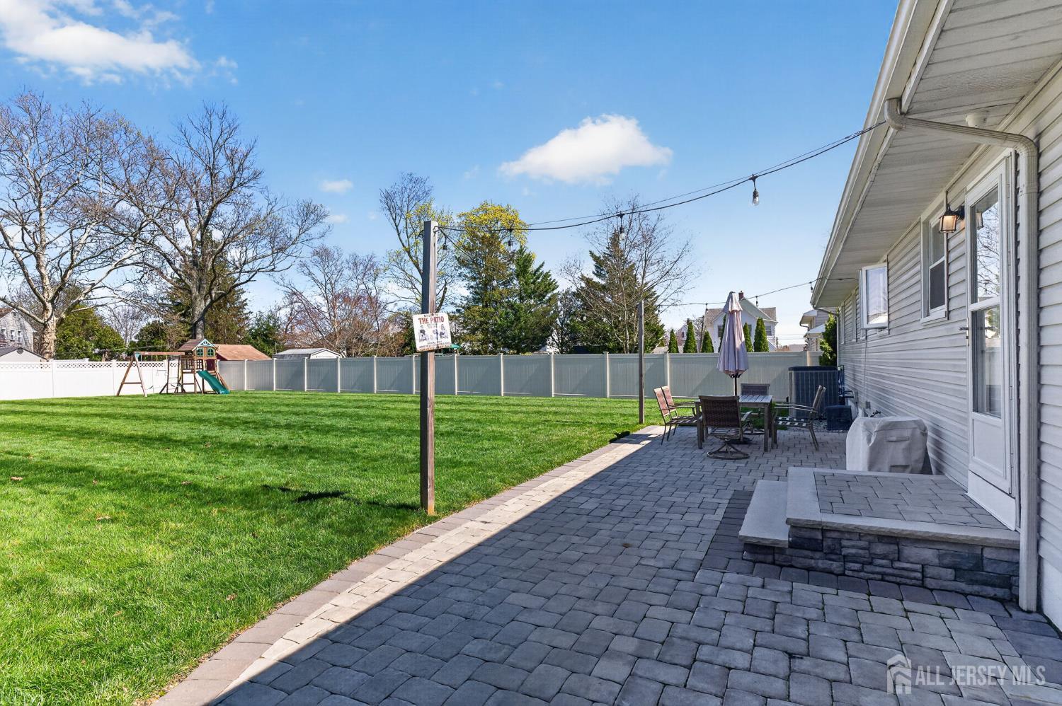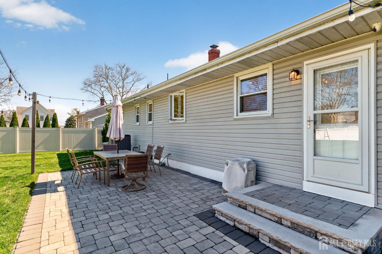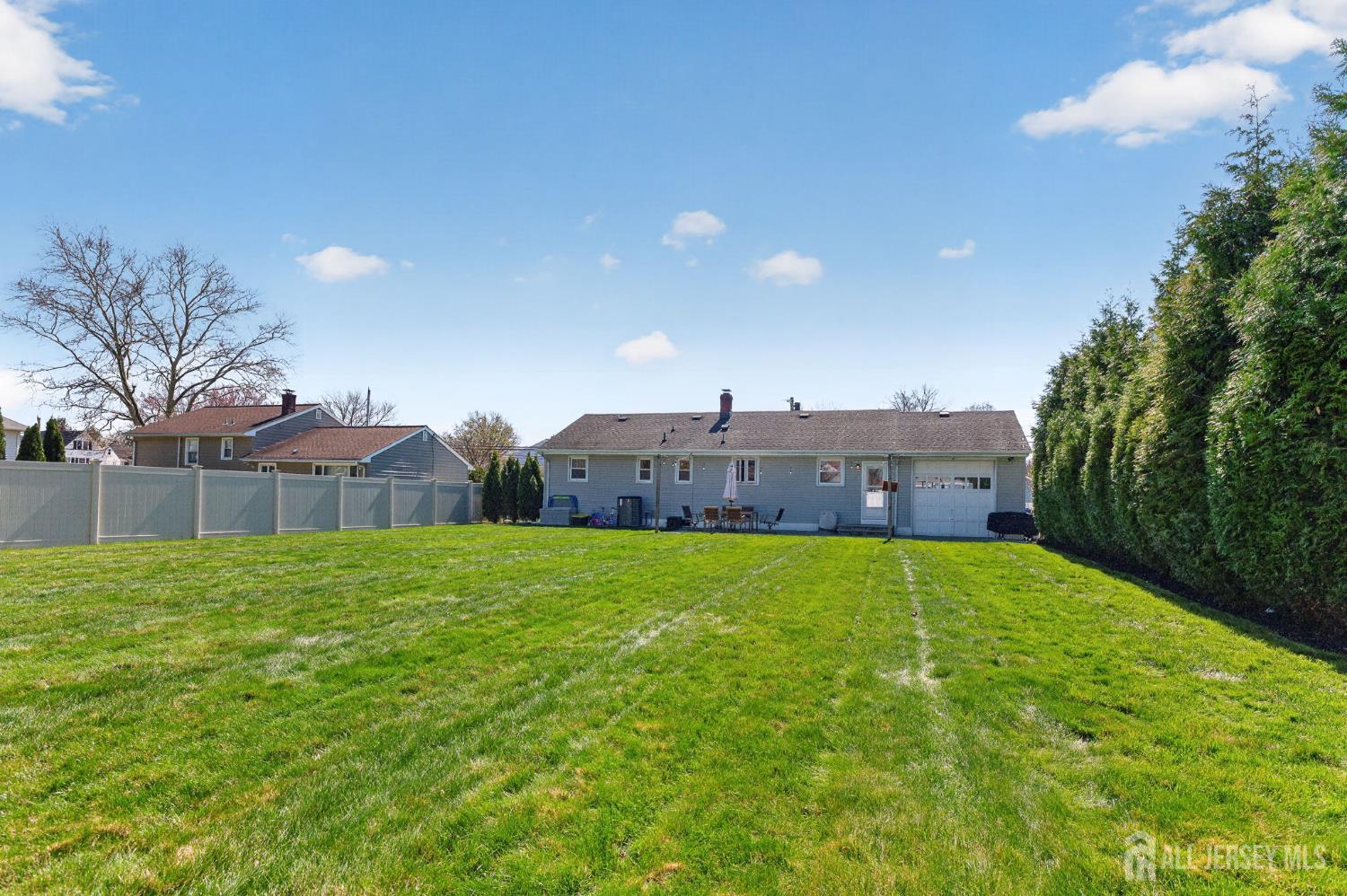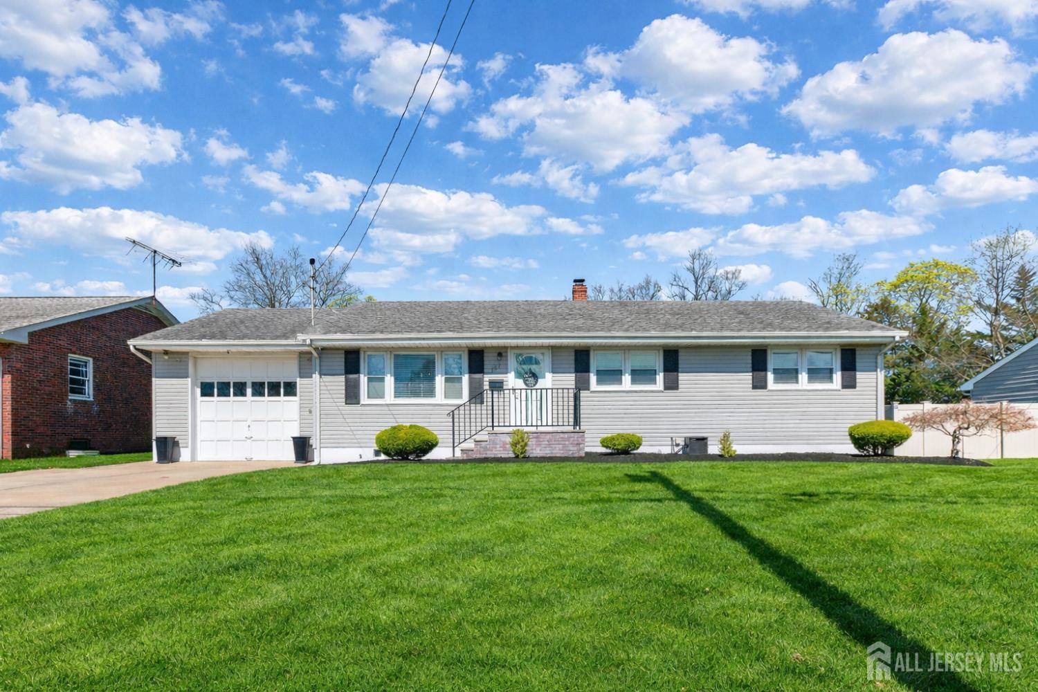 Meticulously maintained 3-bedroom, 1.5-bath ranch offering a spacious and open floor plan. The home features a completely updated kitchen with newer cabinetry, stainless steel appliances, and beautiful granite countertops. The bright living room includes recessed lighting and opens seamlessly into the main living areas, creating an inviting space for everyday living and entertaining. The home offers three bedrooms, all with hardwood floors, including a primary bedroom with its own convenient half bath. The main full bathroom has been tastefully updated. An open staircase leads to a fully finished basement with four separate rooms, including a laundry room, playroom/rec room, family room, and a possible officeproviding plenty of flexible living space. Additional highlights include an oversized garage with garage doors in both the front and rear, offering excellent accessibility. The large fenced backyard features a vinyl privacy fence, lush green grass, and a beautiful brick paver patio, perfect for outdoor gatherings and relaxation. This home is conveniently located near all major highways and transportation to NYC!