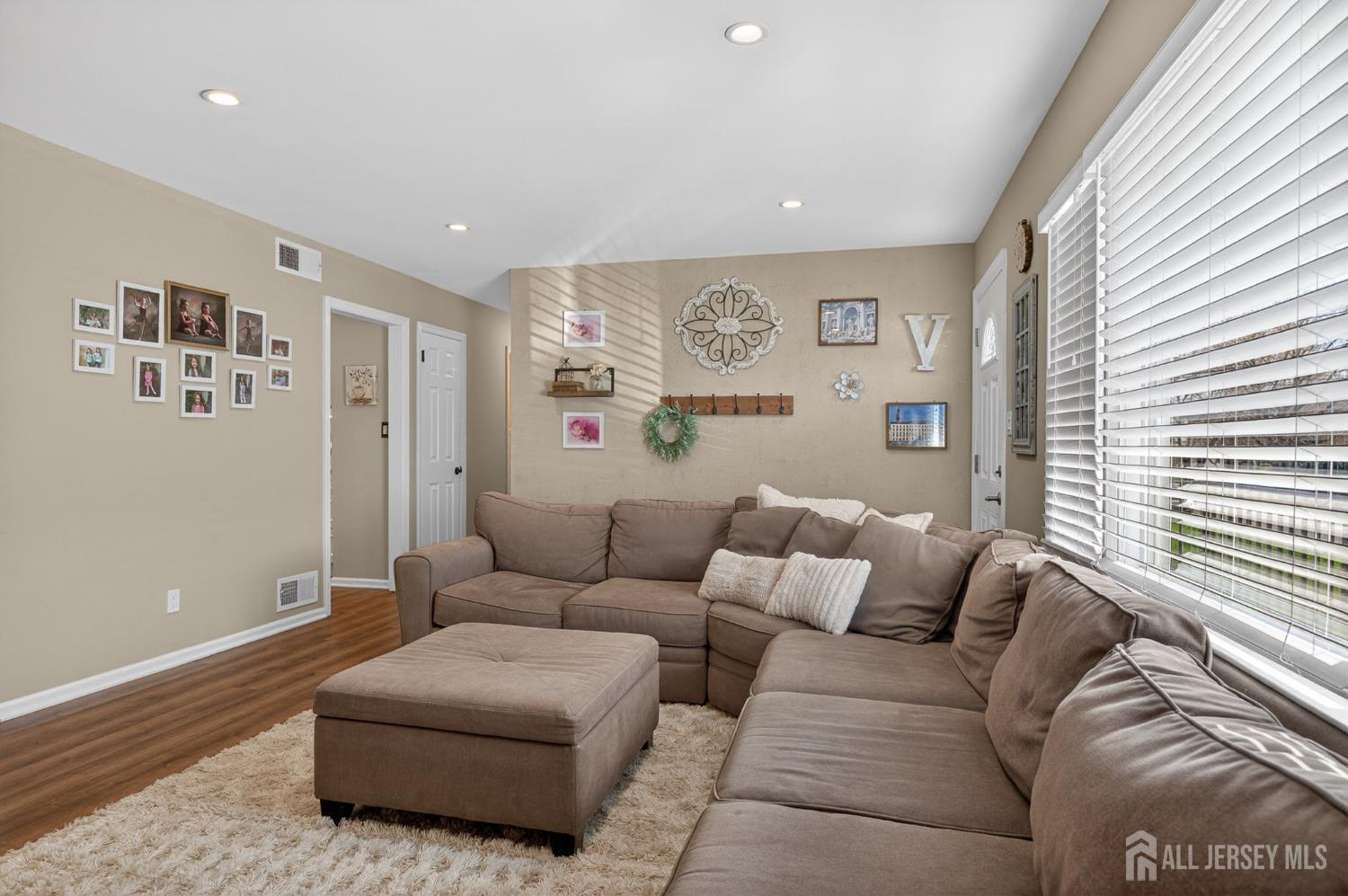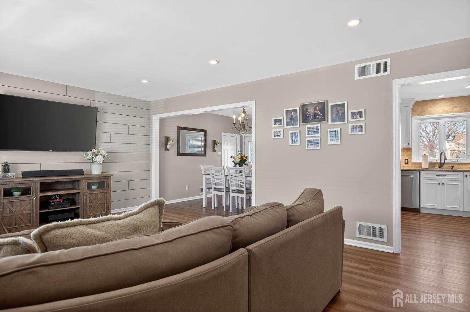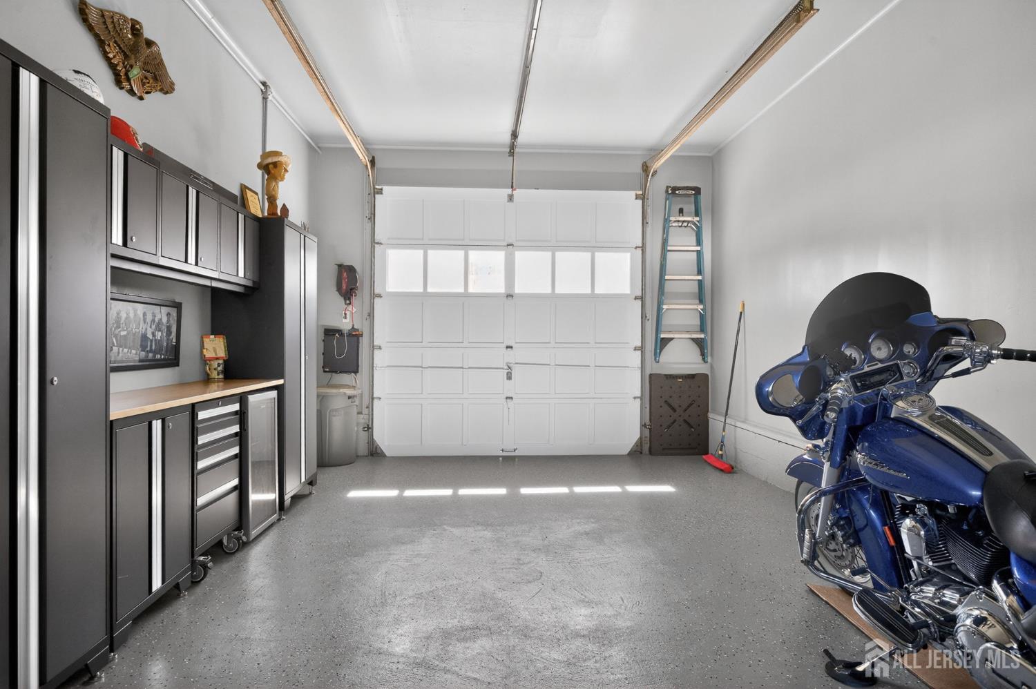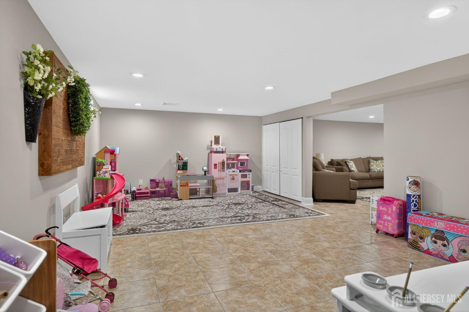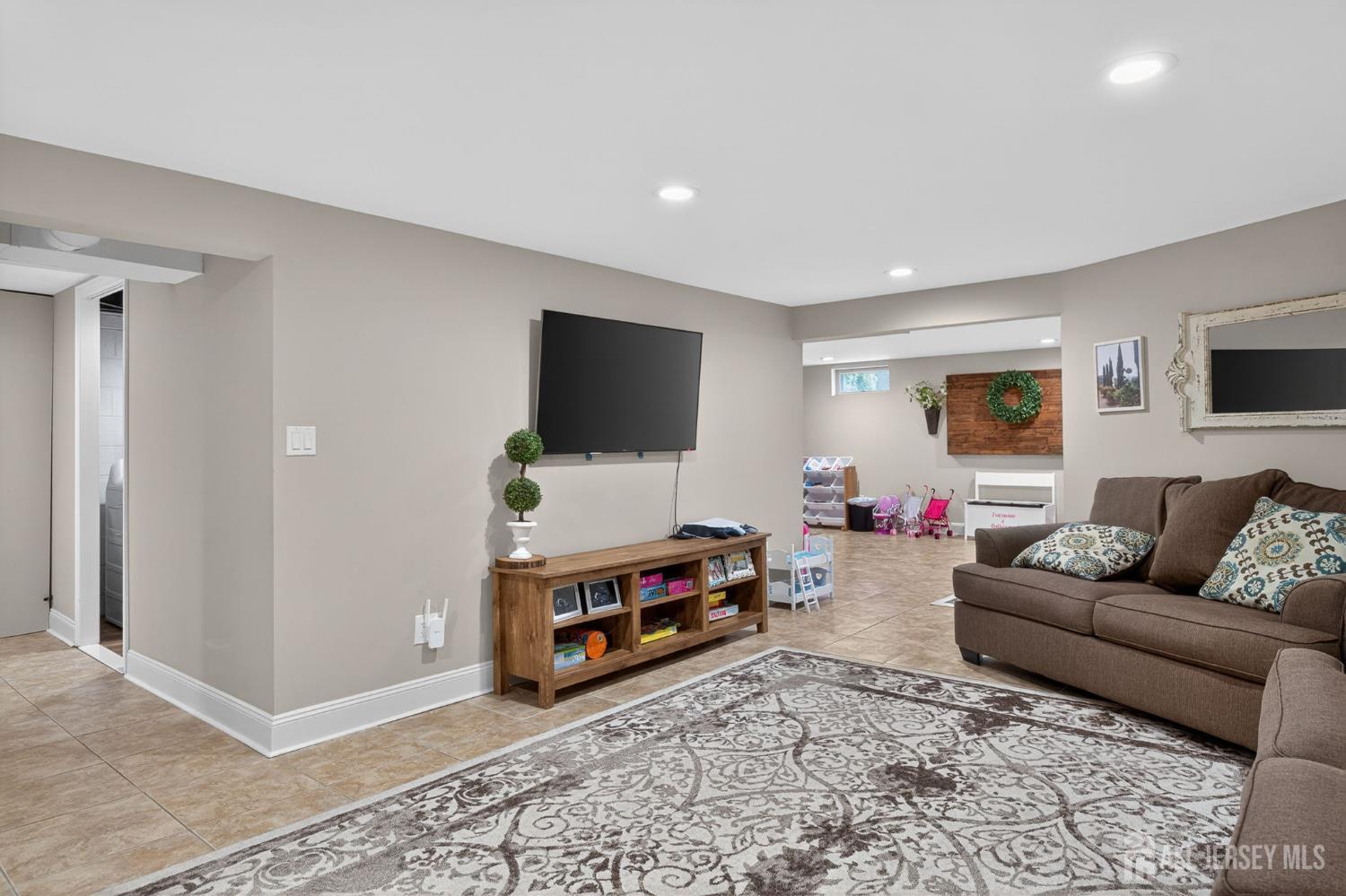 Meticulously maintained 3-bedroom, 1.5-bath ranch offering a spacious and open floor plan. The home features a completely updated kitchen with newer cabinetry, stainless steel appliances, and beautiful granite countertops. The bright living room includes recessed lighting and opens seamlessly into the main living areas, creating an inviting space for everyday living and entertaining. The home offers three bedrooms, all with hardwood floors, including a primary bedroom with its own convenient half bath. The main full bathroom has been tastefully updated. An open staircase leads to a fully finished basement with four separate rooms, including a laundry room, playroom/rec room, family room, and a possible officeproviding plenty of flexible living space. Additional highlights include an oversized garage with garage doors in both the front and rear, offering excellent accessibility. The large fenced backyard features a vinyl privacy fence, lush green grass, and a beautiful brick paver patio, perfect for outdoor gatherings and relaxation. This home is conveniently located near all major highways and transportation to NYC!