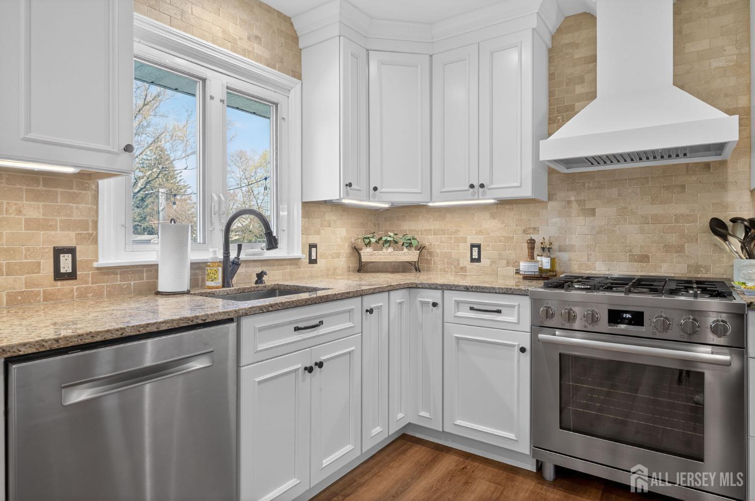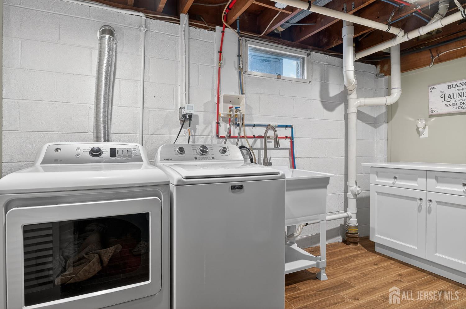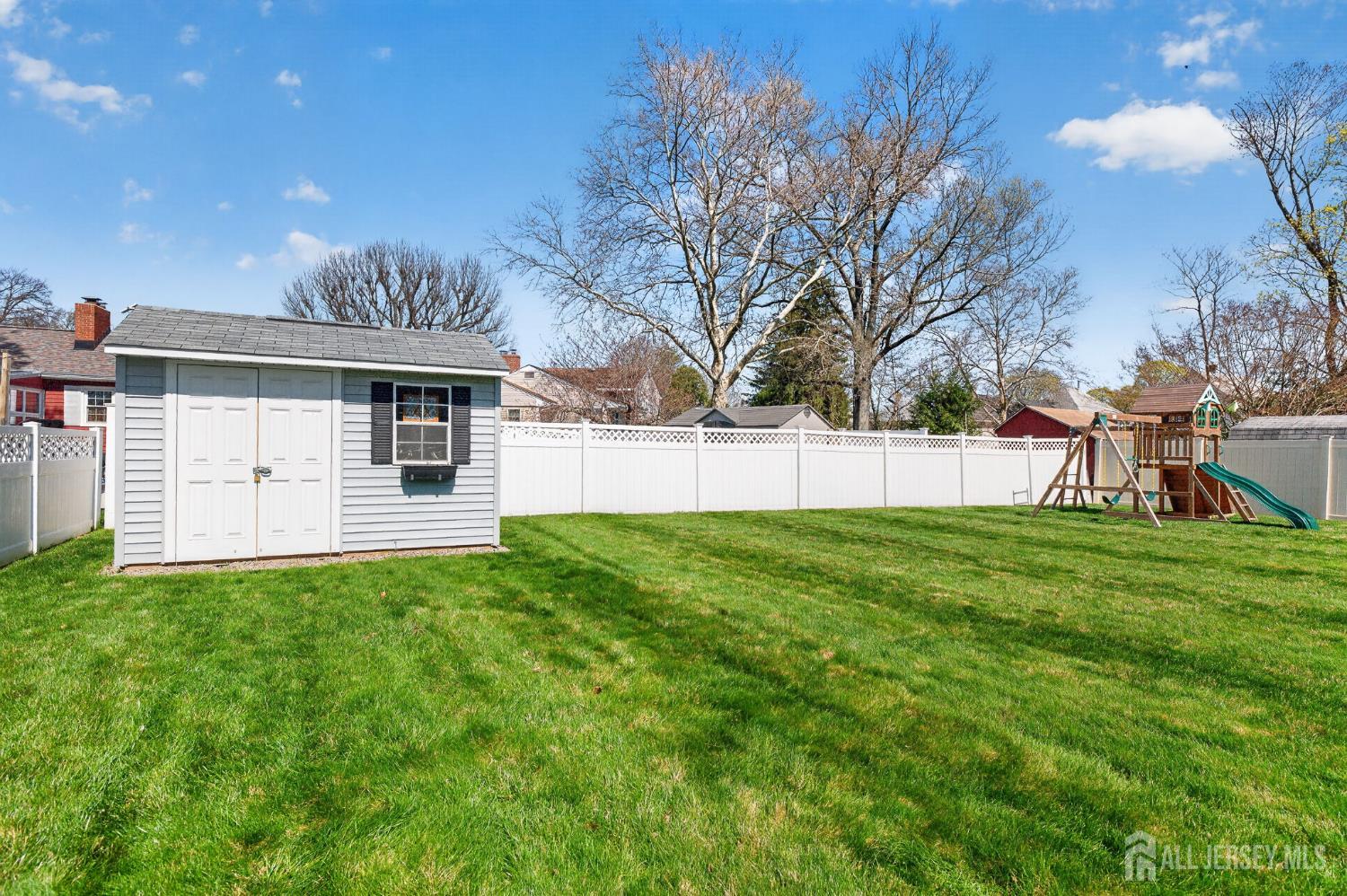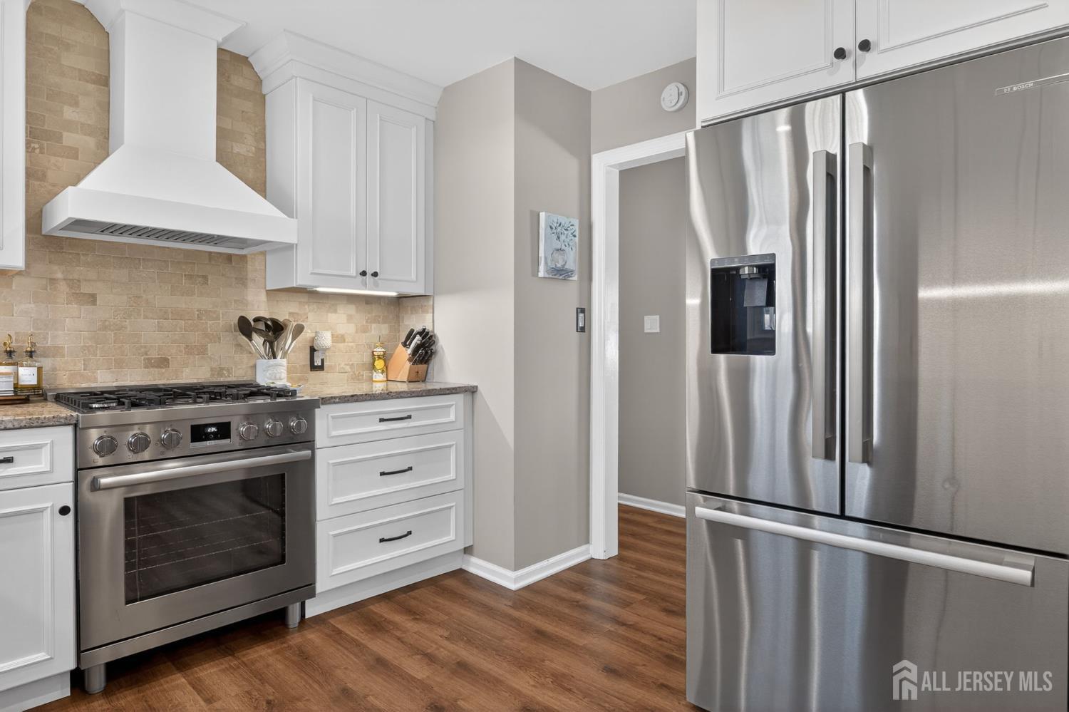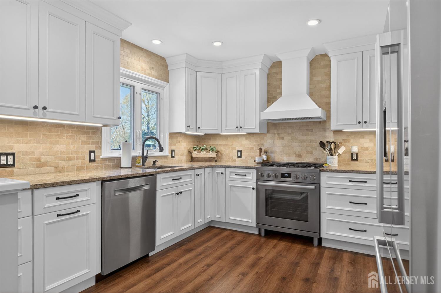 Meticulously maintained 3-bedroom, 1.5-bath ranch offering a spacious and open floor plan. The home features a completely updated kitchen with newer cabinetry, stainless steel appliances, and beautiful granite countertops. The bright living room includes recessed lighting and opens seamlessly into the main living areas, creating an inviting space for everyday living and entertaining. The home offers three bedrooms, all with hardwood floors, including a primary bedroom with its own convenient half bath. The main full bathroom has been tastefully updated. An open staircase leads to a fully finished basement with four separate rooms, including a laundry room, playroom/rec room, family room, and a possible officeproviding plenty of flexible living space. Additional highlights include an oversized garage with garage doors in both the front and rear, offering excellent accessibility. The large fenced backyard features a vinyl privacy fence, lush green grass, and a beautiful brick paver patio, perfect for outdoor gatherings and relaxation. This home is conveniently located near all major highways and transportation to NYC!