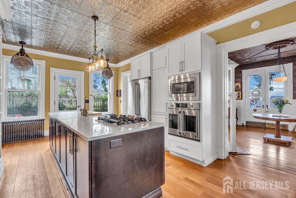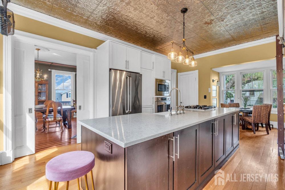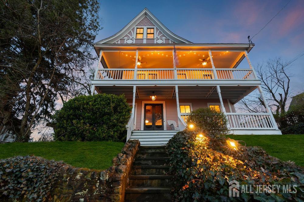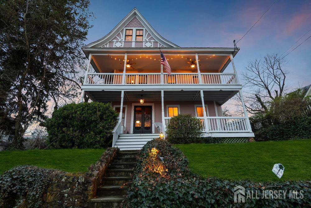 Discover timeless elegance at 16 7th Avenue, a grand Victorian home located in the hills of Atlantic Highlands. This exquisite residence offers breathtaking water views and a harmonious blend of classic charm and modern amenities. Step into a stately foyer that leads to an elegant formal dining room, perfect for entertaining. With five spacious bedrooms and two and a half well-appointed bathrooms, this home ensures comfort and luxury throughout. The gourmet kitchen, featuring stainless steel appliances, quartz counters and a cozy breakfast nook, is a haven for culinary enthusiasts. Enjoy serene outdoor moments on the rocking chair front porch or 3 balconies, both offering private outdoor spaces to relax and unwind. Very close proximity to downtown Atlantic Highlands, ferry to NYC, marinas and beaches.